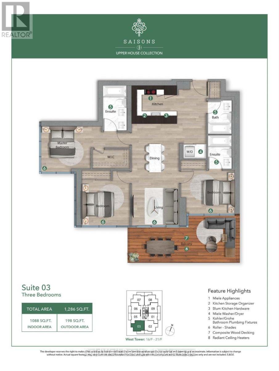 New 3-Bedroom Penthouse Corner Suite at Saisons by Concord!Nearly 1,100 sq.ft. of interior space + 200 sq.ft. balcony with breathtaking south-west views of the CN Tower and city skyline Featuring 9-ft ceilings, engineered hardwood floors, and a modern chef's kitchen with premium Miele appliances and quartz island. Spacious primary bedroom with a spa-inspired 5-piece ensuite and walk-in closet.Includes parking with a $75,000 EV (electric vehicle) upgrade + locker - a rare and valuable bonus.Steps to subway, parks, shops, and everything North York has to offer.Penthouse. EV parking. Unmatched value. A true opportunity!! (id:4555)