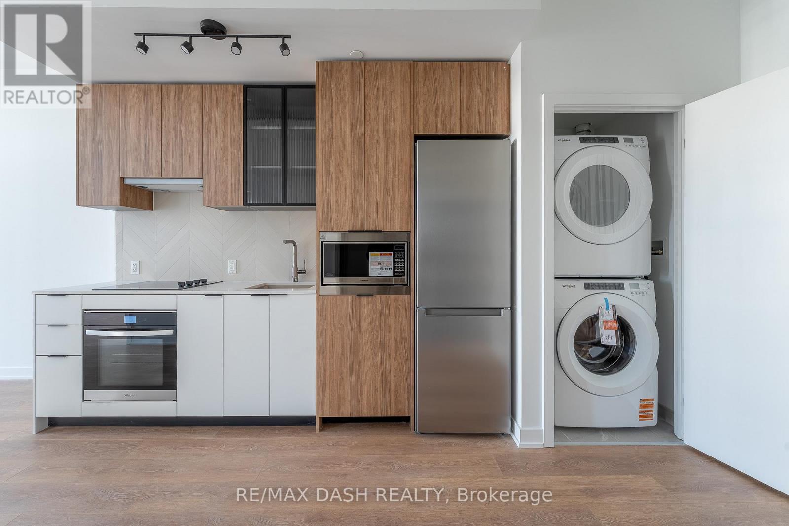 Enjoy modern urban living in this bright 1-bedroom suite by RioCan. Featuring 9-ft ceilings, an open-concept layout, and a contemporary kitchen with quartz countertops, designer backsplash, and stainless steel appliances, this unit offers both style and functionality. Laminate flooring runs throughout the space for a seamless finish.Ideally located in one of Etobicoke's most sought-after neighbourhoods, you'll have unbeatable access to shopping, restaurants, transit, major highways, and everyday essentials.Residents enjoy top-tier amenities, including a fitness centre, yoga studio, party room, outdoor terrace with BBQs, content room, and co-working spaces. (id:4555)