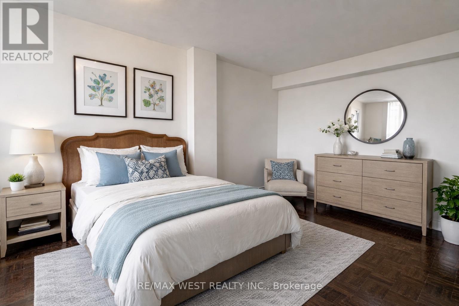 Enjoy this spacious, well appointed suite featuring over 800 sq ft of comfortable living space. This bright unit includes electricity, heat, water, cable TV, free internet, one exclusive use parking spot, and a private locker. Step out onto a large balcony with sunny northeast to west facing city views, perfect for relaxing or entertaining. Inside, you will find a functional layout with two generously sized bedrooms, each with closets, and an expansive L shaped living and dining area. The updated galley kitchen offers modern cabinetry and efficient design, making meal prep simple. Residents enjoy a wide range of amenities, including an outdoor pool, sauna, BBQ area, tennis courts, children's playground, and free visitor parking. The building also features newer elevators for added convenience. Ideally located just steps from groceries, public transit, and the upcoming Caledonia subway station, with easy access to Highways 400 and 401, making commuting easy. An exceptional opportunity offering space, convenience, and outstanding value. (id:4555)