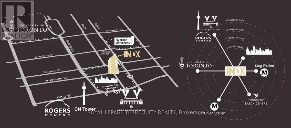 Bright & Spacious Studio Condo W/Beautiful Interior Design & Efficient No Wasted Space Floor Plan. Incl: 9Ft Smooth Ceilings, Private Balcony W/An Unobstructed Eastern Exposure Ideal To Sit Out W/O Onlookers. A Modern Kitch. W/Stone Counters, Sleek Black Wall Storage Area With Glass Shlvs. Indx Condos In Prime Downtown Toronto Core Fin.District W/Access To Ungrnd P.A.T.H, 24Hr Conc, +Aaa Amenties: Vt Golf, Fit. Rm, Thtr, Ot Terr + Billiards. $250 Refundable Key & Fob/set Deposit (id:4555)