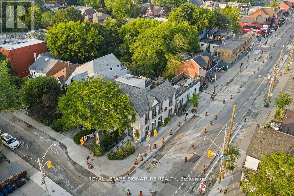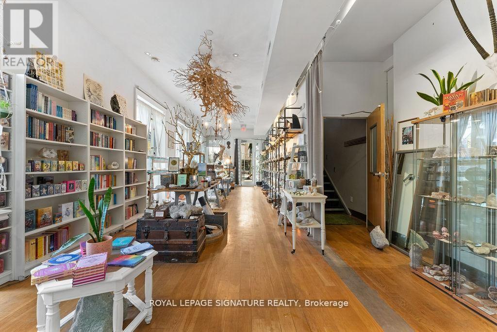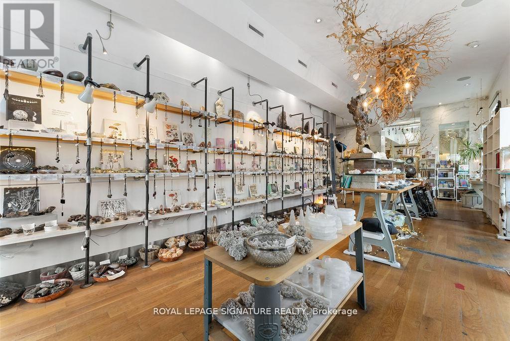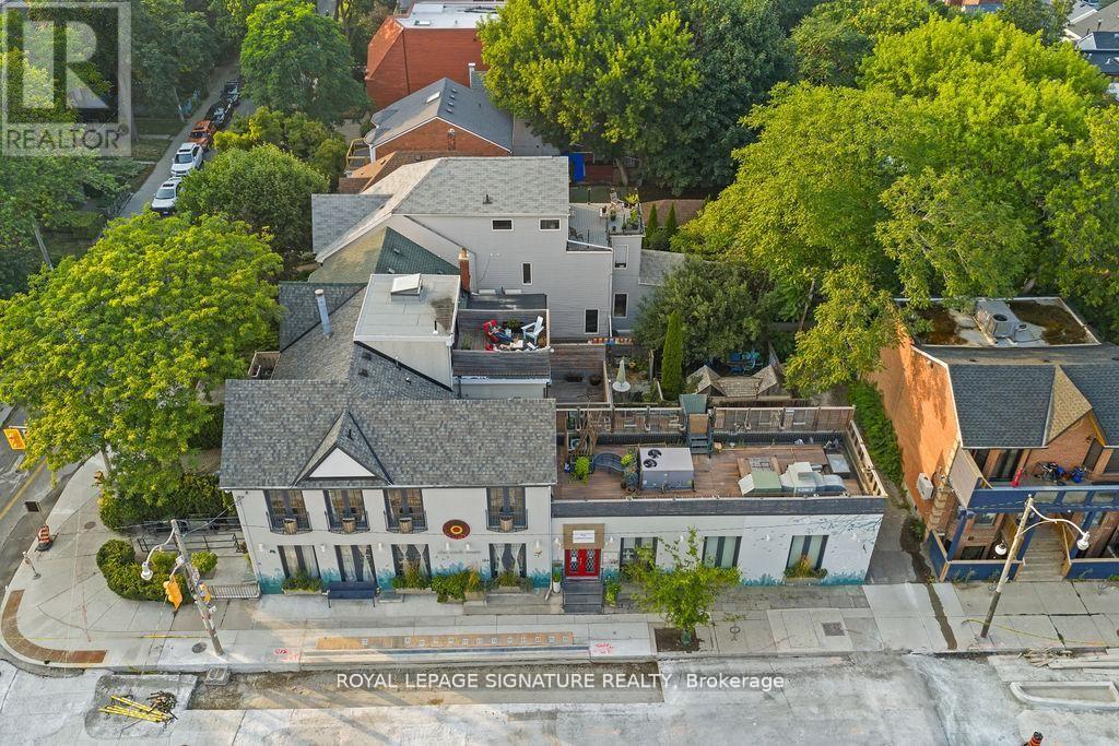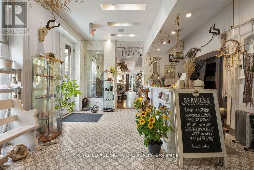 A rare and remarkable opportunity to own a meticulously maintained commercial building in one of Toronto's most sought-after neighbourhoods. With 100 feet of prime street frontage along Harbord Street, this striking corner property commands attention with its exceptional curb appeal and versatile layout. Currently operating as a retail and wellness space, the building is easily adaptable for a variety of uses including a seamless conversion back to its former life as a high-end restaurant. Spanning two light-filled levels plus a finished basement, the space showcases a beautiful blend of architectural character and thoughtful upgrades. The main floor features soaring ceilings, marble accent walls, and wall-to-wall glass doors that flood the interior with natural light. Upstairs, cathedral ceilings, 14-foot French doors with Juliet balconies, and a generous rooftop terrace with CN Tower views create an inspiring setting for private events, dining, ceremonies, and more. Extensive recent updates include a custom steel front door (2024), outdoor cement work and dormer window replacements (2025), a new hot water tank (2023/24), upgraded roofing and HVAC, heated floors, built-in cabinets, a Caesar stone reception desk, and a renovated electrical room. Additional highlights include three bathrooms (with rough-ins for three more), built-in industrial fridges, a landscaped side garden, and 16 internal and external security cameras. With stunning built-in planters full of perennial grasses and flowers wrapping the front and side of the building, this property offers unmatched curb appeal and a rare opportunity to own a space that is truly one-of-a-kind. A perfect fit for end users, investors, or visionary entrepreneurs ready to bring their dream business to life. (id:4555)