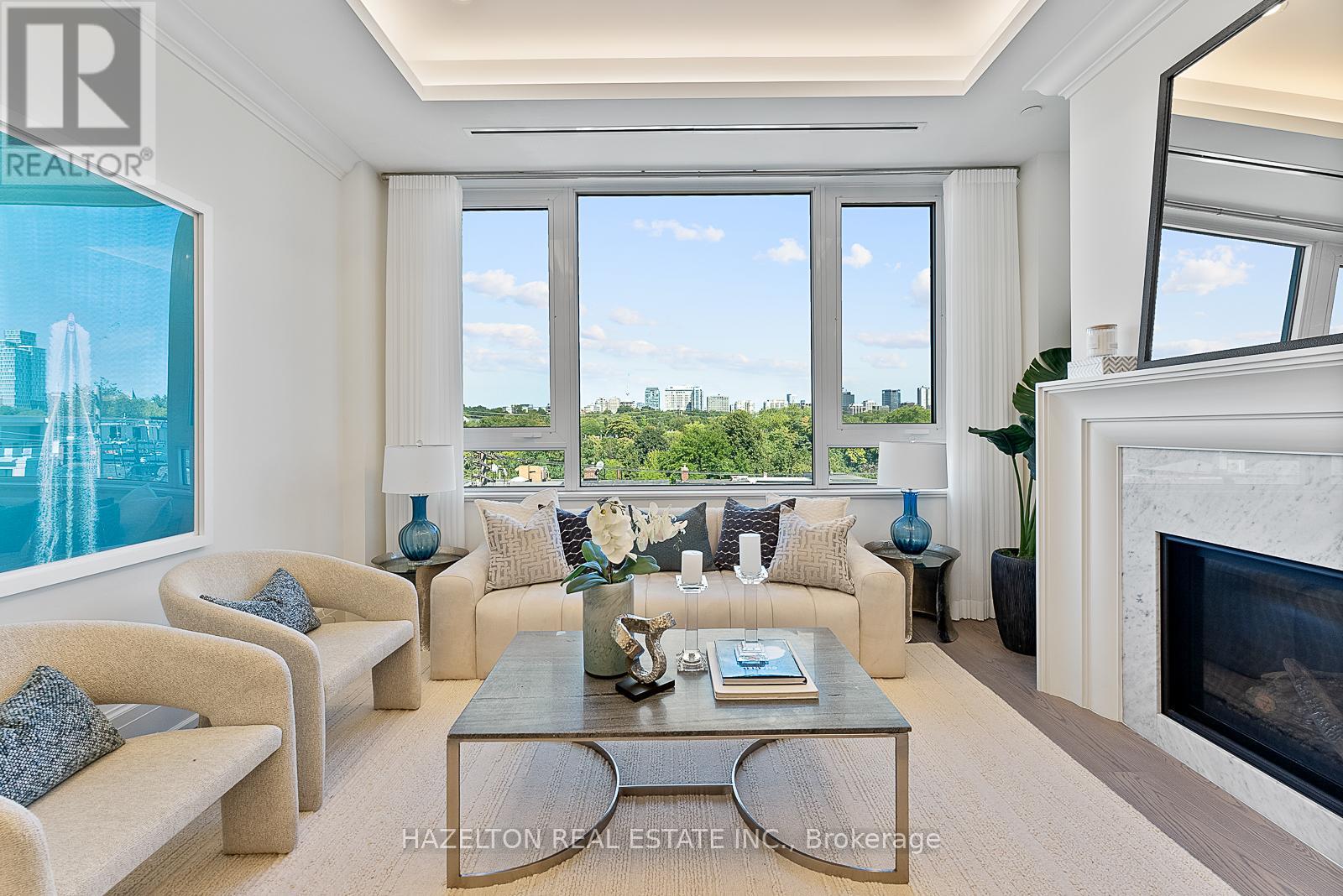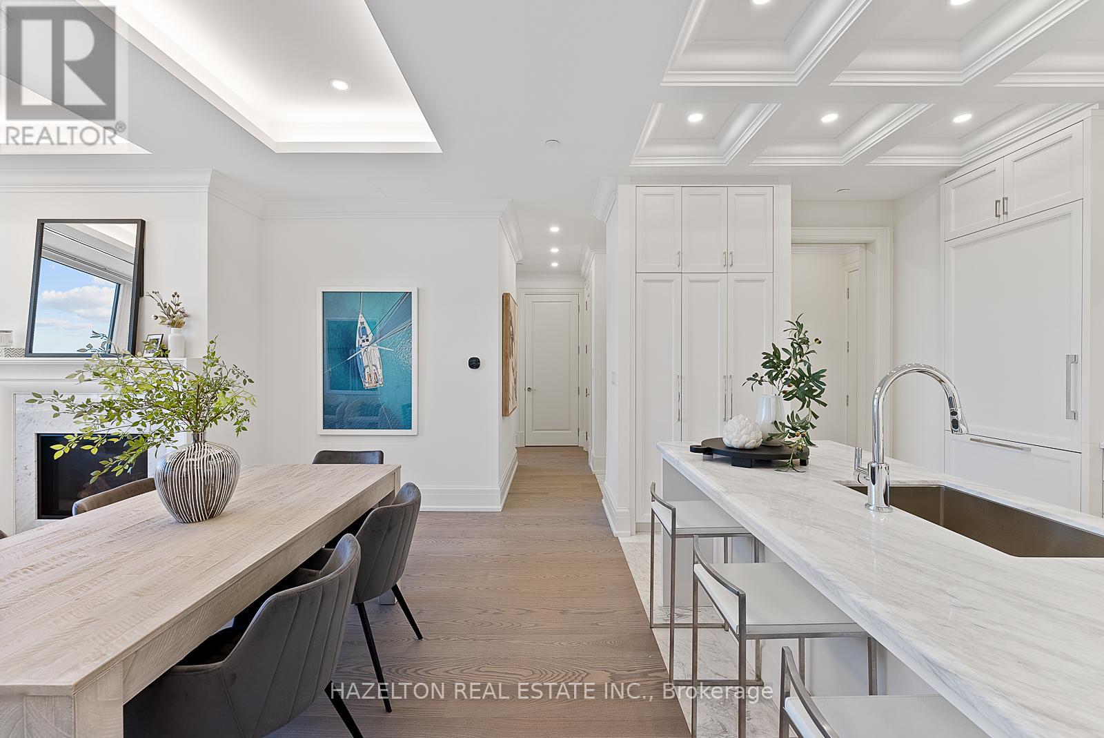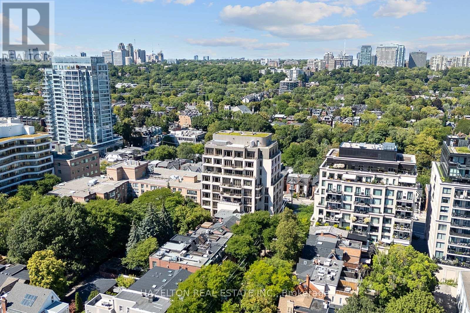 Yorkville perfection, this nearly 1600 sq ft condo is a gem within a premier boutique building, located in the city's best neighborhood. This residence boasts numerous luxurious upgrades, including elegant hardwood floors and marble finishes in all three bathrooms. The kitchen features stunning marble countertops and a matching slab backsplash, creating a seamless and sophisticated look with top of the line built in appliances. The living area is enhanced by a romantic gas fireplace with a custom mantle, perfect for relaxing romantic evenings. Two charming juliette balconies (one in each bedroom) with lovely clear views over the leafy green treetops of Ramsden Park. The custom coffered ceilings with recessed lighting add an extra layer of elegance and sophistication to the home. Relaxing evenings in the generously sized den, with wall-to-wall built-in millwork to provide exceptional storage makes this an ideal home office or TV space. A bright and well sized primary bedroom features a custom walk in closet interior, designed to maximize space and organization and a 3 piece marble ensuite. This condo is a perfect blend of luxury and comfort, making it an ideal home in one of the city's most sought-after locations. (id:4555)
