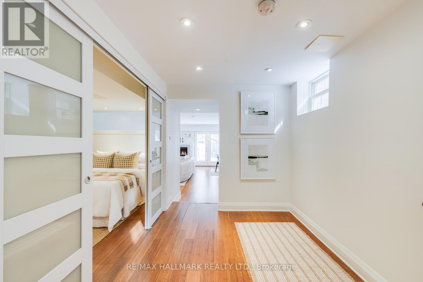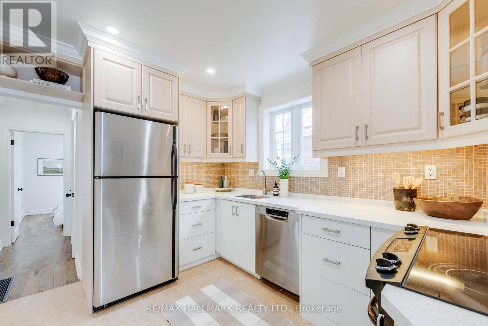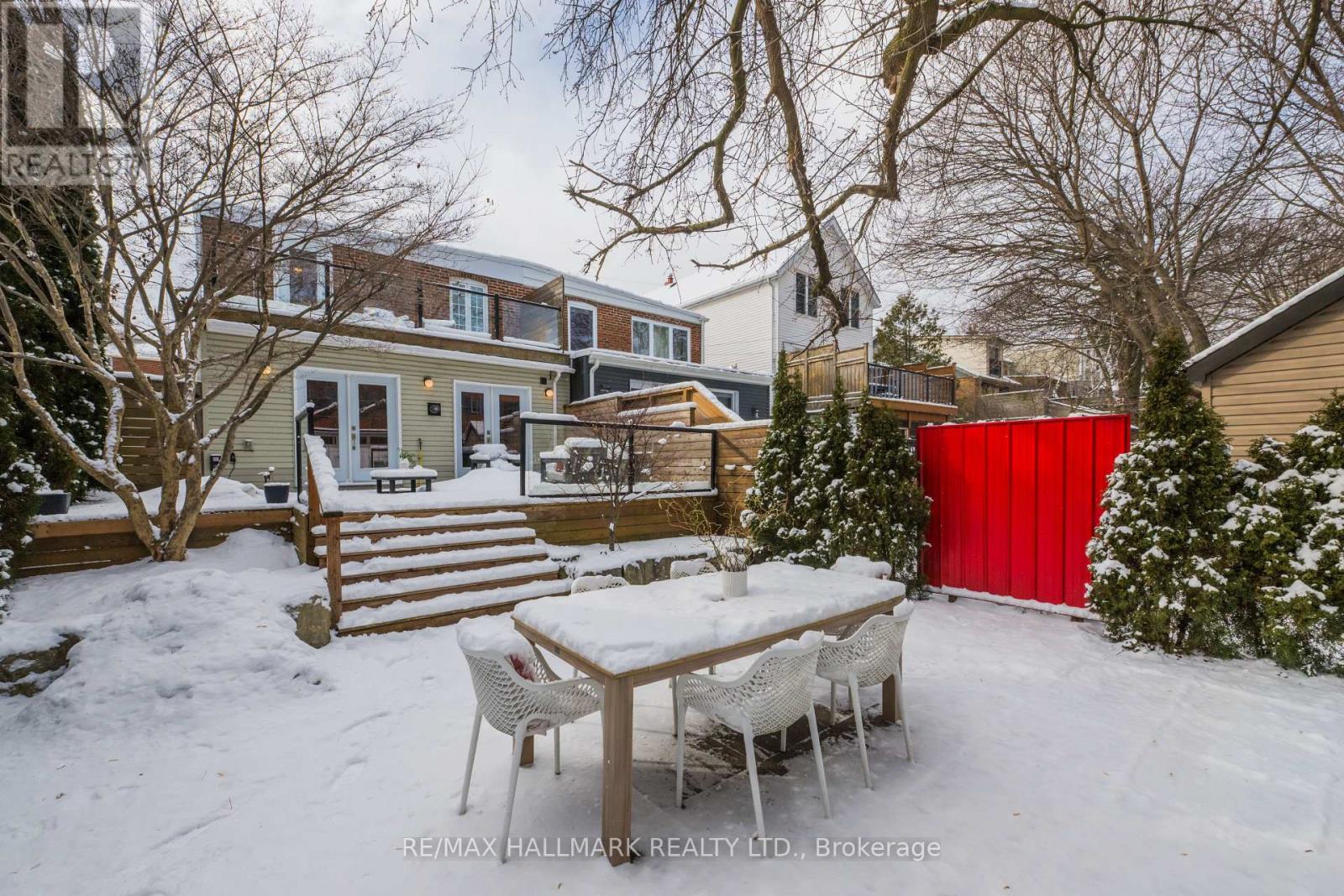 Beautifully updated 2+1 bedroom, 2 bathroom home on a quiet, centrally located street in a sought-after family-friendly neighbourhood. This wide semi has been sound proofed for extra privacy. The main floor is filled with natural light from large south-facing windows, creating a warm and inviting space. Two generously sized bedrooms are tucked at the back of the home, with a lovely deck off the rear bedroom - perfect for morning coffee, working from home, or unwinding at the end of the day. It is also equipped with a gas hookup for a BBQ or fireplace. The fully renovated lower level (completed with permits) is truly exceptional, offering a spa-like bathroom, with heated flooring, an additional bedroom or oversized office, and a spacious family room with a cozy gas fireplace. With a walk-out to a beautifully landscaped, two-tiered interlock backyard, this space is ideal for entertaining. Enjoy summer evenings with a built-in gas BBQ hookup and the rare benefit of backing directly onto Blantyre Public School. Surrounded by parks and a strong sense of community, and just a short stroll to Kingston Road Village with its shops, cafés, and local restaurants, this is a truly special home in an fantastic location. (id:4555)