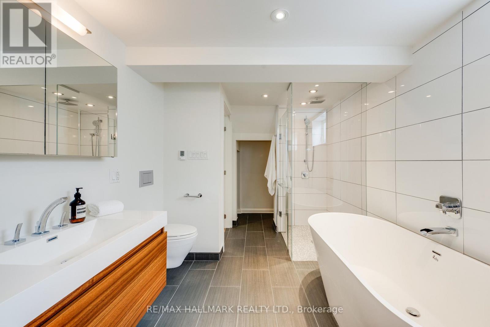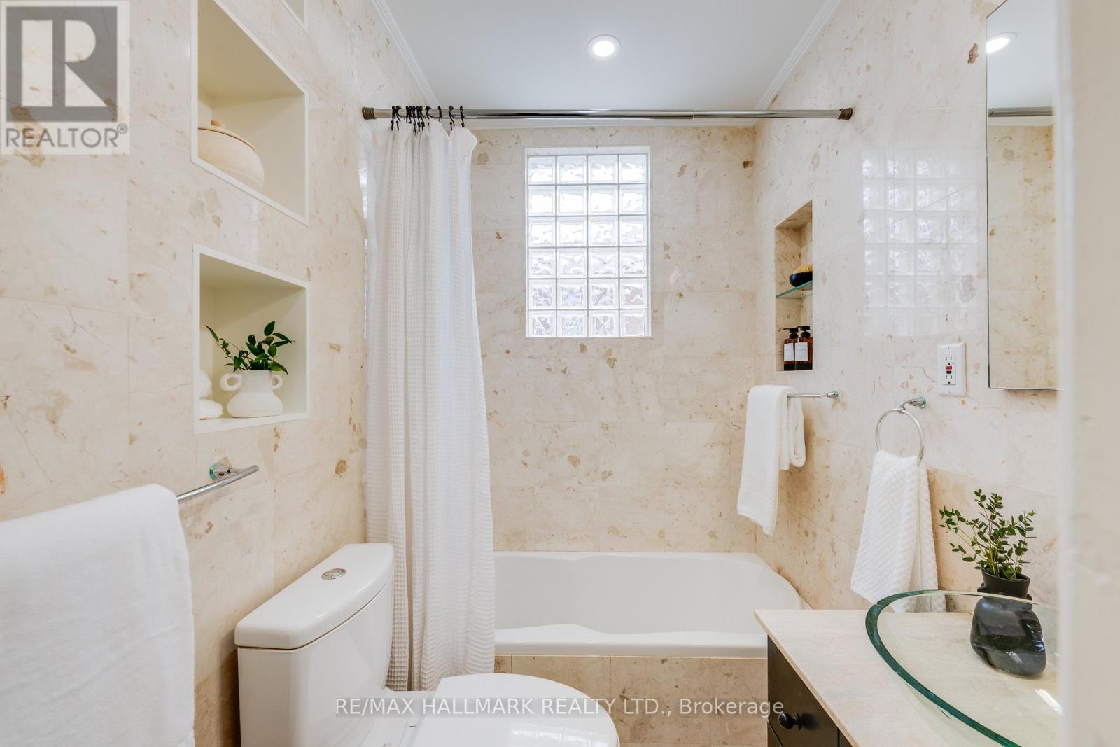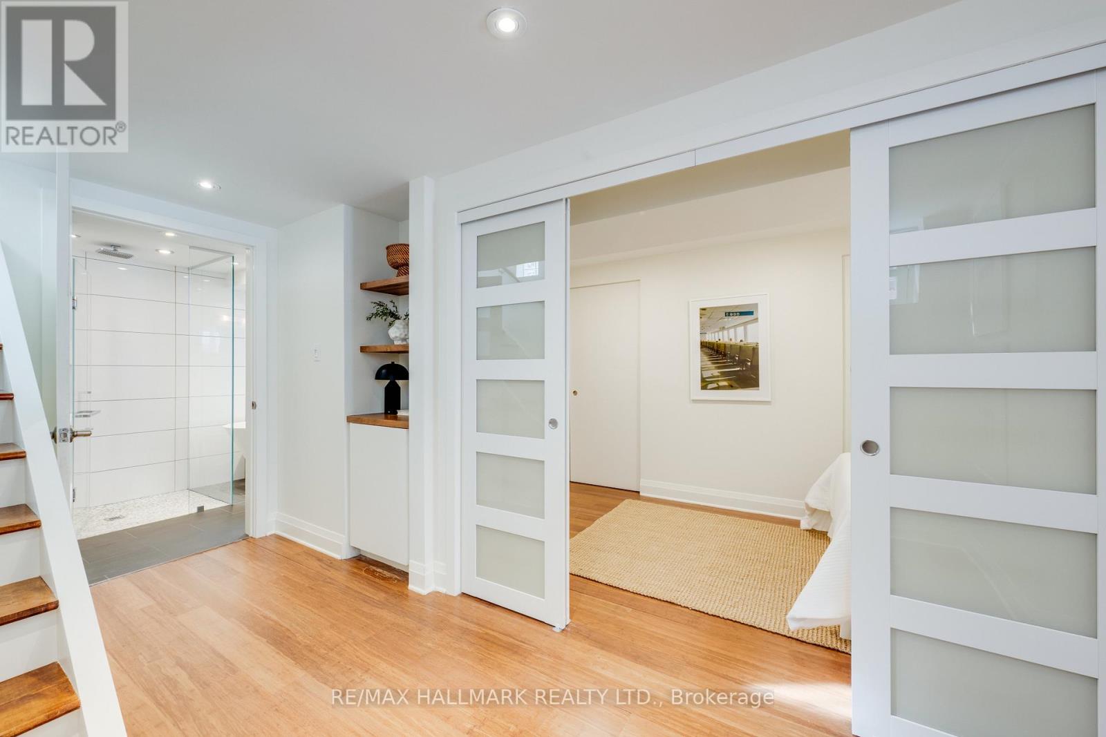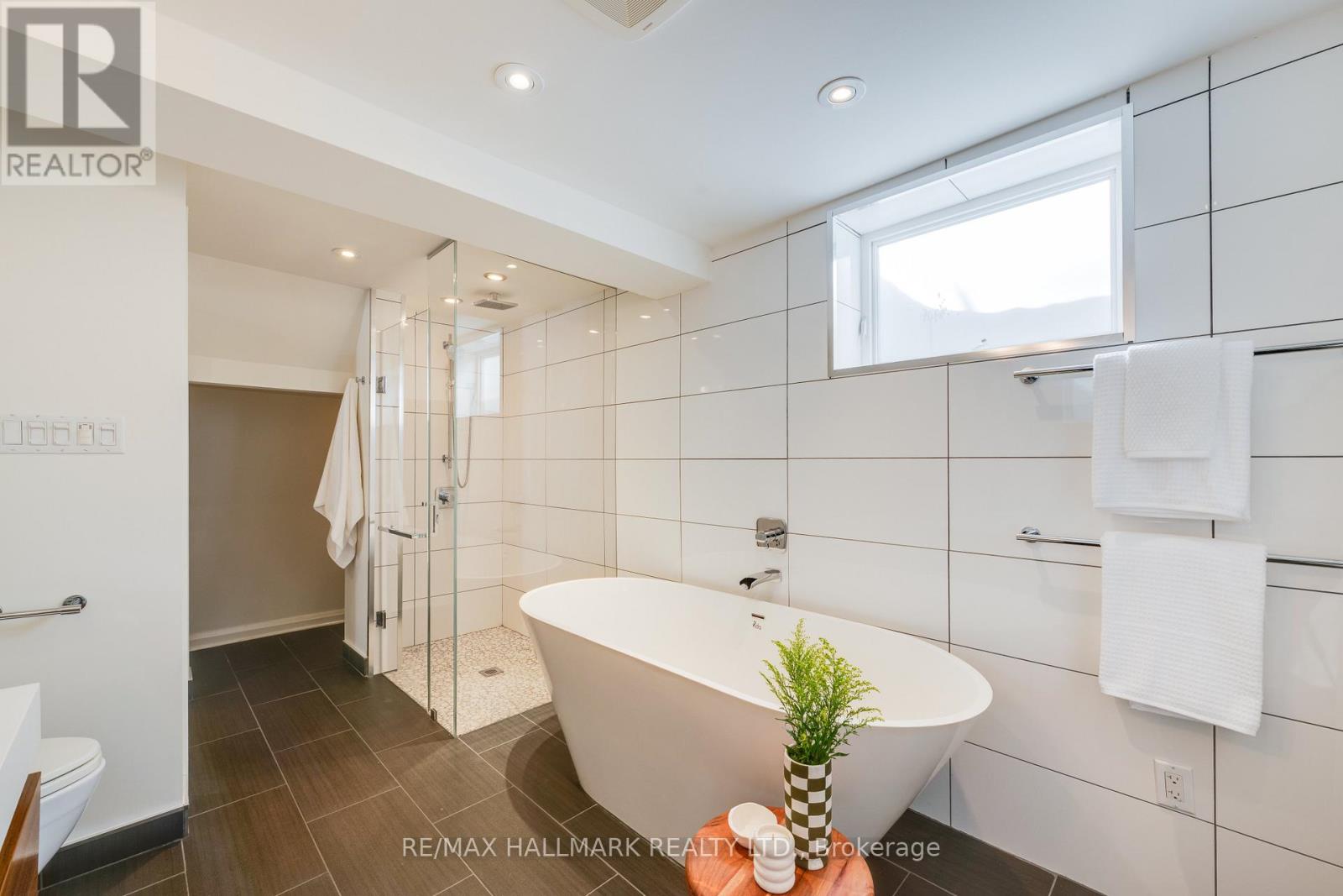 Beautifully updated 2+1 bedroom, 2 bathroom home on a quiet, centrally located street in a sought-after family-friendly neighbourhood. This wide semi has been sound proofed for extra privacy. The main floor is filled with natural light from large south-facing windows, creating a warm and inviting space. Two generously sized bedrooms are tucked at the back of the home, with a lovely deck off the rear bedroom - perfect for morning coffee, working from home, or unwinding at the end of the day. It is also equipped with a gas hookup for a BBQ or fireplace. The fully renovated lower level (completed with permits) is truly exceptional, offering a spa-like bathroom, with heated flooring, an additional bedroom or oversized office, and a spacious family room with a cozy gas fireplace. With a walk-out to a beautifully landscaped, two-tiered interlock backyard, this space is ideal for entertaining. Enjoy summer evenings with a built-in gas BBQ hookup and the rare benefit of backing directly onto Blantyre Public School. Surrounded by parks and a strong sense of community, and just a short stroll to Kingston Road Village with its shops, cafés, and local restaurants, this is a truly special home in an fantastic location. (id:4555)