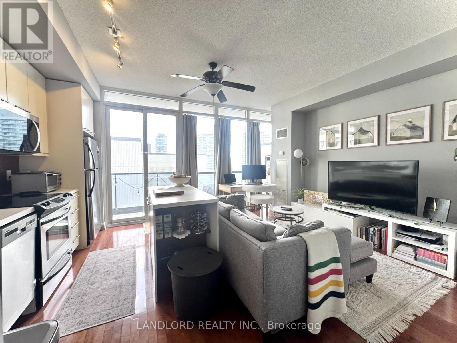 Enjoy Carefree Living In This Professionally Managed One Bedroom, One Bathroom Condo Centrally Located In The Heart Of Downtown W/ Panoramic City Views. This Sophisticated Unit Boasts Hardwood Floors In Main Area, Open Concept Designer Kitchen W/Centre Island, S/S Appliances, Full Access To Excellent Building Amenities & Located Close To Ttc & Subway. **Appliances: Fridge, Stove, B/I Microwave, Dishwasher, Washer and Dryer **Utilities: Heat & Water Included, Hydro Extra (id:4555)