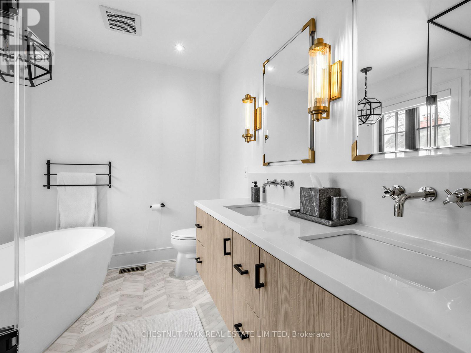 Welcome to 35 Castle Frank Road - a fully renovated and smart 5-bedroom, 5-bathroom residence in the heart of Rosedale. Reimagined from top to bottom and completed in 2020, this exceptional home seamlessly blends timeless architecture with refined, modern finishes - offering turnkey luxury in one of Toronto's most prestigious neighbourhoods. Thoughtfully redesigned for today's lifestyle, the home features expansive principal rooms, elegant detailing, and a functional open-concept flow ideal for both everyday living and entertaining. The chef-inspired kitchen anchors the main level with premium appliances, custom cabinetry, and generous workspace, opening effortlessly to an inviting family space and outdoor living. Upstairs, five well-proportioned bedrooms provide flexibility for growing families, guests, or home office needs. The serene primary retreat offers a spa-like ensuite and ample closet space, creating a true sanctuary. Each of the five bathrooms has been beautifully appointed with high-end fixtures and contemporary finishes. Situated just steps from ravine trails and within walking distance to Castle Frank Subway Station, this coveted address delivers the perfect balance of natural beauty and urban convenience. Close to top-tier schools, parks, and downtown access. 35 Castle Frank Road presents a rare opportunity to enjoy fully updated living in historic Rosedale. (id:4555)