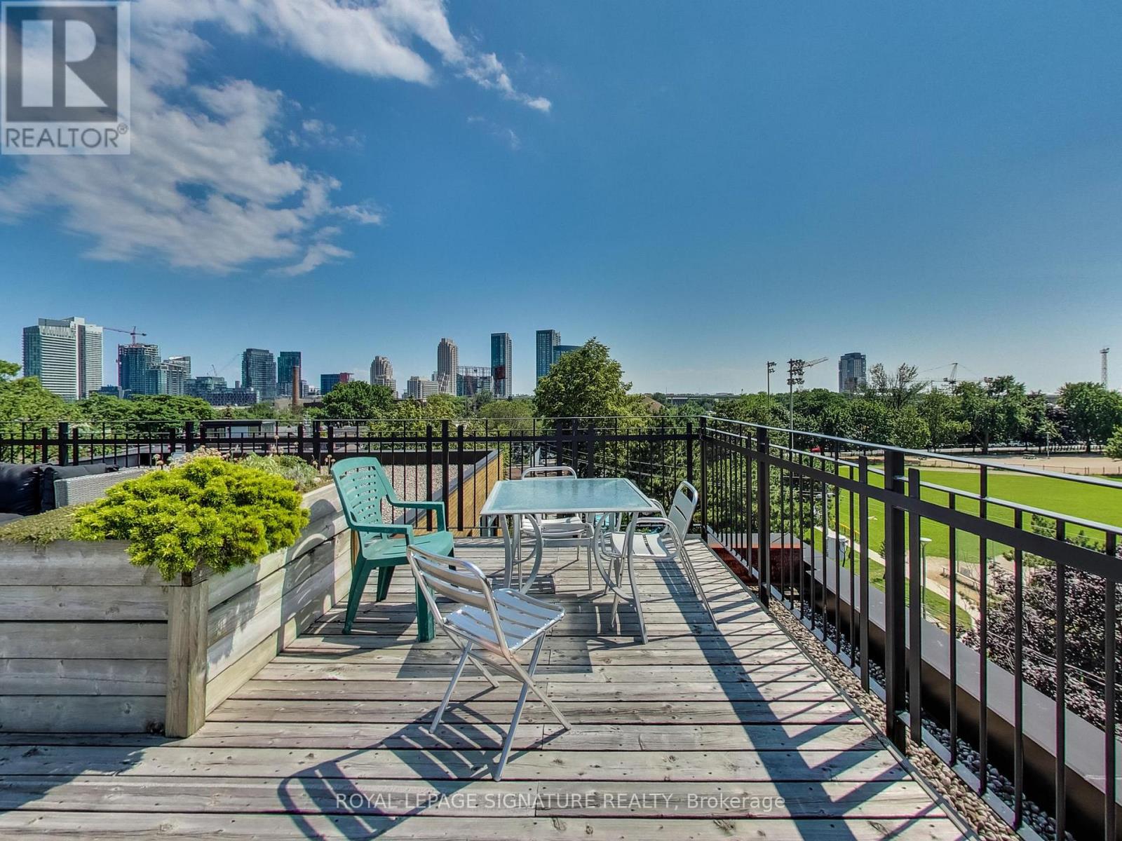 King West Loft-Living at its Best! Welcome to this stylish south-facing loft in the heart of King West, where industrial character meets modern comfort. Soaring concrete ceilings and expansive windows flood the space with natural light, highlighting the open-concept living and dining area anchored by a sleek, contemporary kitchen with loads of storage space. The thoughtfully designed 1-bedroom layout offers a refined retreat, while the updated bath adds everyday convenience. Step out to your oversized private balcony and take in picturesque skyline views, perfect for morning coffee or unwinding in the evening. Complete with an owned parking space and exclusive-use locker, this loft delivers the ultimate urban lifestyle just steps from Toronto's best dining, nightlife, and transit. A rare blend of character, function, and location, this is King West living at its finest. Originally built in the 1930s as an Art Deco perfume factory, the West 833 Lofts (or "the Perfume Factory Lofts") is one of the area's few surviving industrial relics and is recognized for its architectural significance. The development comprises just 52 boutique units, making it one of the more intimate loft residences in King West. The communal rooftop deck and garden/terrace is a standout building amenity with seating and city views, ideal for relaxing or entertaining your guests. (id:4555)