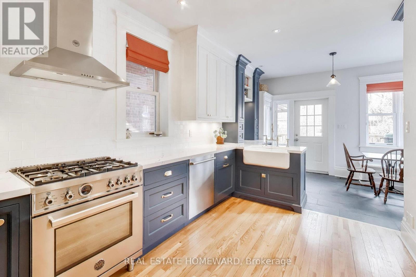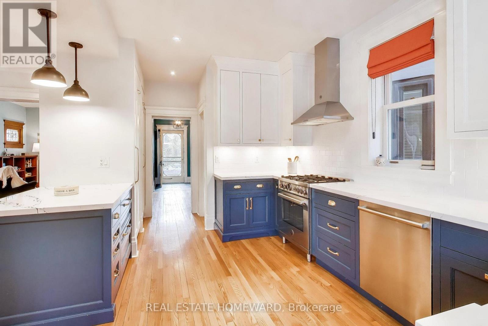 Welcome to historic Hogarth Avenue, one of Riverdale's most prestigious streets. This detached three-bedroom home sits on an exceptional 30 x 130 ft lot and includes a private drive for two cars, as well as a separate detached garage-turned studio. Double glass doors from the studio open onto a stunning, tree-lined garden and a refined al fresco dining area. The main floor features a gracious foyer, a two-piece washroom, and elegant formal living and dining rooms, complete with a fireplace and custom built-ins. The beautifully designed kitchen (2024) with built in appliances includes an inviting breakfast room that overlooks the spacious, well-treed garden. The second floor offers three generous bedrooms with abundant closet space. The primary bedroom features a private ensuite, two double closets, and hardwood floors. The high-ceiling basement has its own separate entrance and includes a large family room with a fireplace and built-ins, two additional bedrooms, and a three-piece bathroom. A classic south-facing veranda provides the perfect setting for summer evenings or a quiet morning coffee. Minutes on foot to Danforth shops, the Big Carrot, restaurants and cafés, Chester Subway Station, the King streetcar, Withrow Park and all the enduring treasures of Riverdale. Excellent schools and Frankland Community School district. (id:4555)