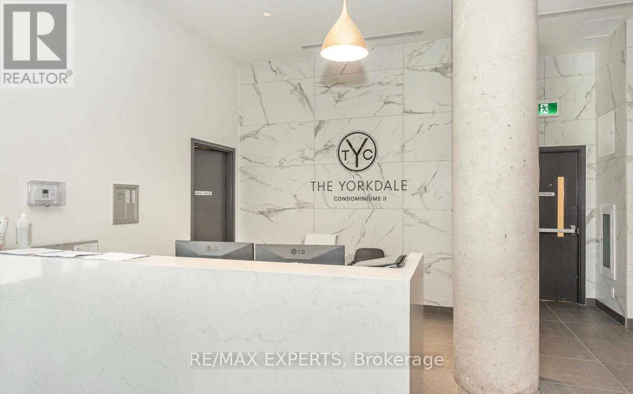 Yorkdale Condo 2 Listed to sell. Perfect opportunity for all investors, first time home buyers and new families starting up. This 3 year "new" building features a true luxury suite with 2 bedrooms, 1 full bathroom, 1 parking, 1 Locker, ensuite laundry, smooth ceilings, huge Terrace to enjoy. "Luxury" building located a few steps to Yorkdale Mall and at the Yorkdale Subway Line.Bedrooms Apart from each other with more privacy and stainless steel appliances. Building features 24 hrs security concierge,party room, exercise room, outdoor patio, visitors parking and more. One underground parking and one storage locker owned and included. Steps to Yorkdale Mall and Subway for your convenience. For investors, its currently tenanted bringing in $2850.00 a month in rent. Do not let this opportunity pass you by. (id:4555)