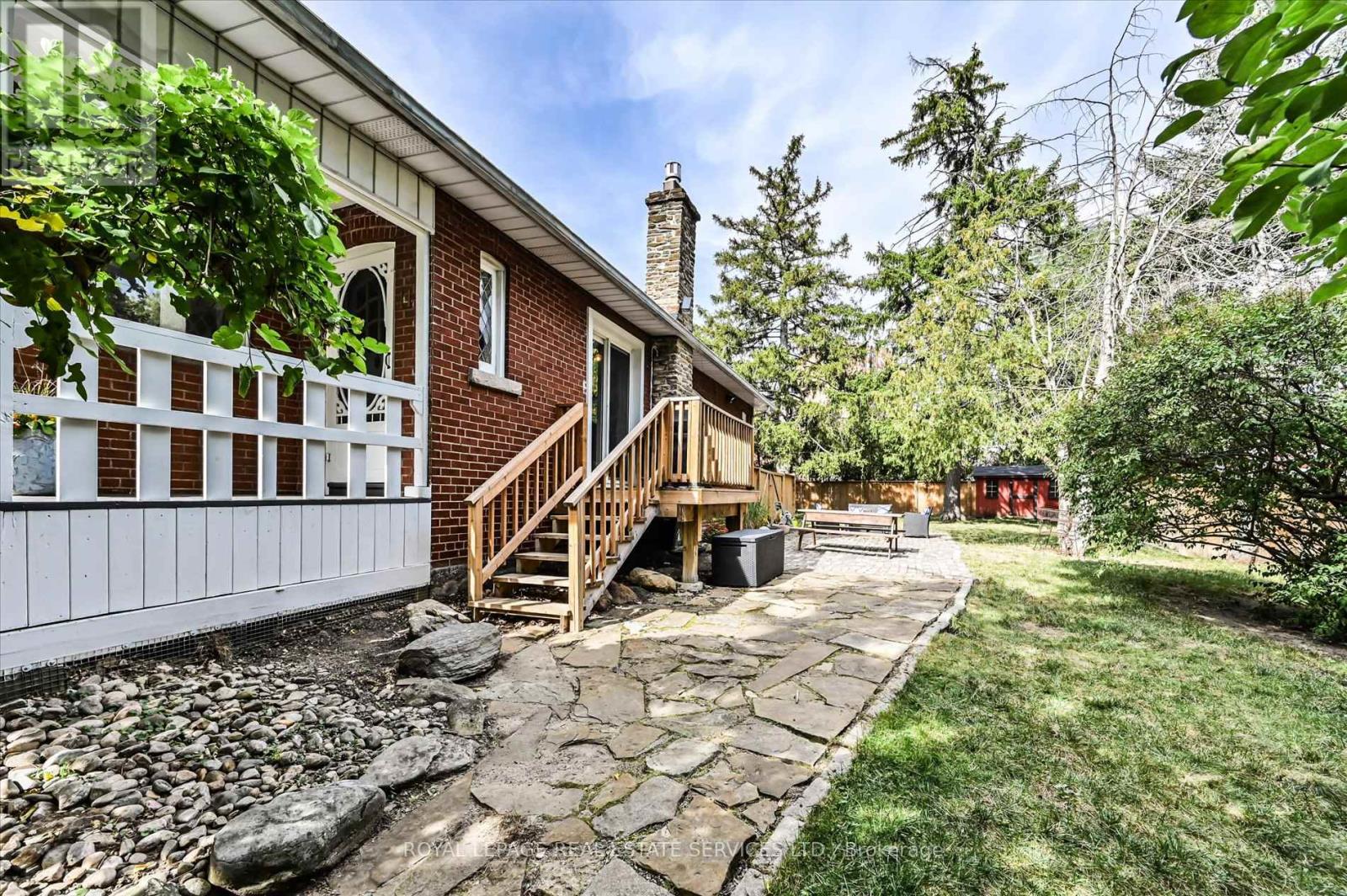 Tucked away on a quiet cul-de-sac in the centre of Old Weston Village, this delightful home presents an urban sanctuary combining the peace of country living with modern convenience. Adjacent to Little Avenue Memorial Park and steps to entering the scenic walking trail along the Humber River, one feels a world away from the city - yet fully connected to it.Inside, this home presents a pleasing blend of traditional character and modern comfort. An inviting country kitchen combines with a bright open concept dining space, complete with wood beam ceilings that add warmth and timeless charm. Whether hosting or unwinding, this space feels both cozy and expansive. Step out from the dining room walkout to enjoy the oversized fully fenced yard with mature trees and an old stone patio seating area - a rare find in the city and ideal for gardening, entertaining, or simply enjoying your own private slice of nature. Adjacent to the dining room is a more formal separate living room accessed through French doors. The lower level impresses with a spacious open recreation room featuring exposed brick walls, a gas fireplace, a third bedrpom, and features the tasteful recent addition of a built-in office/workspace- perfect for working from home, for creative pursuits, or simply relaxing by the fire. With Weston Lions Park, Pool, and Arena, Old Weston shops, the Rosemount Cafe (a local favorite), and other community amenities like the weekly Weston Village Farmer's Market at Artscape Weston Common all a short stroll away, plus the the UP Express/GO hub, convenience is ever at hand. Don't miss this rare opportunity to own a home that offers the best of both worlds - peaceful, park-side living with city amenities close at hand. (id:4555)