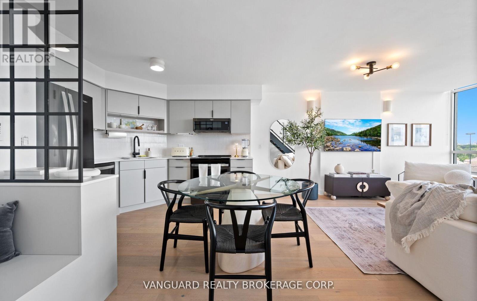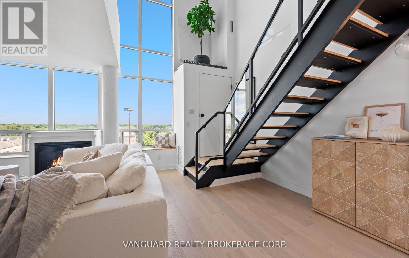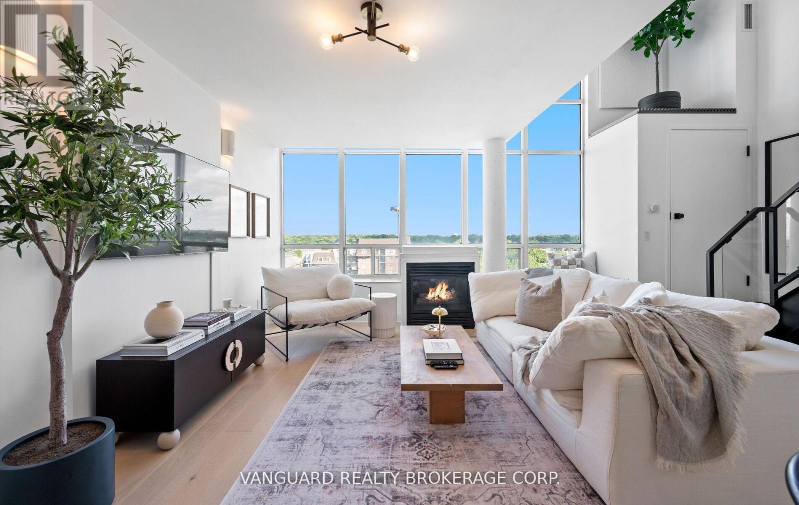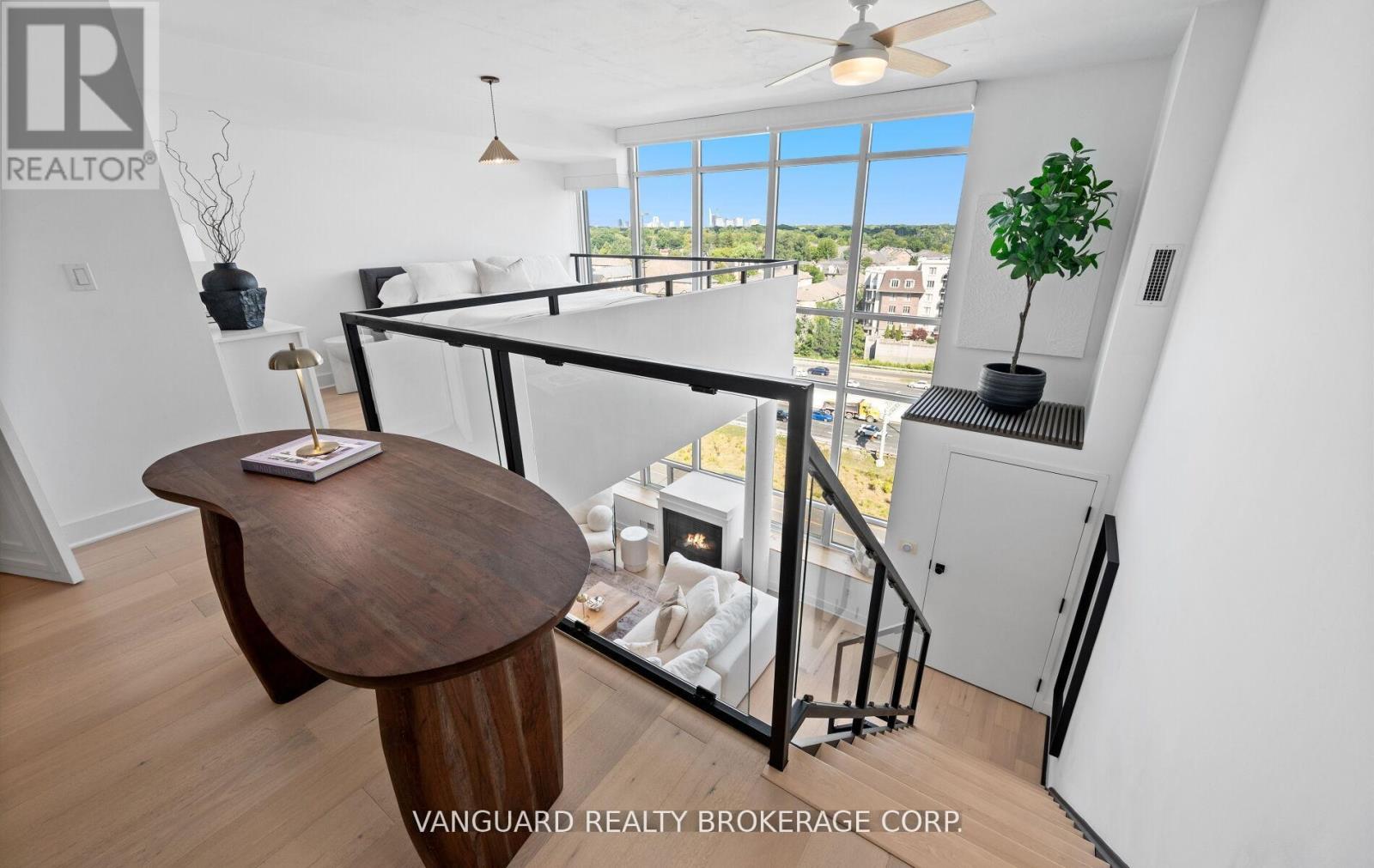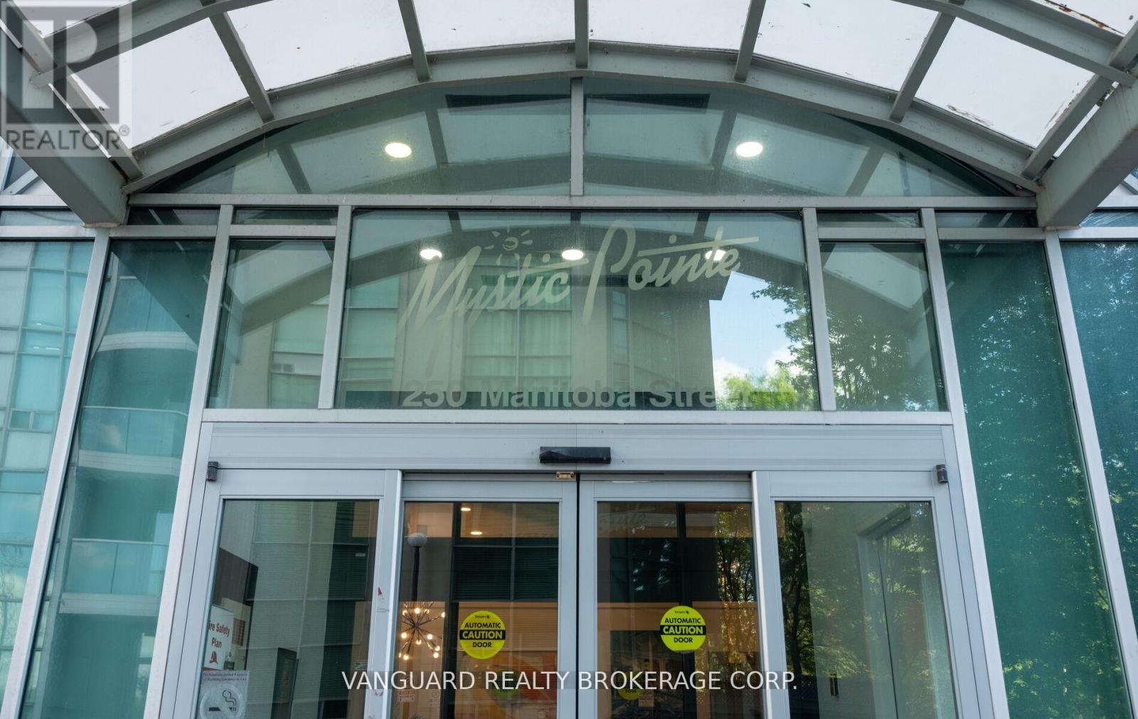 Welcome 250 Manitoba St #619, a professionally designed 2-level loft, featured in House & Home Magazine (2021) and fully renovated from top to bottom in 2020. Located just steps from Mimico GO, this stunning space blends luxury and functionality with no detail overlooked. Enjoy an open-concept kitchen and living area with soaring 17-ft windows that flood the space with natural light. A custom glass partition adds a modern touch to the foyer, while designer millwork and black stainless steel appliances elevate the kitchen.The upper level features a spacious primary bedroom with ample room for a king-sized bed, a walk-in closet, and elegant French doors leading to a spa-inspired 4-piece bathroom. Motorized blackout and sheer blinds provide both comfort and convenience.Additional features include One underground parking space + locker, Building amenities - rooftop terrace, gym, and sauna, Custom designer hardware in bathrooms, Premium finishes throughout. Don't miss this rare opportunity to own a showpiece loft in one of Toronto's most vibrant communities. (id:4555)