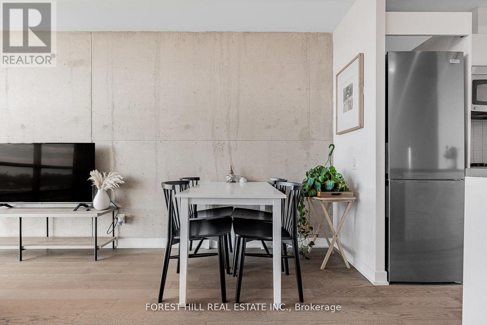 Experience incredible sunsets and UNOBSTRUCTED skyline views from this gorgeous one bedroom loft in Leslieville's sought-after WorkLofts! Freshly painted in 2025. This sun-filled suite combines industrial charm with modern comfort. Soaring 9Ft concrete ceilings, a bright open layout, and an unobstructed west facing view of the downtown skyline create a space that feels bright and inspiring. Enjoy cooking in your sleek Scavolini kitchen with quartz countertop and gas range. High end finishes with engineered hardwood flooring throughout. The building is quiet, well-maintained, and known for its LOW, stable maintenance fees over the years. Just one block from Queen Street East's best restaurants, cafes, and streetcars, and a short stroll to gyms, yoga, rock climbing, and spin studios. You'll love the easy 1-minute drive to the DVP, Lakeshore, or Gardiner Expressway, and soon the Ontario Line stop at Carlaw & Gerrard (only 4 minutes away) will make commuting even simpler. Easy access to the beach, bike lanes on Dundas Ave, three TTC lines. Residents also enjoy rooftop patio with BBQs, party room, and boardroom, onsite dry cleaning/shoe care services -- Everything you need for work, play, and relaxation in one stylish space. **New bedroom sliding door installed with management approval** (id:4555)