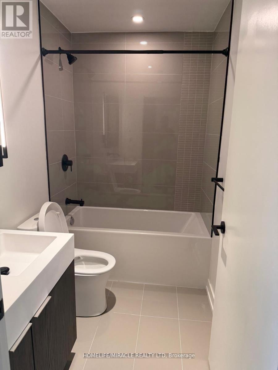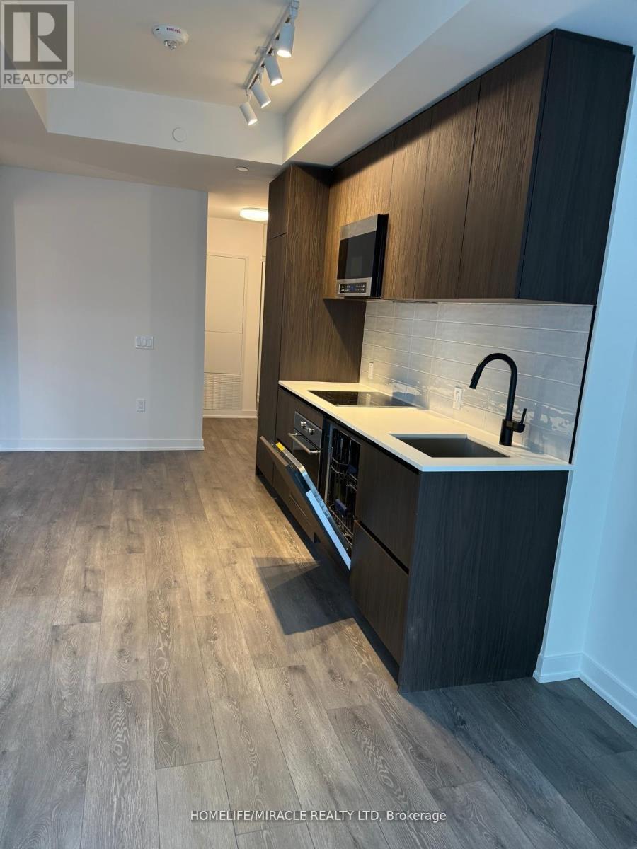 Experience upscale living in this exquisite corner suite at the highly sought-after Line 5 Condos. Be the first to call this brand-new unit home, boasting breathtaking, unobstructed views of the open swimming pool and terrace. Designed with elegance in mind, it features soaring 9-ft smooth ceilings, wide-plank laminate flooring, and an abundance of natural light. The sleek, modern kitchen is equipped with built-in appliances, quartz countertops, and an undermount sink, seamlessly flowing into the open-concept living area with a private balcony perfect for relaxation. The stylish bedroom, complete with sliding glass doors, offers the ideal blend of light and privacy, while the contemporary bathroom showcases matte black fixtures for a sophisticated touch. Enjoy the convenience of ensuite laundry and a mirrored front closet in this thoughtfully designed space. (id:4555)