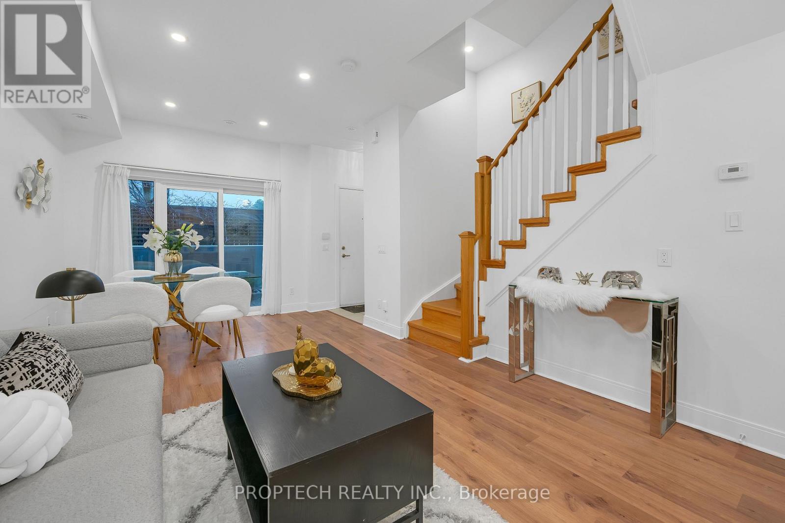 Located in the heart of Scarborough, Spacious 3+1 bedroom townhome in Tridels Metrogate Community offers both comfort and convenience. Newly Painted and Upgraded Modern LED lighting Fixtures throughout. The living room walks out to a private patio. Main floor features 9ft ceilings, an open-concept kitchen w/ Brand new countertops and bar seating. Versatile den can easily be converted into a fourth bedroom. Two side by side underground parking spaces! Perfectly situated near Hwy 401, public transit, schools, banks, supermarkets, restaurants, parks, a library, and more. Minutes away to Kennedy Commons and STC. Move-in ready! (id:4555)