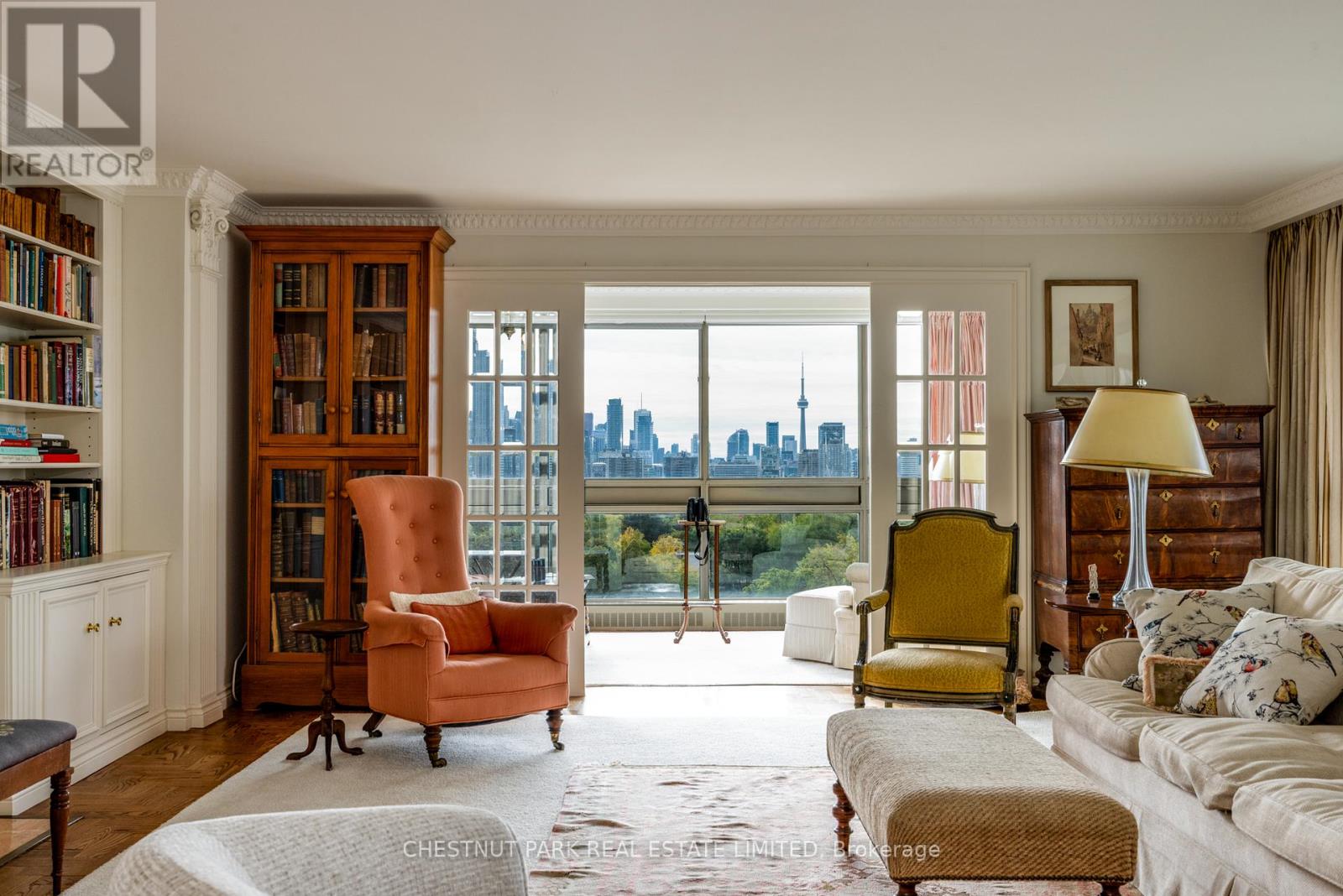 Rare offering at Granite Place. South, West, and North views from the 10th floor, enjoying nearly 2,600 square feet of living space. Gaze across the treetops to the CN Tower and onward to the lake. Watch the incoming weather, the changing skyline, and the twinkling night lights. The Suite feels like a large home with room for entertaining, art, and a lifetime of collectibles. The Foyer welcomes you into this elegant and open space. The transitional style combines traditional comfort with expansive, open, and light-filled living. The living room opens wide to the sunroom with balcony walkouts in both rooms. The long closet-lined hallway to the primary creates a private retreat with a large sitting area, dressing room, and ensuite bath, as well as a large dedicated balcony. The 3rd and 4th bedrooms are set in the south wing, both with enchanting views and a dedicated 4-piece bath. The suite has 4 Bedrooms, currently used as 2 plus 2 large offices, and 4 bathrooms*. Closets are abundant throughout with organizational systems and shelving.2 large lockers are also included for exclusive use. 2 Parking spots are owned and in a prime location on the A level near the entrance. The laundry room has a wash sink, large storage cupboards, and even a dedicated entrance. Granite Place offers a gentile lifestyle set away from the rumble of St Clair behind in a mature, treed, and private park setting, with an attentive concierge staff, pool, gyms, sauna, event room, and a recently completed and highly anticipated renovated lobby. Plue, Recently upgraded fibre optic speed service. (id:4555)