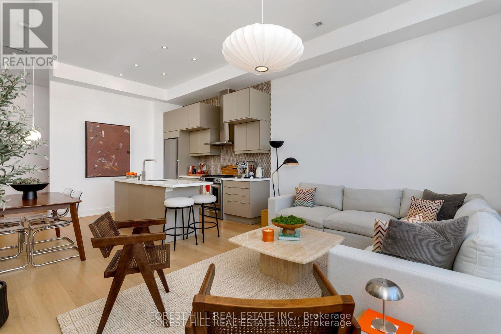 Welcome to unit 204 at the Annex Loft Houses. This well appointed 3-storey condo totaling approximately 1,548 square feet of interior and exterior space offers spacious, thoughtfully designed living space with quality upgrades throughout, including wide-plank white oak hardwood floors and upgraded light fixtures. 11 foot floor-to-ceiling windows fill the main floor with natural light, complementing the modern kitchen. Balconies on every level and a private rooftop terrace with gas line provide excellent outdoor entertaining and lounge space. Primary bedroom with spa-inspired 5-piece ensuite. Designed for comfortable everyday living and easy entertaining. Ideally located in the Annex/Seaton Village steps to transit, parks, coffee shops, Summerhill Market, Loblaws, Fiesta Farms and other neighbourhood gems. (id:4555)