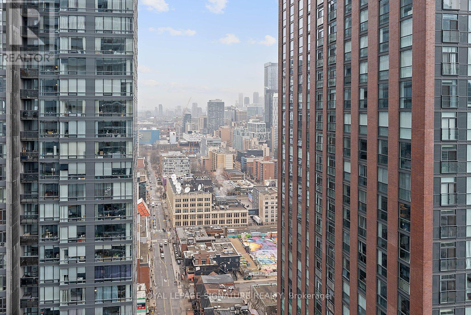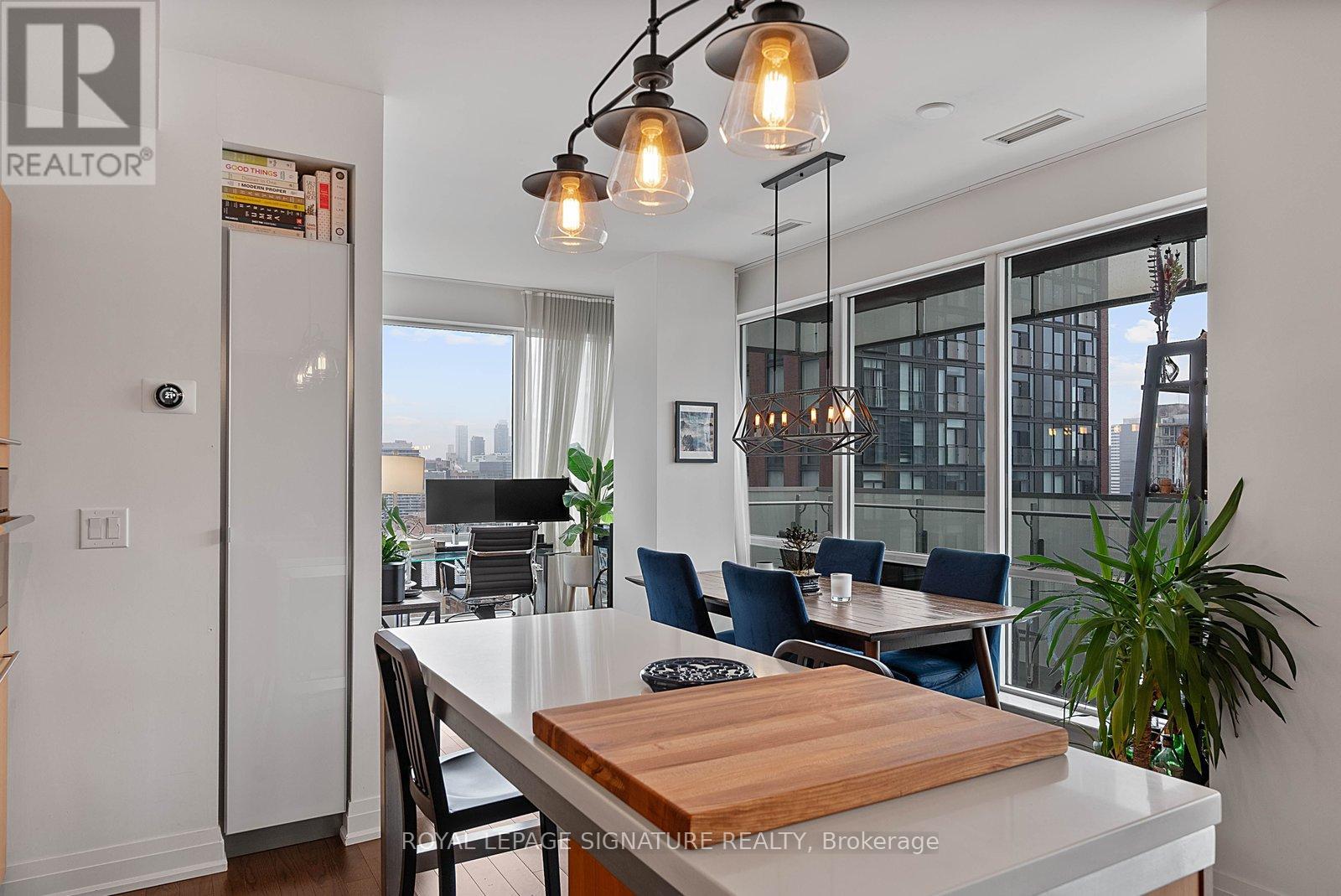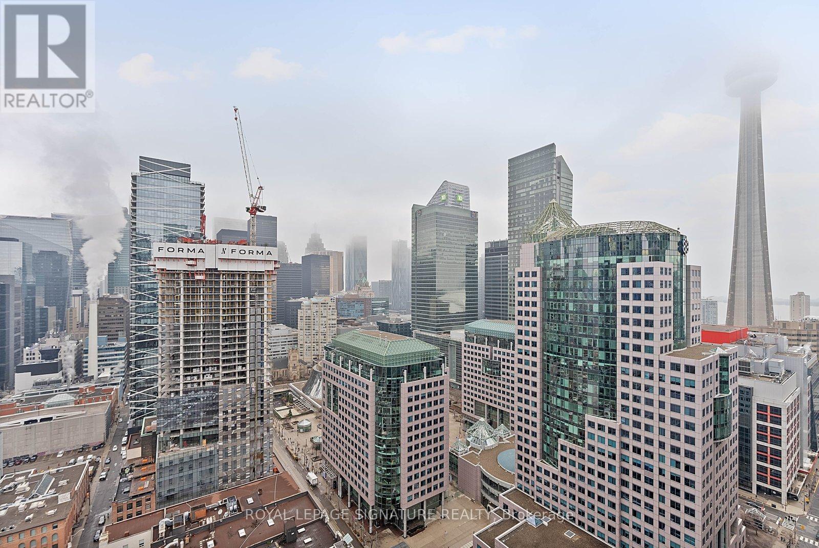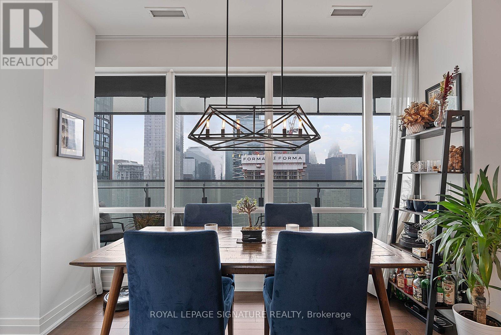 Welcome to Suite 3008 at Festival Tower. A modern corner unit featuring a large terrace with expansive city views. Step into the open kitchen combined with living room and separate dinning space. Floor to ceiling windows allow for an abundance of natural light throughout. The kitchen includes built-in appliances, ample storage and a breakfast island for everyday convenience. The primary bedroom features a double closet and semi-private ensuite. Pride of ownership is evident throughout with thoughtful details and finishes. Experience downtown living with every amenity at your doorstep. Walking distance to Rogers Centre, CN Tower, waterfront, restaurants, cafes, shops, and convenient transit options. (id:4555)
