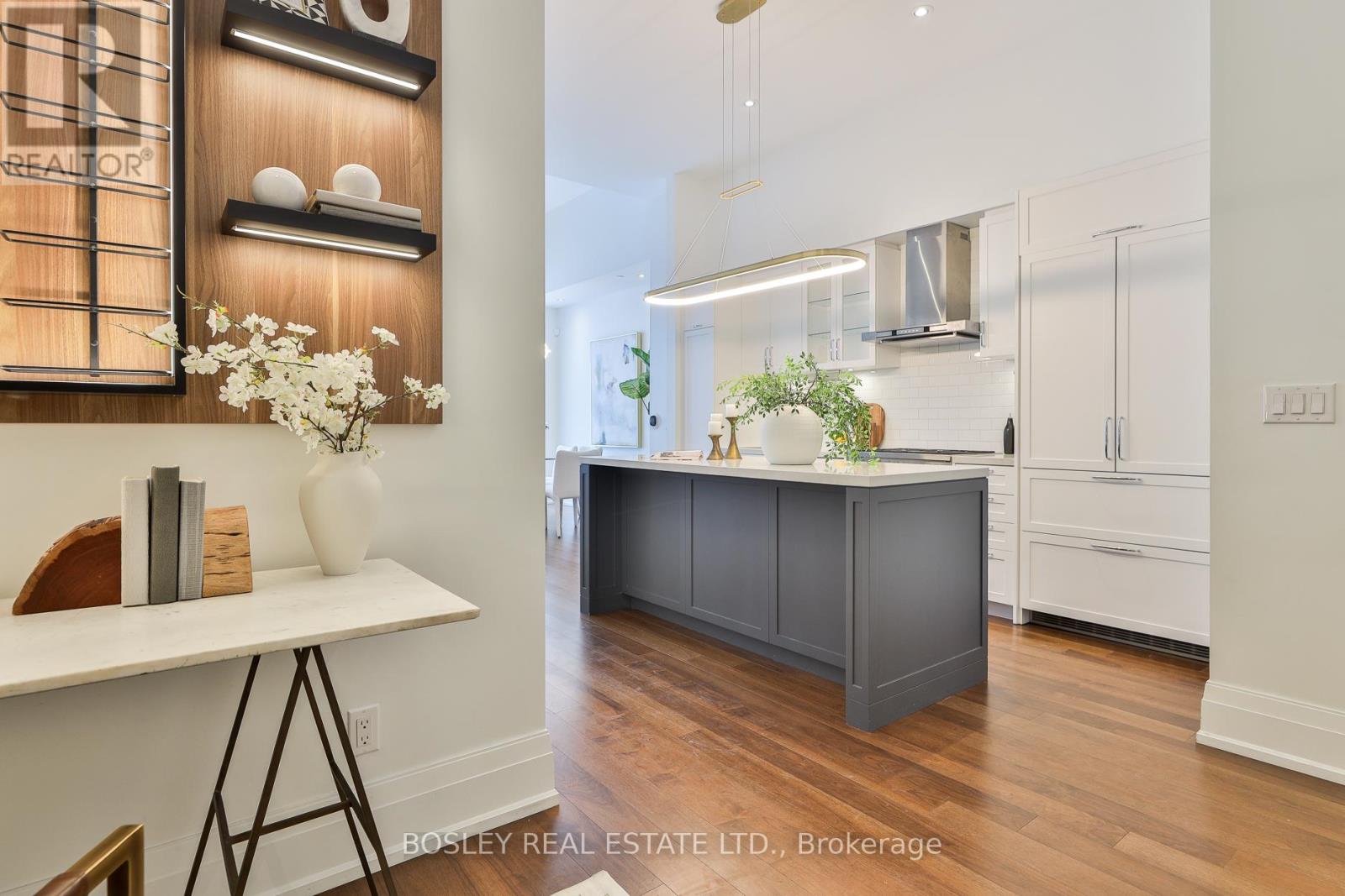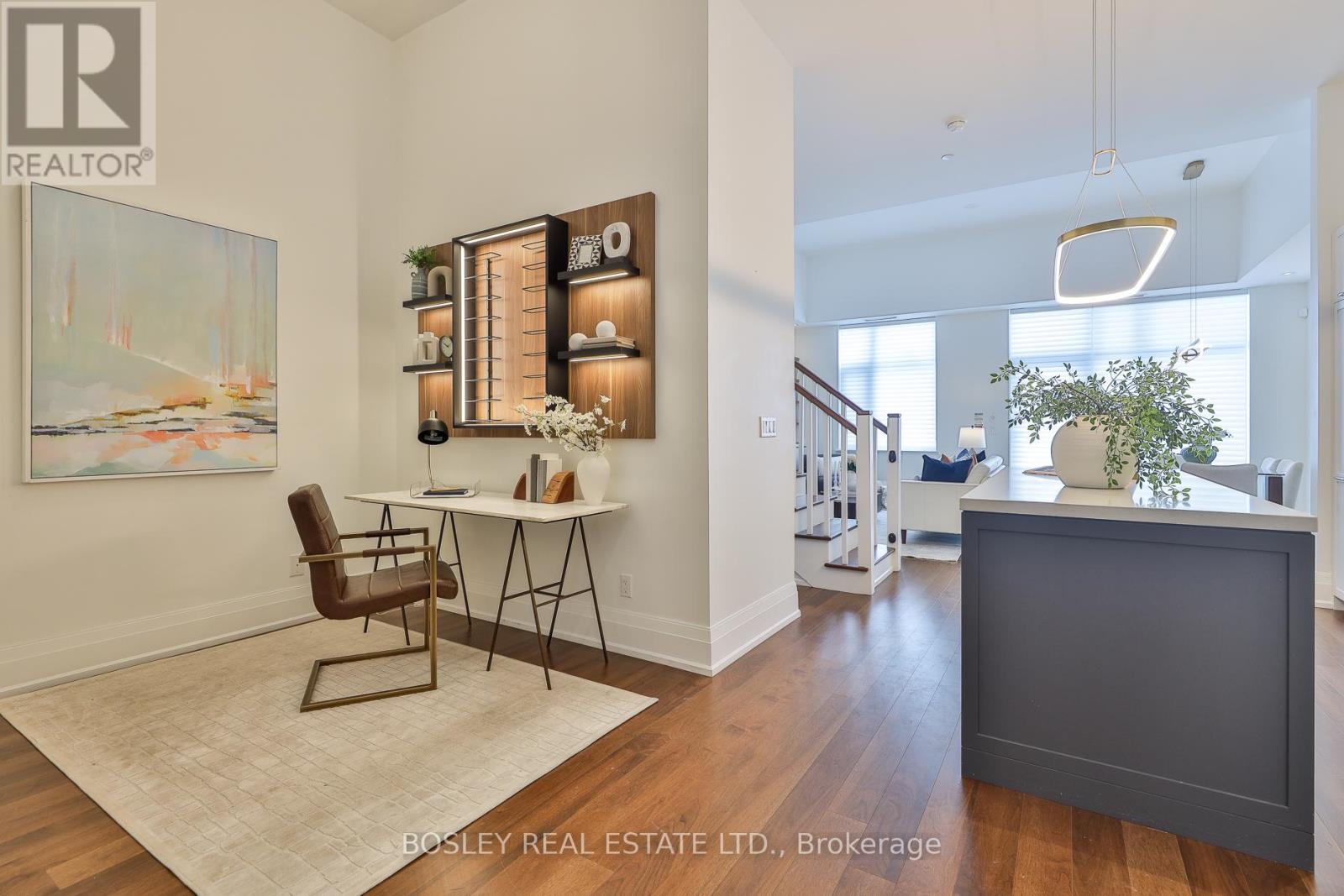 Welcome to The Upper House, a luxury townhouse boutique condo offering exquisite style & an space in family-friendly Leaside. This 2-storey home features 1462 SF of interior living plus a 275 SF terrace with BBQ gas line, for a total of 1737 SF. The open concept main floor impresses with soaring 12-ft smooth ceilings, custom Hunter Douglas remote controlled blinds and prefinished engineered hardwood flrs. A show-stopping, wall-to-wall custom entertainment unit anchors the living room, complete with bespoke cabinetry, pot lights, decorative wood panelling, contemporary fireplace with mantle & wall-mounted TV with statement light fixture. The dining area sits perfectly between the living room and terrace walk-out, making it ideal for dinners by the fireplace as well as enjoying abundant natural light while at breakfast. The modern chef's kitchen is outfitted with top-of-the-line appliances, including a panelled fridge, dishwasher, and pantry offering functionality symmetry. The main floor also includes a large den/office with a double-door closet, which can easily be converted to a third bedroom by adding a wall & glazed French door for privacy. Don't miss the main floor powder room. The upper level enjoys an oversized family room with a 2nd wall-mounted TV (all tvs included) for family movie nights. The principal bedroom features a walk-out to a second outdoor space, his & hers closets and a spa-like ensuite with a glassed-in shower, soaker tub, and double sinks. The 4 PC bath serves the 2 bdrm and family rm. This fabulous offering includes parking and locker. Note this is a pet-friendly building complete with a pet-spa and no size restrictions for your fur babies. A rare opportunity to own a refined townhouse with exceptional design and superior quality finishes (refer to attached Features & Upgrades) in the heart of Leaside! In the top-tier Rolph Rd ES, Bessborough Dr MS & Leaside High School district.property was staged but staging is no longer in place. (id:4555)