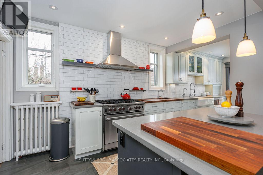 Welcome to 50 Thornhill Ave. This Baby Point beauty sits at the top of the street with south facing views all the way down to Raymond St. Take a 30 x 107 foot lot turn it on its side and build a home with windows facing every direction for the Acme in natural light and city living. Words can't describe the joy of living with so much sunshine available indoors. Almost every room in the house has multiple windows many facing more than one direction. Luxuriate in a home blending the charms of days gone past... gum wood trim; leaded and stain glass windows; working wood burning fireplace with the conveniences demanded by today's home owners... super delux reno'd kitchen with 6 burner Wolf Gas range, two sinks, loads of counter/cabinet space with French door walk out to bbqing deck and the children's garden, that's correct this home boast both a children's garden with tree house on the east side of the house and a totally separate adult garden with entertaining deck and western exposures, main floor powder room, home office and more. Enjoy some of the city's finest outdoor biking/walking trails on the Humber River and Etienne Brule Park just a few minutes away. For the tennis players, Baby Point Tennis Club is just a short walk. Take the Jane bus to Bloor St West for the subway and/or enjoy a 20 minute walk home at the end of the day to clear your mind. Easy access to Black Creek Drive and the 400 and 401 highways for out of town trips to the cottage or to see family and friends. Properties like this seldom come to market. Now is the time for your forever home! = (id:4555)