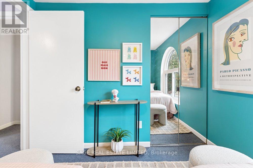 Cabbagetown's best kept secret! This 3-story townhome is hiding in plain sight behind an unassuming facade, nestled within a boutique collection of townhomes that remains one of the neighbourhood's most coveted gems with 2+1 bedrooms & 2 baths! Available for the first time in 12 years, Unit 4 is a fabulous, bright, and spacious residence offering nearly 1,300 square feet of living space across three finished levels. Step into the heart of the home to a sweet, welcoming front foyer with 2 large closets, a pass through and tons of shoe storage. The open-concept main floor and the spacious upgraded kitchen maintain a charming retro vibe featuring a breakfast bar, stainless steel appliances, hardwood flooring. Overlooks a large private yard that has three mature trees - an oasis of greenery and sunshine, perfect for al fresco dining. The upper level is a true sanctuary, bathed in natural light from dual skylights and two expansive arched windows. The primary bedroom features high-end wool carpets, built-in shelving, a double mirrored closet and a versatile tandem room that is perfect as a dressing room, nursery, or home office. Storage is abundant with a huge walk-in closet. Both the primary and the spacious second bedroom overlook the serene, fenced-in yard, with a full four-piece bath completing this level. The "winning" lower level features a massive family room anchored by a rare, cozy wood-burning fireplace. With eight-foot ceilings, a full three-piece bathroom, laundry, and ample under-stairs storage, this versatile space offers endless possibilities as a media room or living room. Steps from Riverdale Farm, Cabbagetown Farmer's Market, and the world-class Regent Park Aquatic Centre, commuting is effortless with the 506 Carlton streetcar at your doorstep. Easy access to the Distillery District, Allan Gardens, and the DVP. Steps to many incredible cafes and restaurants. Includes 1 car parking, underground that has lots of space for storage plus a shared bike roo (id:4555)