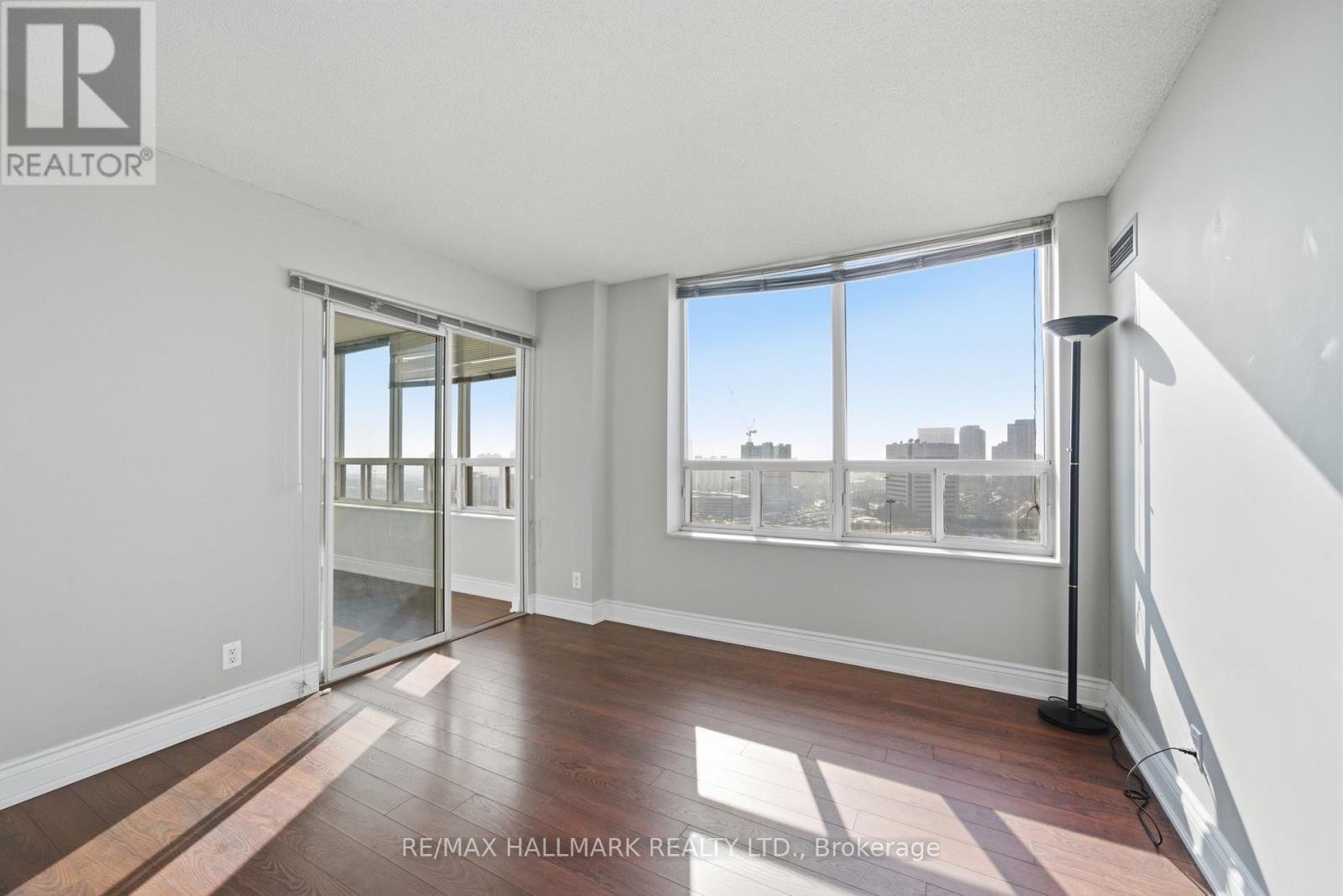This stunning condo unit on the 20th floor offers a perfect blend of comfort, style, and convenience. The spacious two-bedroom + den layout features large, airy rooms and a flowing floorplan that maximizes space and natural light. The sunroom provides breathtaking views of the city skyline, making it an ideal spot to relax and enjoy sunsets every day. Maintenance fees are inclusive, covering heat, water, and hydro, ensuring hassle-free living. Included parking space is located next to the elevator. The building is well managed and boasts resort-style amenities, including a sunny indoor pool, fully equipped gym, relaxing saunas, and more, all designed for a lifestyle of leisure and wellness. Located just steps from transit, with Wynford LRT stop right outside your door! This family-friendly community is perfect for commuters, offering quick access to downtown while being surrounded by nature trails and some of Toronto's finest green spaces. This is truly a prime location that combines city living with the tranquillity of nature, offering residents the best of Toronto in one exceptional package. (id:4555)