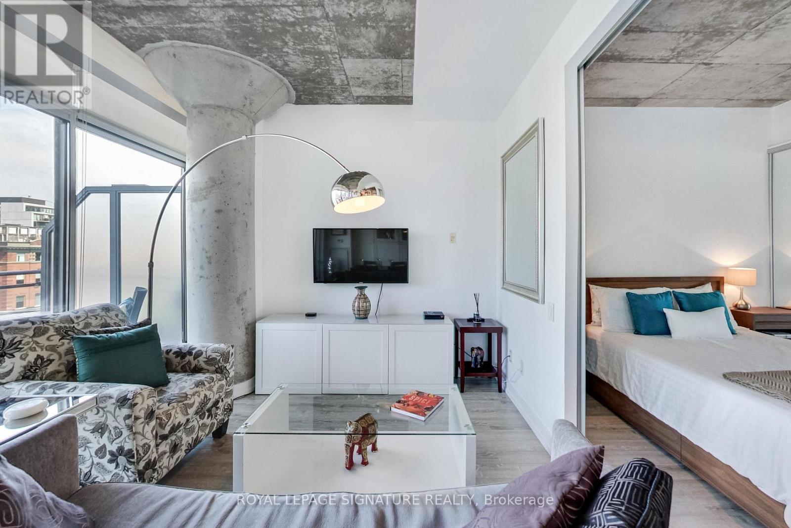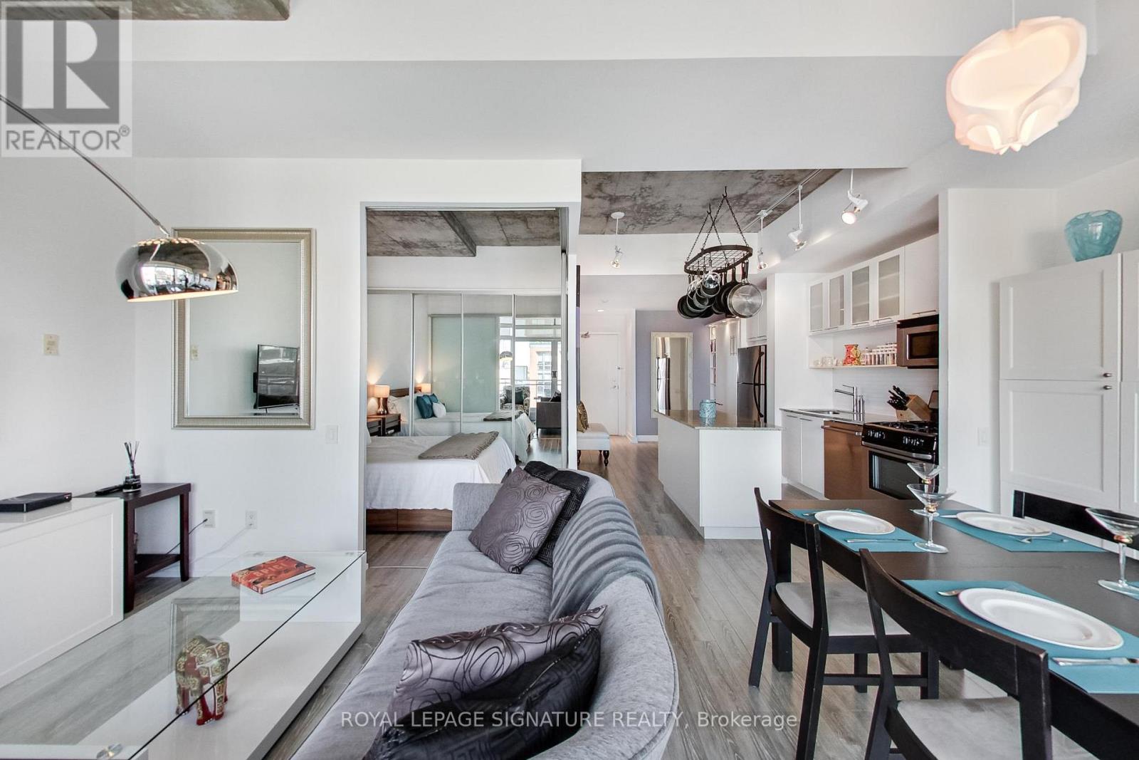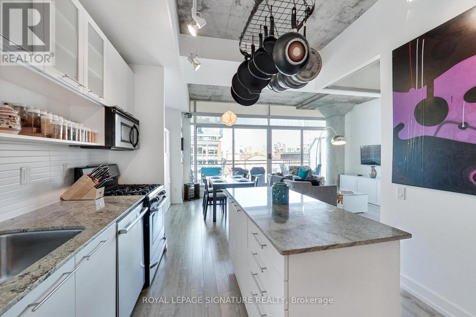 Live in one of the best boutique soft lofts among all the action of King West! This bright and spacious urban loft has a very efficient, open concept 1 bedroom + den layout with a generous entertainment space. Includes 1 underground parking spot & 1 locker. 10' exposed concrete ceiling. Modern white kitchen with an island and gas cooking! Brand new flooring throughout. Huge wall-to-wall custom closet with mirrored doors. Upgraded 4pc bathroom. The den is outfitted with a built-in murphy bed to host your overnight guests after a night out on the town. Wall-to-wall floor-to-ceiling windows & double sliding doors that opens up the indoors to a spacious terrace-style balcony with a natural gas B.B.Q. hook-up. Enjoy the view overlooking King West, while having dinner and drinks outside or soaking up the afternoon summertime sun. (id:4555)