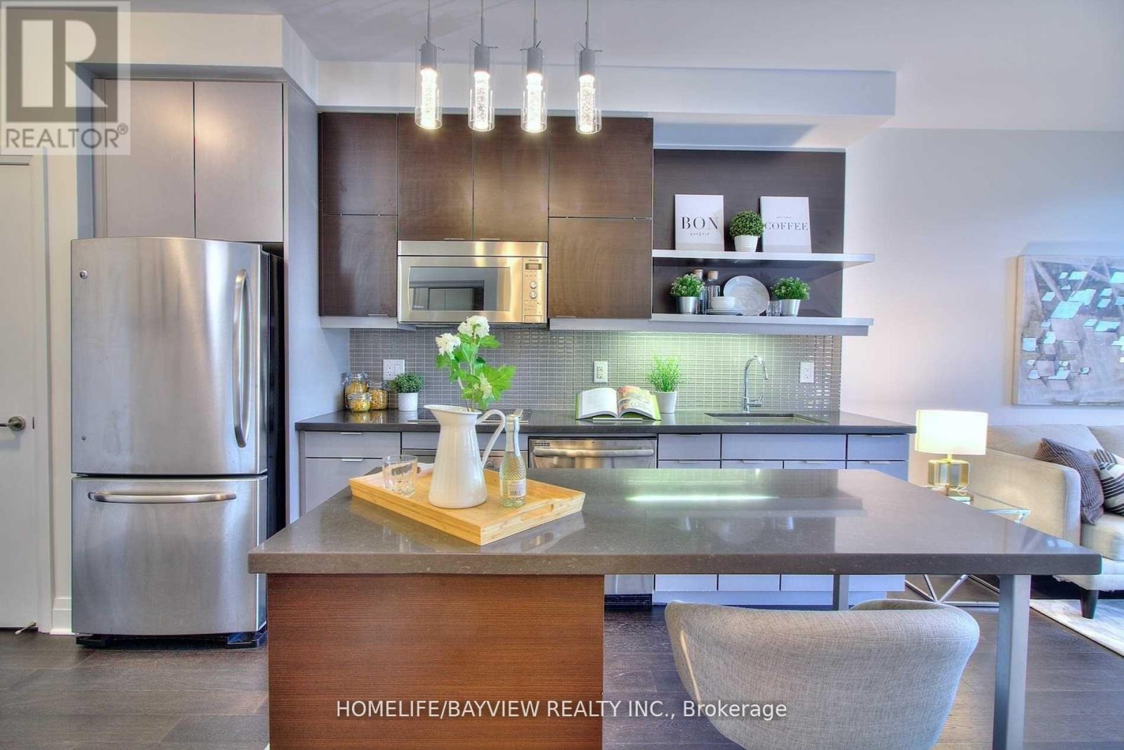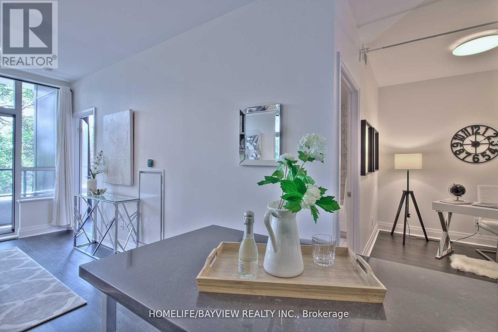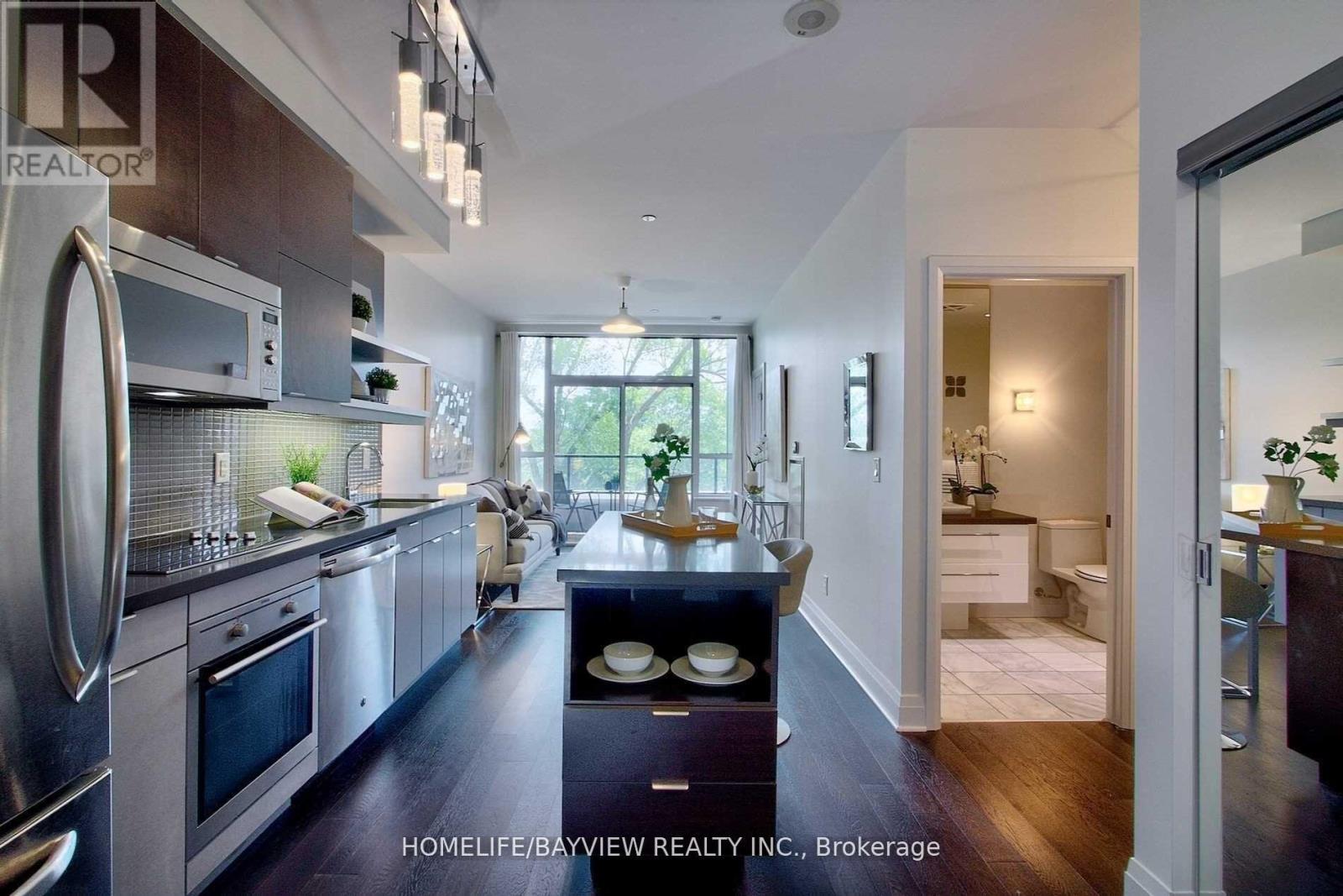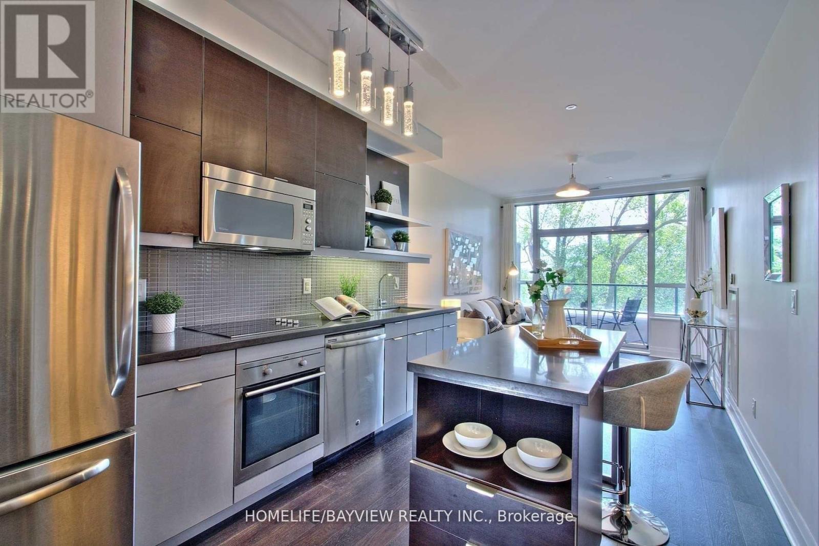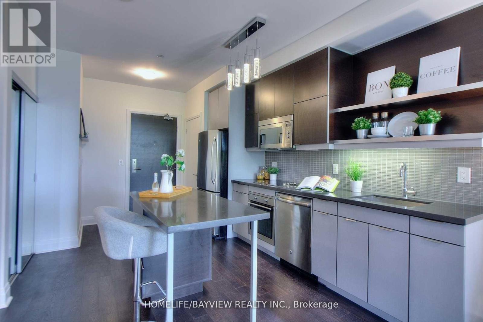 location, location, Very Modern one Bd Room+ den apt.at Bayview Village area , Den used as Second Room for kids or Office. Main Bd Room with Beautiful View and His+ Her Custom Closets. Open Concept Kitchen, with High Quality ST App ,Modern Light Fixtures ,large Bathroom, 9 feet Ceiling, hardwood floors through out apt .clear view, .balcony with ceiling(rare in building just 5th floor)you will enjoy all times. min to subway, close to HWY 401 ,Shopping Center, HIGH Rank schools, YMCA, Parks. (id:4555)