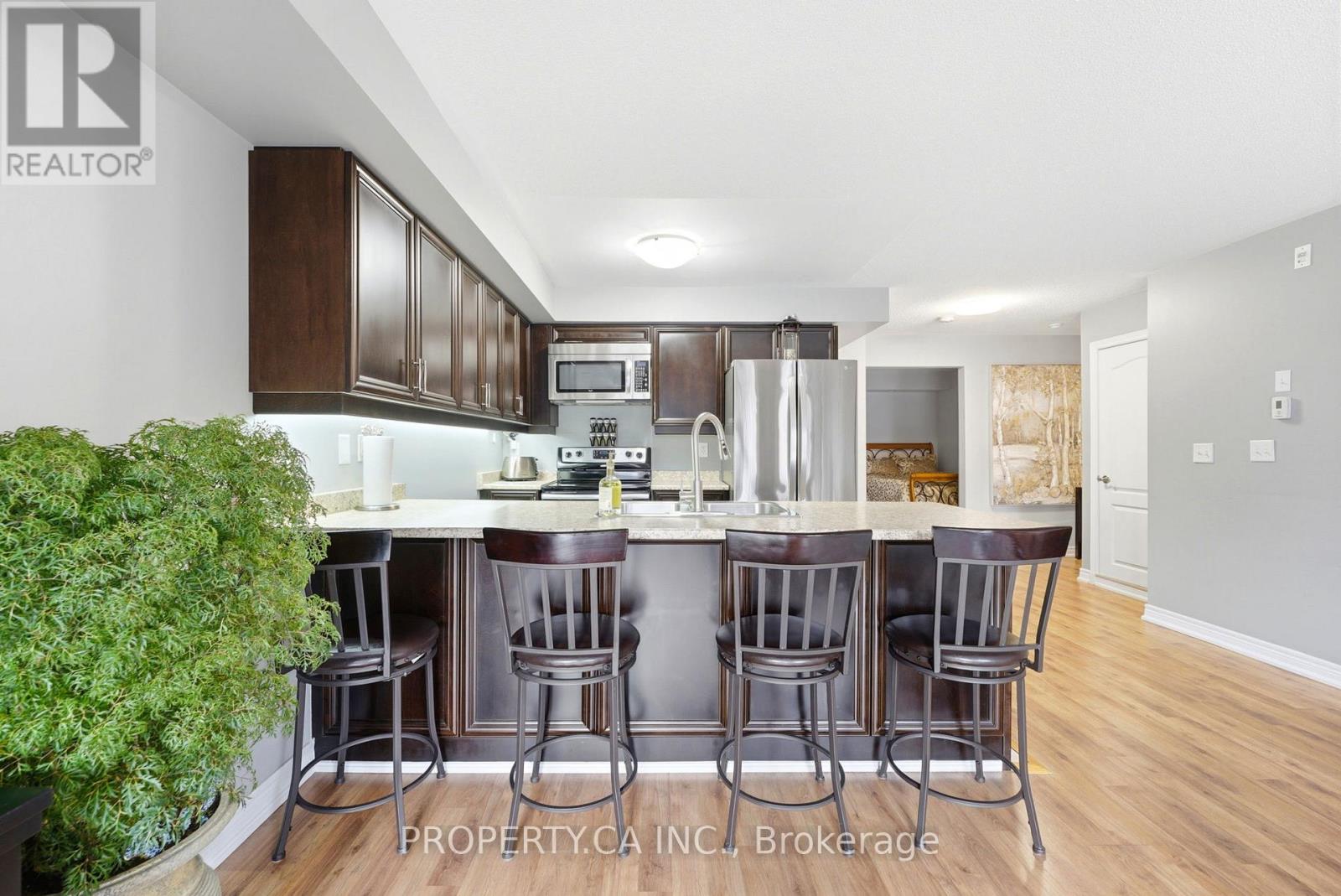 Attention first time buyers!! Welcome To This Bright & Beautiful 2-Bedroom unit with PrivateGarage! This well-maintained unit features open-concept living & dining area, modern kitchen with full-size stainless steel appliances, upgraded cabinetry, elegant counters & breakfast bar. Spacious primary bedroom offers a walk-in closet With office nook and a large second bedroom with walk in closet and ample storage space. Ensuite laundry, beautiful bathroom finishes, inviting balcony with West facing sun filled views just turn the key and your home. Family-friendly community with parks, splash pad & skating rink & new Western North York Community Centre. Steps to Starbucks, Restaurants, Schools, Transit, Amenities & More including easy access to Hwy 401/400, connecting you to GTA arteries. (id:4555)