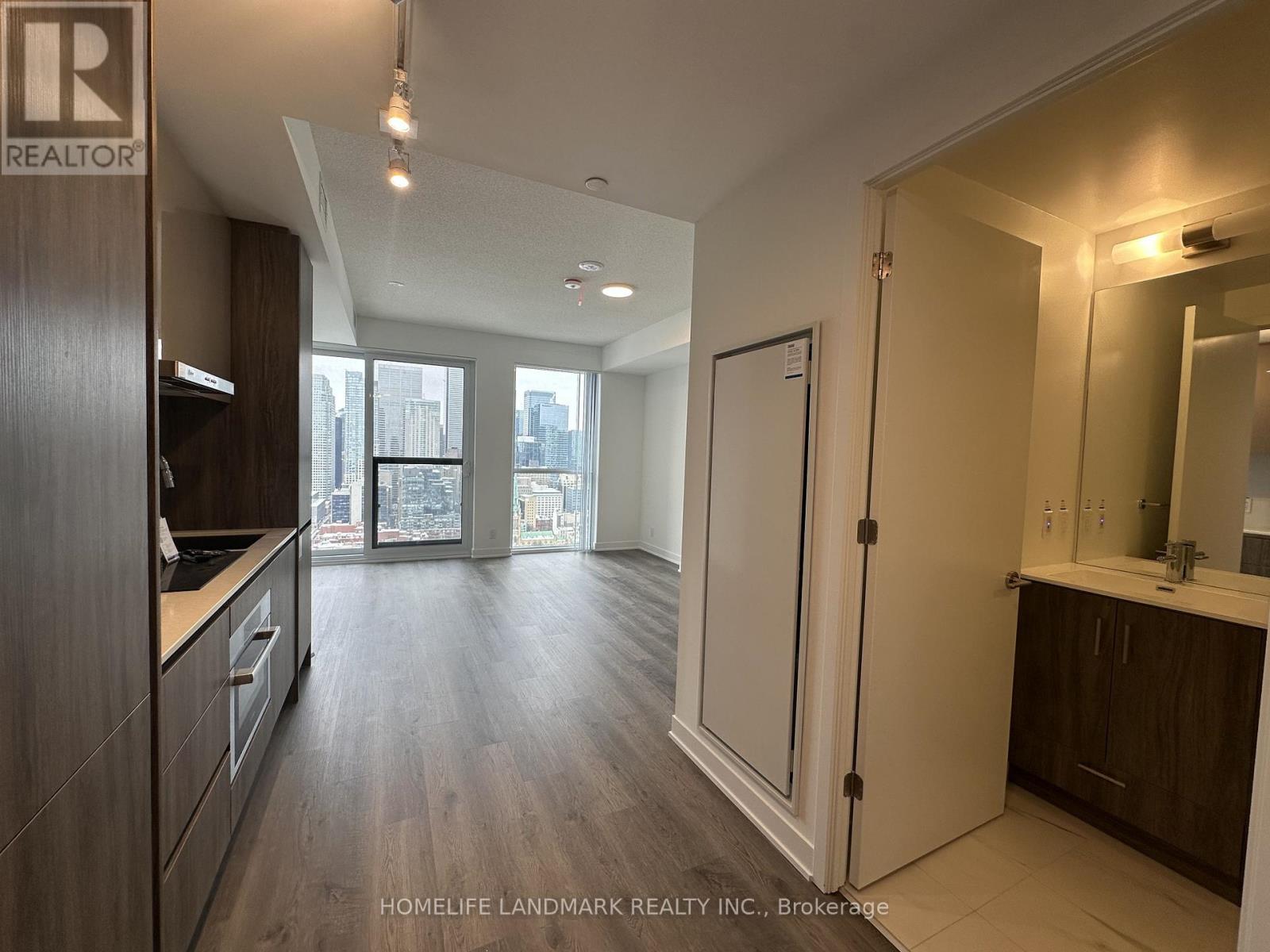 The Whitfield - the brand new building by Menkes. Sun-filled west-facing studio unit, with unobstructed west city view and lake view. Functional layout for bed, sofa, TV, study desk and dining table. Modern kitchen with high-end appliances. Steps to St. Lawrence Market and transit-perfect for professionals. BELL HIGH SPEED INTERNET INCLUDED in rent till Feb 2028). (id:4555)