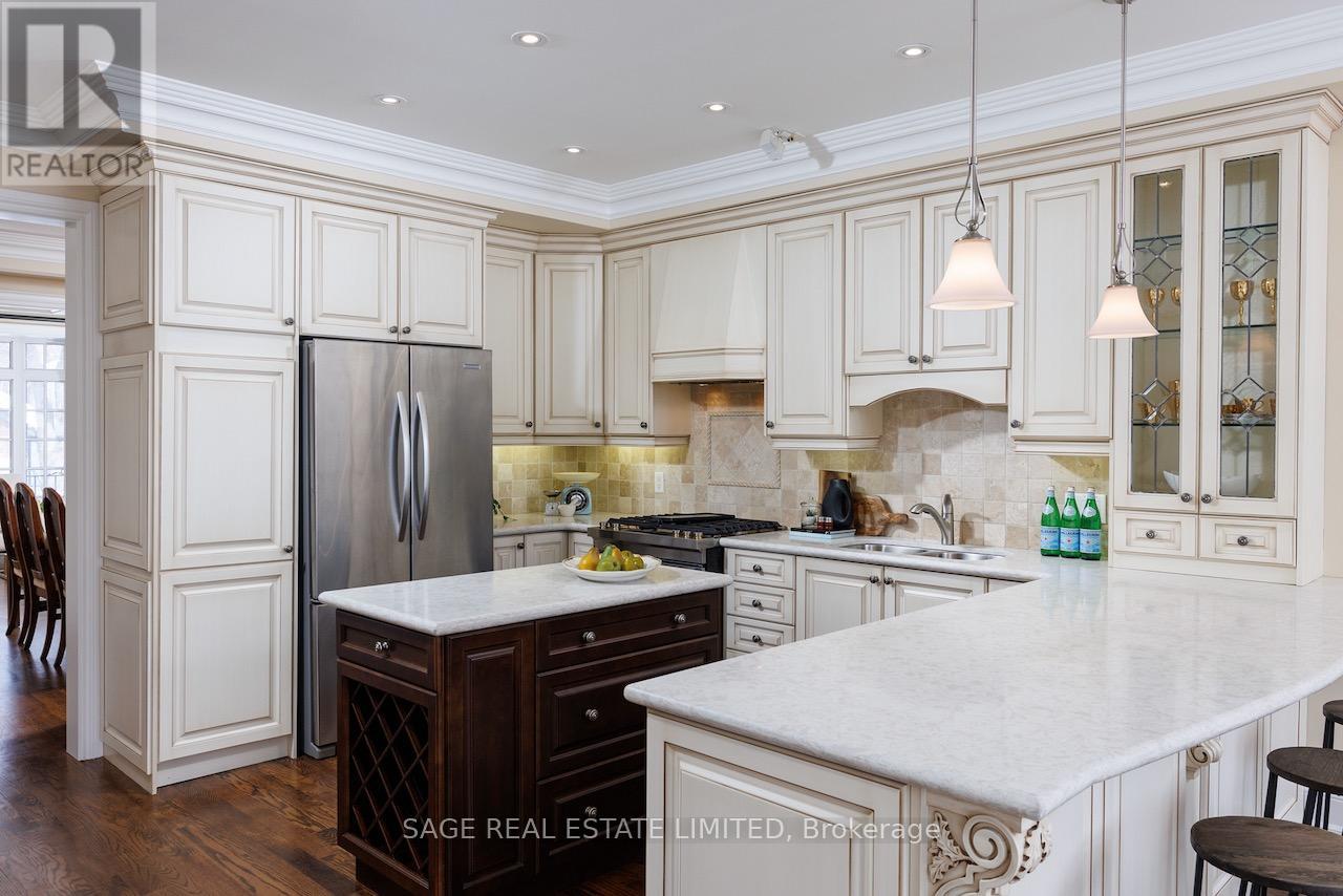 This stunning custom built home is situated on a prime street in the heart of the Bedford Park area. Steps from Avenue Road's premier shops, restaurants and amenities, this home offers unparalleled convenience in one of Toronto's most desirable neighbourhoods. Inside you are welcomed with large principal rooms, custom millwork, hardwood floors, wainscoting, soaring ceilings and leaded glass windows that add a traditional elegance. A gourmet kitchen with top of the line appliances and a centre island flow seamlessly into the breakfast room which allows double french door access to the rear deck and serenely private yard. The family room offers custom cabinetry, a built in gas fireplace and a large window overlooking professionally landscaped gardens. Upstairs a skylight greets you with a bright open hallway, a spacious prime suite with walk in and double closets, a four-piece marble ensuite with jet tub, separate shower and adjacent vanity under a skylight. Two additional bedrooms share a five-piece semi-ensuite and a 2nd floor laundry is an added convenience. The lower level features a large finished recreation room with a comfortable relaxation and entertaining area, four-piece bath and direct access to the garage and separate entrance. Ideally located close to top schools, parks and transit, this home is perfect for midtown family living. (id:4555)