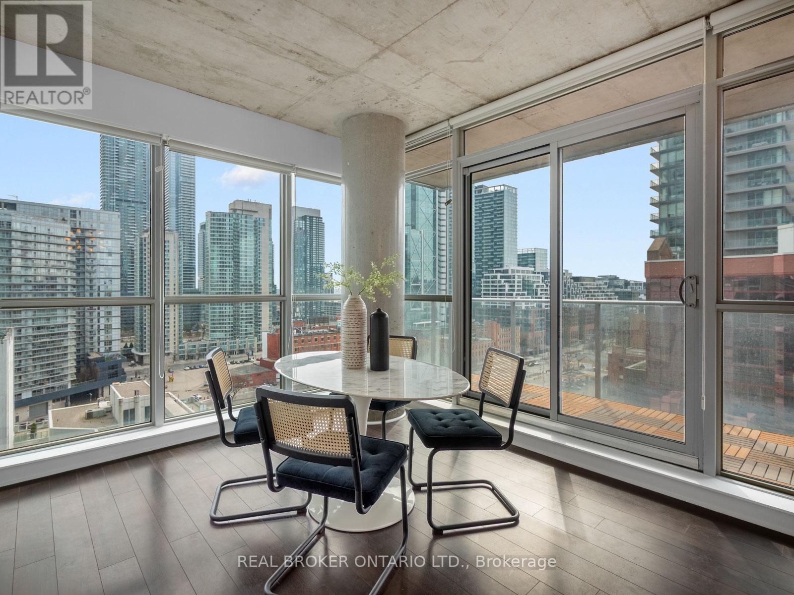 The King West Condo That Doesn't Feel Like a Condo. This beautifully laid out 2-bedroom, 2-bathroom plus office suite offers over 1,165 sq. ft. of thoughtfully designed living in the heart of King West. Unlike typical condo layouts, this home flows naturally, with a functional design that makes everyday living feel easy. The corner kitchen is a standout, featuring generous counter space room to cook, host, and actually enjoy being in your kitchen. The open-concept living and dining area is filled with natural light and leads out to a truly rare oversized balcony with a BBQ hookup. It's perfect for entertaining or unwinding while taking in amazing, unobstructed west-facing city views that will never be built out.The primary suite features a beautiful ensuite with a separate tub, creating a calm retreat at the end of the day. Freshly painted and move-in ready, this home offers both style and substance. All of this is just steps from the best the city offers, including The Well, the Princess of Wales Theatre, TIFF Bell Lightbox, incredible restaurants, shops, the Financial District and many daycare options. Enjoy easy access to transit, cycling paths, and everything you need to live, work, and play.This is King West living, with space you didn't think you could get. (id:4555)
