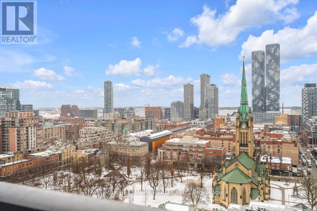 Outstanding views from this rare 3 bedroom corner suite at The Saint! Spacious Minto built floor plan with generous sized kitchen, eat on island and lots of cupboard space! Enter into the suite from a dedicated and private entrance way. Lots of room to sit down to remove your shoes and hang your coat! Generous sized laundry room ensuite with storage area. Walk into a bright and open concept suite with an attractive light colour palate which brings in all of the south facing light. Stand on the balcony, and the view is picture perfect, directly looking south to the St James Cathedral and St Lawrence Market neighbourhood. 3 separate bedrooms and 2 full bathrooms make this a great space to enjoy downtown life! Walking distance to the Financial District, street car and subway, numerous cafes, grocery stores and top tier dining. This location is hard to beat! 5 star living with 24 hr Conceirge, gym, party room, outdoor terrace and more! (id:4555)