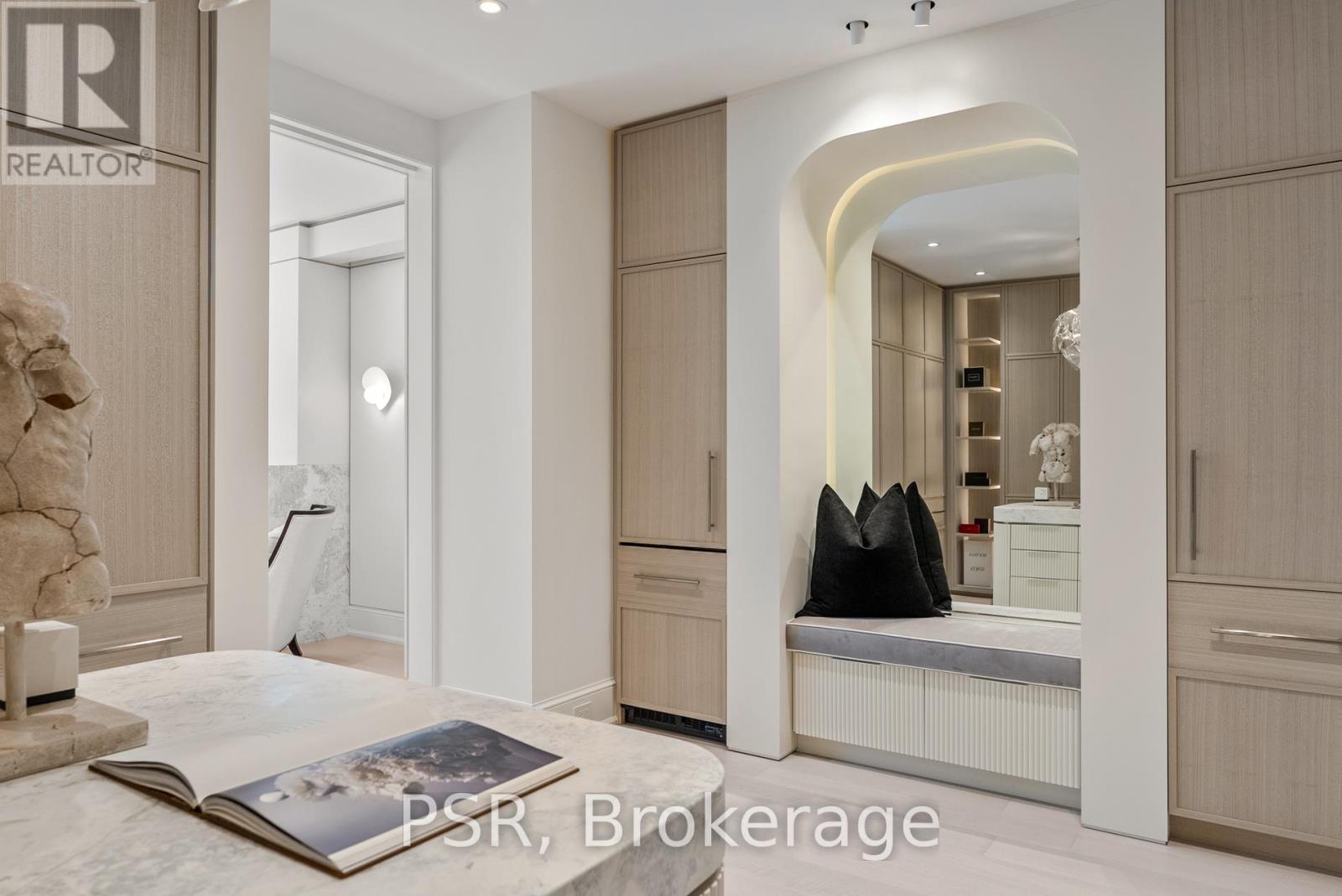 Redefining luxury living in Forest Hill, this exceptional estate rests on a 60 ft x 135 ft lot and embodies design excellence by OE Design, where craftsmanship and attention to detail are evident at every turn. The moment you enter, a sweeping spiral staircase sets the tone for over 10,500 sq ft of refined living space. Grand principal rooms are designed for both elegance and comfort, with a formal dining room and a striking living area highlighted by a limestone gas fireplace and dramatic 23 ft floor-to-ceiling windows that flood the home with natural light. At the heart of the residence lies the chef's kitchen, equipped with Miele appliances, custom cabinetry, leathered marble countertops, an oversized island, and a butler's pantry. The adjoining family room features a hidden bar, integrated audio, and seamless views of the garden with heated patio and steps. The primary suite is a true retreat, complete with a spa-like 6-piece ensuite finished in Silver White Honed Marble, a free standing tub, steam shower, dual vanities, and two expansive custom closets. Four additional bedrooms with private ensuites span two levels, offering exceptional accommodation. An elevator connects every floor, including a lower level curated for ultimate leisure with an indoor pool and spa, state-of-the-art theatre, and fully equipped gym, all with direct walkout to a lush, private garden-perfect for both intimate gatherings and large-scale entertaining. Outside, a heated circular driveway accommodates four vehicles with the option to be gated, while the heated garage includes two spots, lift potential, and EV charging. Just minutes from top private schools, fine dining, and scenic parks, this home masterfully balances exclusivity, elegance, and everyday convenience. (id:4555)