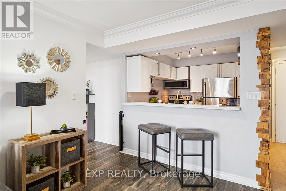 They say you can't have it all . . . but clearly they haven't been to the prestigious River Ridge Condos. This bright & spacious 1,003sf, 2-bed, 2-bath suite offers an excellent layout, breathtaking unobstructed southwest views of the Humber River & picturesque parkland; and exceptional value. Designed for comfort, convenience & modern living, the open-concept layout features large windows that fill the space with natural light, ample storage, and a cozy, sophisticated atmosphere. Thoughtfully renovated with elegant ceramic tiles, modern laminate floor, & refined finishes throughout including double vanity in primary ensuite. The contemporary kitchen with large breakfast bar makes it perfect for entertaining, while the spacious living/dining areas create an airy, inviting environment. Additional conveniences include ensuite laundry, locker, heated underground parking & car wash bay! Luxury resort-style living! Residents enjoy a state-of-the-art gym, indoor pool, hot tub, sauna, tennis, billiards room, party room, library, guest suite, outdoor courtyard, and 24/7 concierge/security, all in a gorgeous building with beautifully landscaped grounds. More? All utilities: heat, hydro, water, & cable TV are included adding exceptional value & ease of budgeting. Perfectly situated in a highly sought-after neighbourhood, minutes from Weston Golf & Country Club, York Weston Tennis Club & Rec Center. Walking distance to Weston GO, TTC & UP Express & close to major highways, making commuting across the GTA effortless. Step out to your backyard onto the scenic Humber River trails, perfect for a peaceful walk, a short jog or bike ride, even a dedicated dog-friendly area. You're also close to grocery stores, restaurants, shops & everyday essentials, providing a connected lifestyle without the downtown congestion. Whether you're looking to rightsized, invest or simply starting out, this large move-in-ready condo offers the perfect blend of comfort, convenience, and natural beauty. (id:4555)
