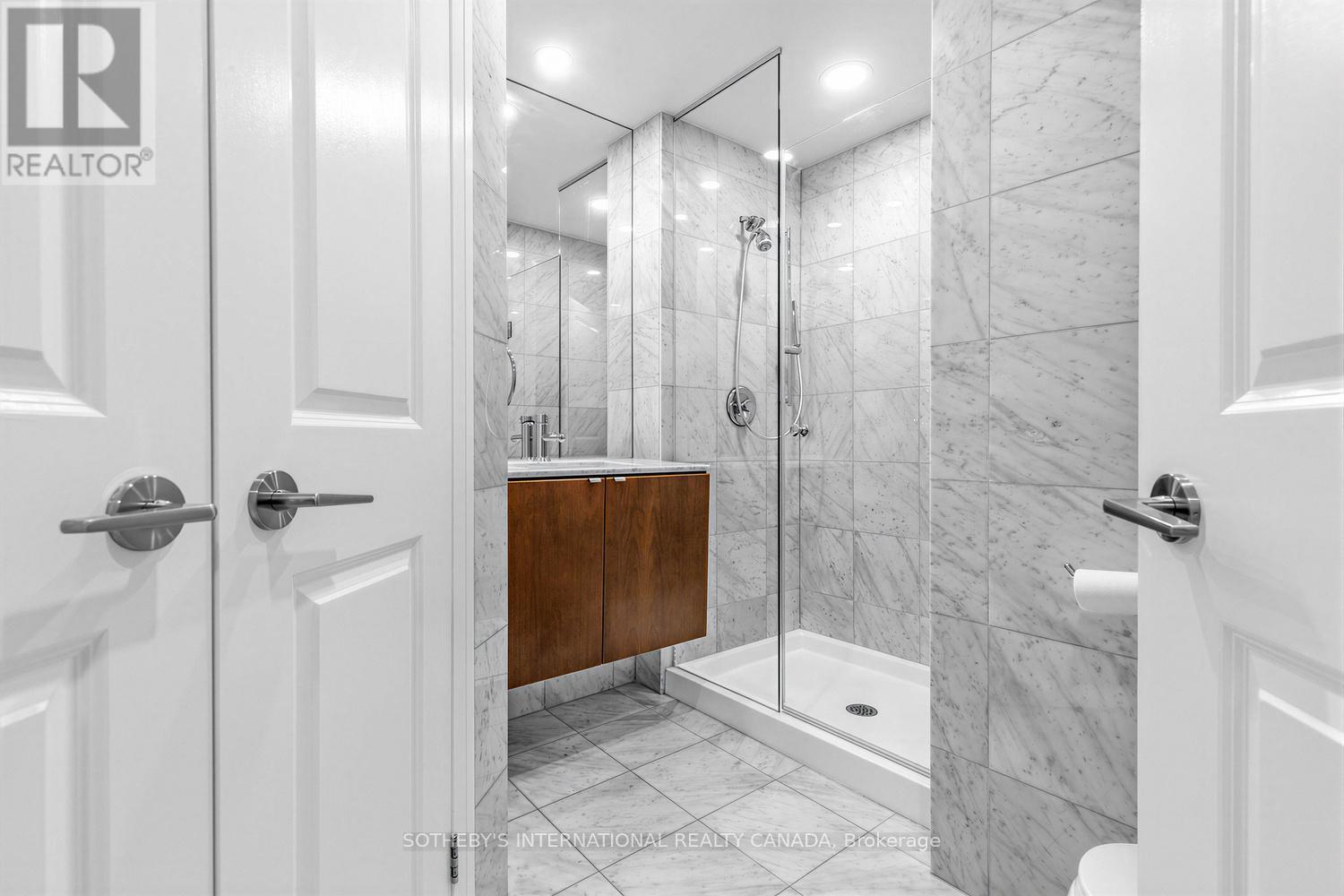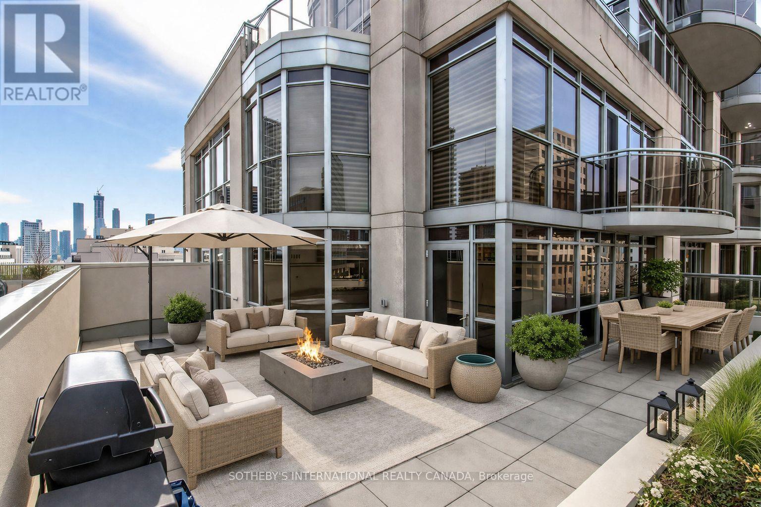 Welcome to "The Clairmont" at Yonge and St. Clair, a rarely offered, beautifully proportioned two bedroom plus den residence offering approximately 1,300 square feet of refined interior living, paired with exceptional outdoor space. A thoughtfully designed layout with a gracious foyer leads into an expansive open concept living and dining area, wrapped in windows and anchored by a walk-out to an extraordinary private terrace of approximately 690 square feet-perfect for seamless indoor-outdoor living and entertaining. A separate balcony, approx 98 sq.ft., adds an additional outdoor retreat.The chef's kitchen features a centre island, abundant cabinetry, and quality appliances, overlooking the principal living space. The intelligent split-bedroom plan offers privacy, with a spacious primary suite complete with walk-in closet and ensuite bath, while the second bedroom is well-positioned near a full bath. A separate den provides flexibility for a home office or additional living space, as confirmed in the floor plan. Soaring ceilings, rich hardwood floors, and floor-to-ceiling windows enhance the sense of space and light throughout. Includes parking and use of an out-of-suite storage locker. A full-service, luxury building offering 24-hour concierge, visitor parking, fitness centre, sauna, party room, and a beautifully landscaped terrace. Steps to Yonge & St. Clair vibrant shops, restaurants, parks, and TTC. Minutes to downtown. (id:4555)