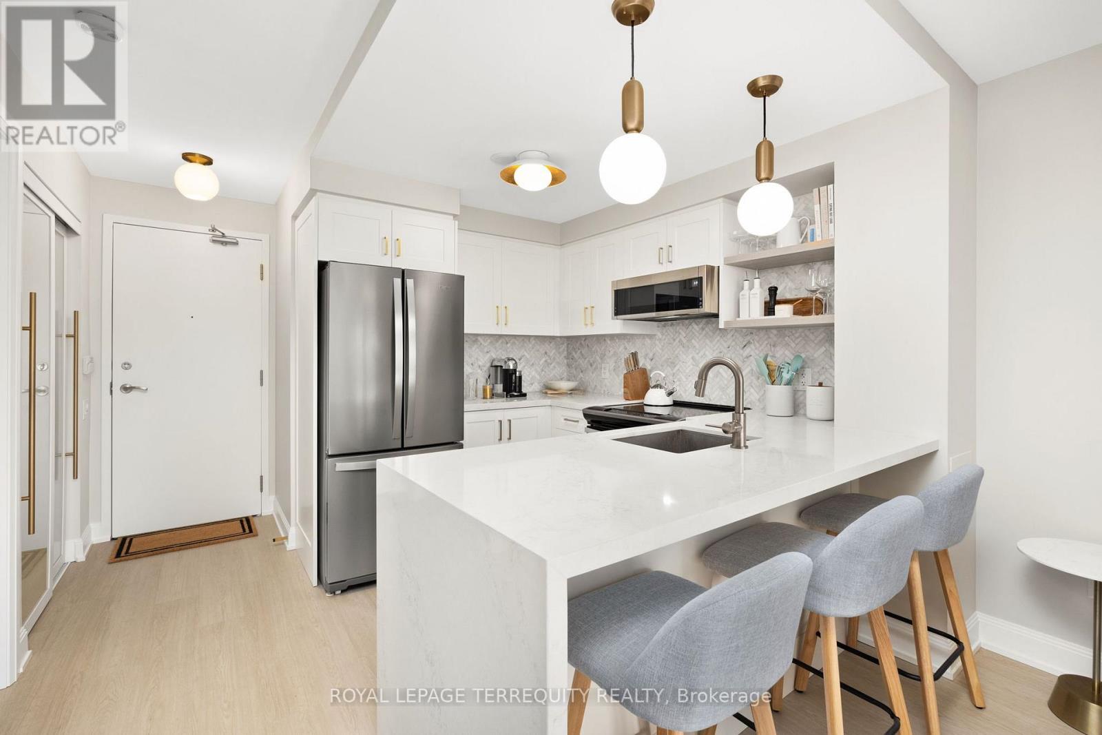 Fully renovated 1+Den at Yonge & Eglinton, offering bright south-facing exposure and nearly 700sqft of thoughtfully upgraded living space. Over $80K has been invested in renovations, making this a true turnkey option for buyers who want quality without the need for further updates. The kitchen has been completely redesigned with custom cabinetry, quartz countertops, backsplash, stainless steel appliances, popcorn ceiling removed, and dropped pendant lighting. The bathroom has also been fully updated, including vanity, toilet, bathtub, fixtures, tile floor and washer and dryer. Complemented by new doors, and built-in closet organizers in the hallway closet and bedroom, while luxury vinyl flooring runs throughout the rest of the unit. Positioned on the quieter, courtyard-facing side of the building, the unit offers a more peaceful setting along with a private balcony and plenty of natural light. Located directly across from TTC access, including the new Eglinton Crosstown LRT, this is an ideal option for buyers seeking convenience, space, and a move-in ready home in one of Toronto's most connected neighbourhoods. With a walk score of 99, everything you need is just steps away. The unit also includes a locker, and residents enjoy access to a full range of amenities including a gym, indoor pool, sauna, games room, and parcel locker system. A turnkey condo where the work has already been done - simply move in and enjoy. (id:4555)