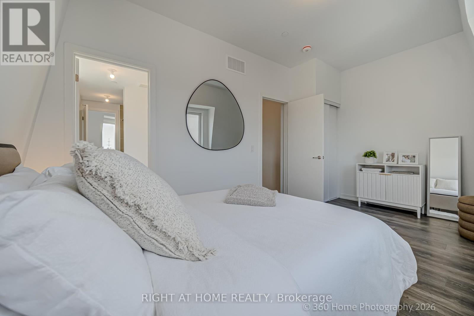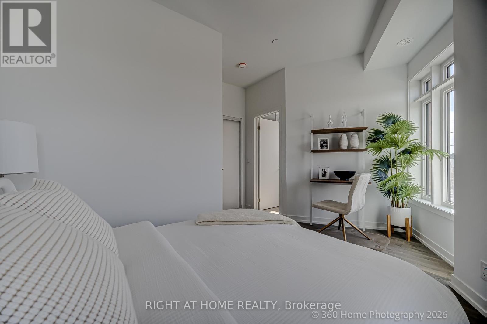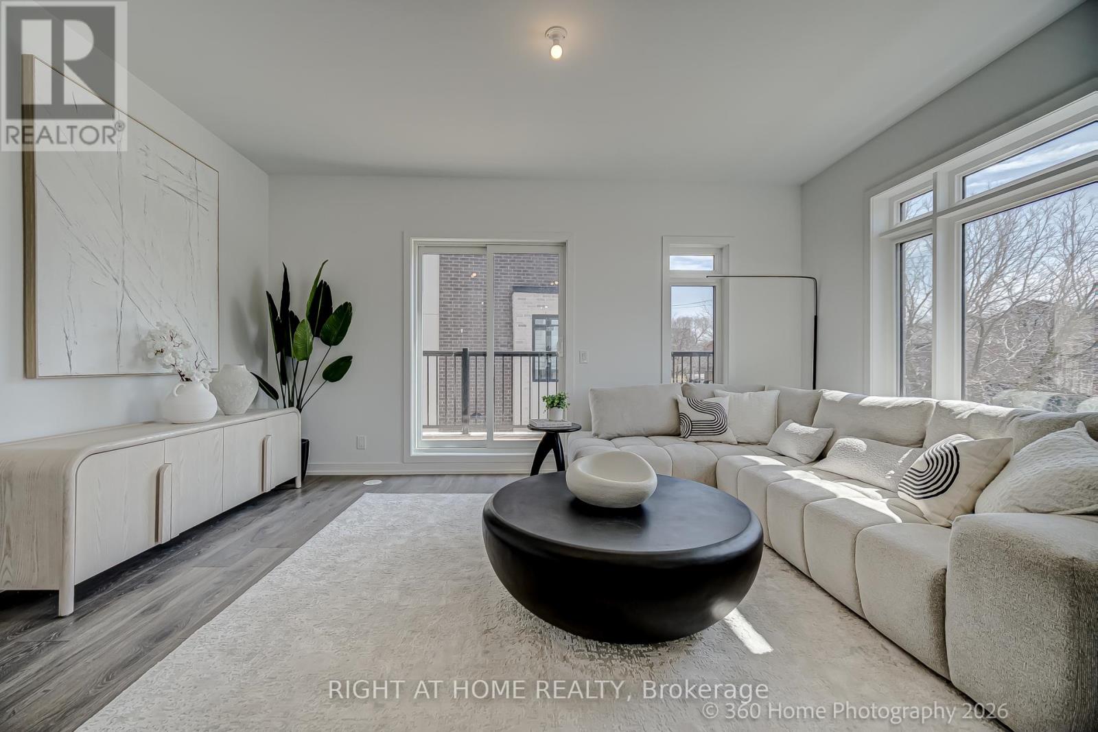 Welcome to this brand new never lived in house, the only unit in the complex with 2 garages. Absolutely stunning corner luxury townhouse with 2 garages filled with abundant natural light, offering spacious living areas beautifully flooded with sunshine throughout. The thoughtfully designed lower level features a private office, ideal for today's work-from-home lifestyle, while the upper levels provide 4 generally-sized bedrooms perfect for family living and living area ideal for hosting guests. Over 1870 sq. ft. This exceptional home showcases soaring ceilings, high-quality flooring throughout, and a striking oak staircase, creating a refined and sophisticated atmosphere. Enjoy the convenience of a private ground-level garage with direct interior access and additional storage. This home features a gorgeous open-concept modern kitchen with breakfast area, while the spacious living and dining area walks out to a generous balcony, perfect for BBQ, relaxing or hosting gatherings. Two luxurious primary bedrooms, including one with tranquil park views and CN tower views, offer peaceful retreats, while a third bedroom with its own balcony boasts breath taking views. Ideally situated in a prime North York location, just steps to the Eglinton Crosstown LRT Subway Station and within walking distance to hospitals, schools, and parks. Enjoy unmatched convenience with No Frills, Walmart, Eglinton Square Mall, and Costco nearby. The area's appeal is further elevated by exciting Golden Mile developments, including a future joint campus by the University of Toronto and Centennial College, making this a vibrant and highly desirable neighbourhood. BBQs Allowed, Visitor Parking (id:4555)