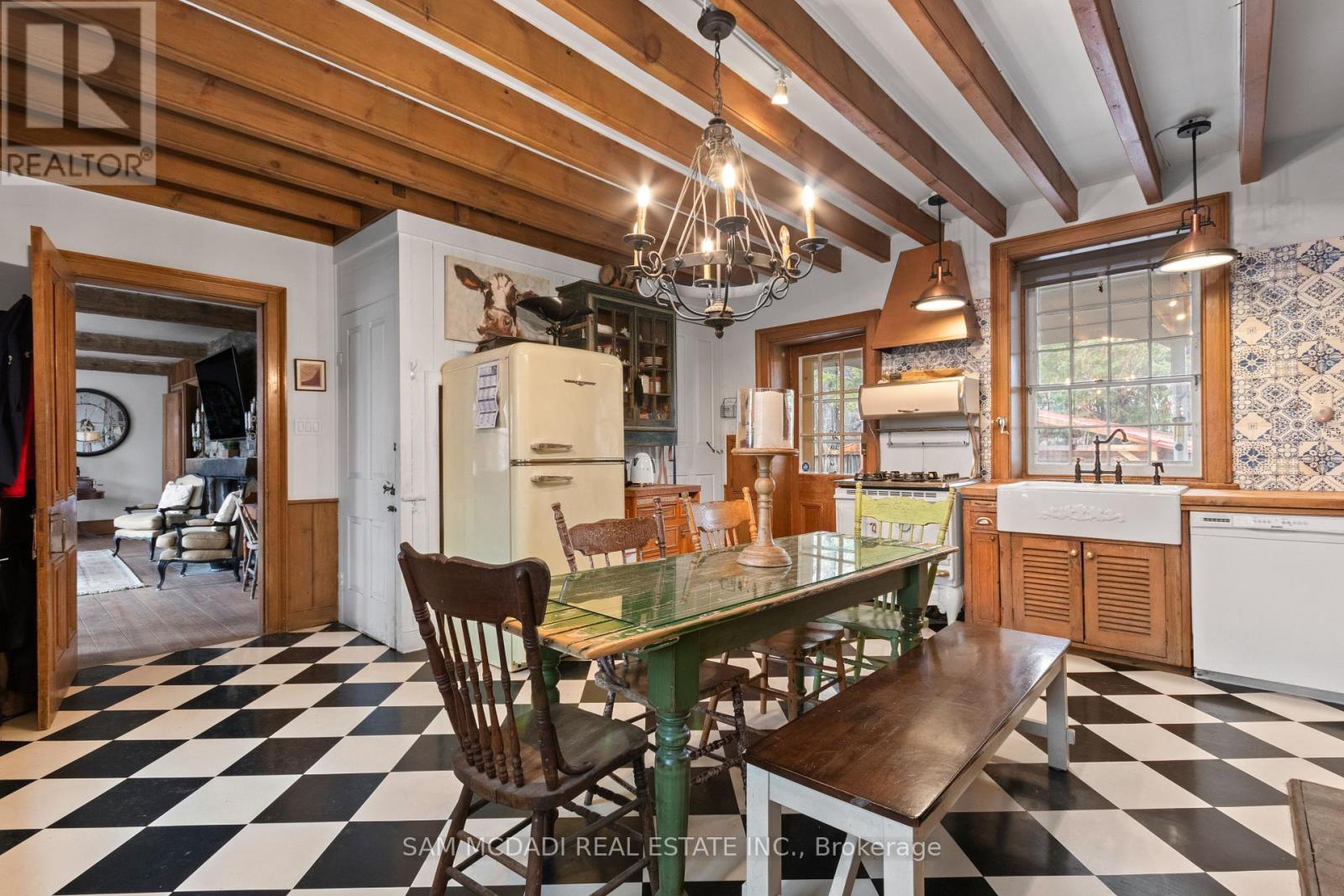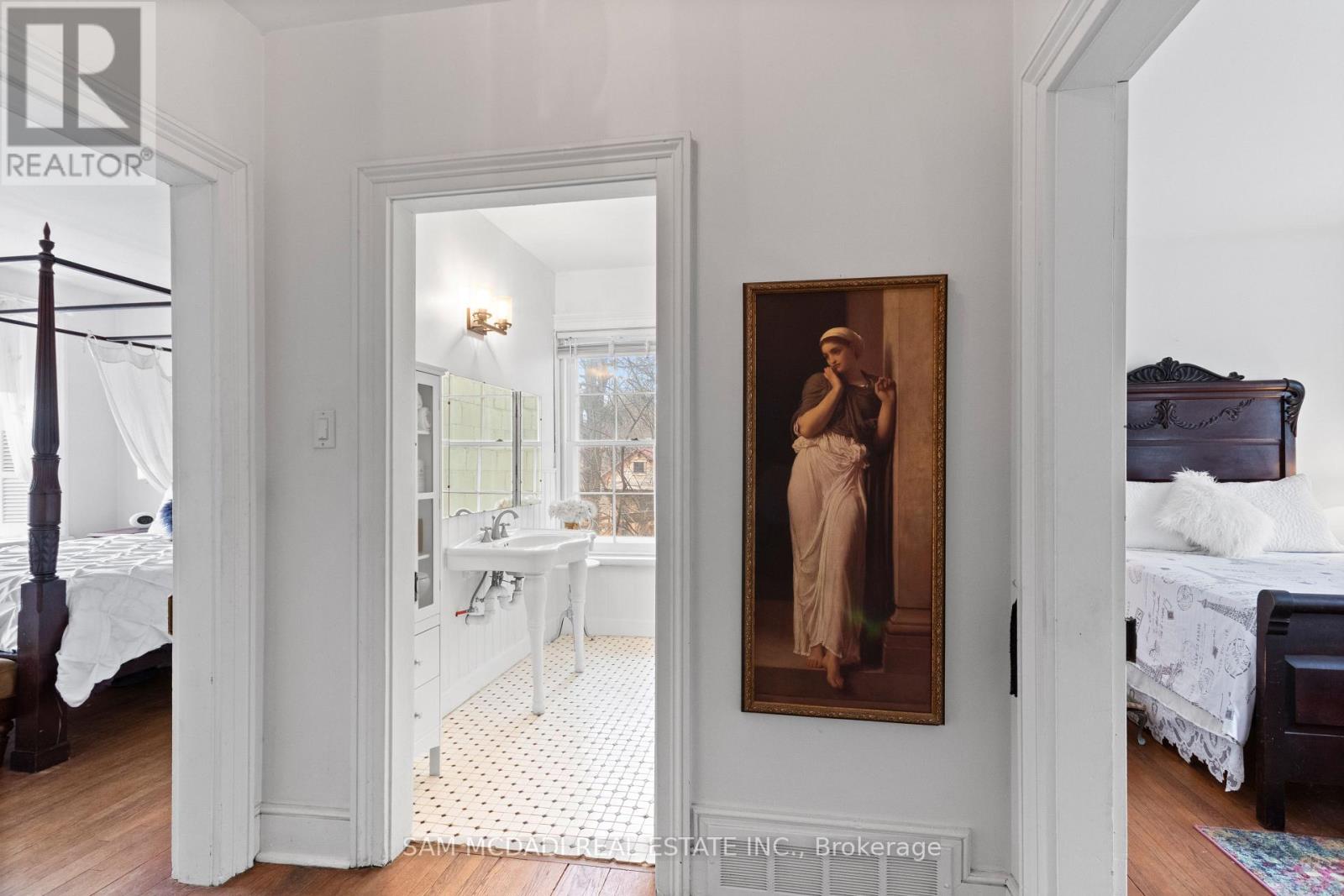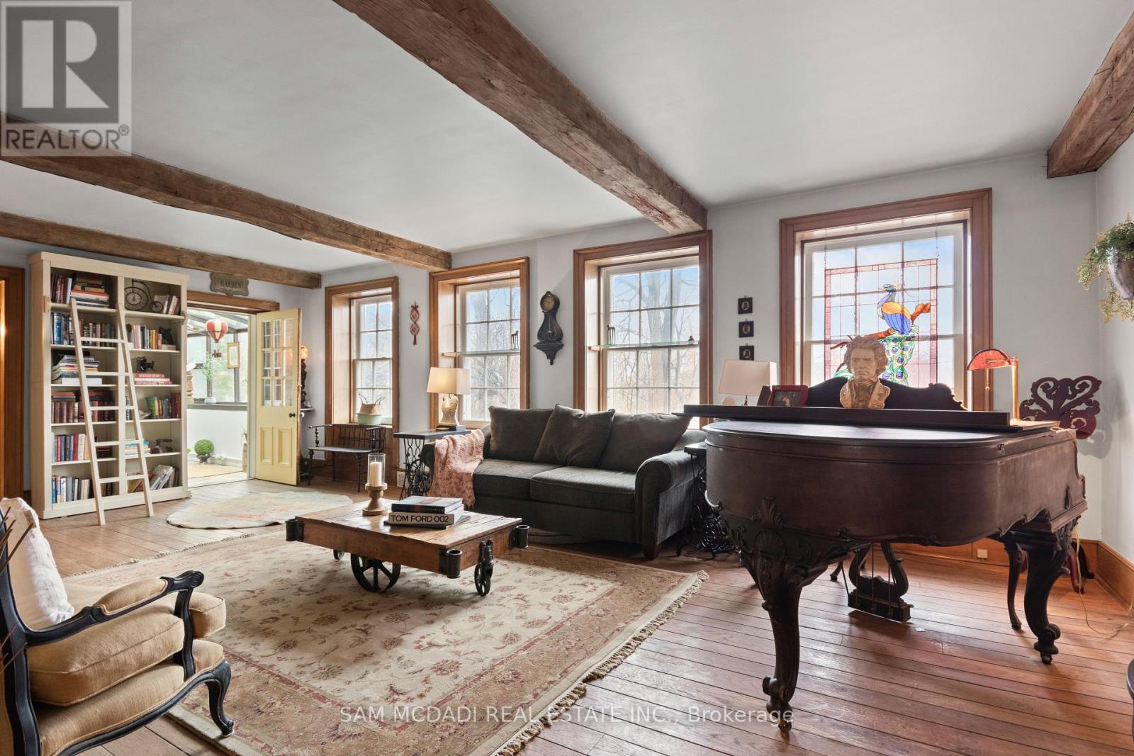 Welcome to 85 Yorkleigh Avenue, a rare offering set on an extraordinary 1.15-acre lot backing onto the Humber Creek ravine. Surrounded by mature trees and complete privacy, this property offers a lifestyle seldom found within the city. The home's stone façade, manicured gardens, and inviting front porch create a setting that feels elegant, character-rich and grounded in nature. Inside, the home unfolds with distinctive timeless charm. The eat-in kitchen is a statement space, featuring exposed wood beams, a wood-burning fireplace, classic checkered flooring, and a seamless walkout to the grounds. The dining room is designed for intimate entertaining, complete with its own fireplace and custom built-ins, while the living room showcases a striking stone hearth and direct access to the sunroom. Wrapped in glass, the sunroom offers a tranquil, light-filled escape, perfect for year-round enjoyment with serene views of the surrounding ravine canopy. The main level features two bedrooms, including a peaceful primary retreat with double closets, alongside a well-appointed 3-piece bath. A vaulted loft above provides a versatile space ideal for guests, a studio, or a private hideaway. The walk-out lower level expands the home's functionality with a third bedroom, an office, 3-piece bath, laundry, and terra cotta stone flooring throughout, well-suited for extended family or flexible living arrangements. Outdoors, the grounds are no thing short of exceptional. Multiple seating areas, curated gardens, and natural pathways lead you through a private, tree-lined setting. Tucked within the ravine, a charming elevated treehouse offers a storybook 1 bedroom with a 3-piece bath retreat, a rare and whimsical feature that captures the essence of this unique property. Ideally positioned near Douglas B. Ford Park and the scenic Humber River Recreational Trail, with convenient access to reputable schools, shopping centres and easy access to Highway 401 and 427. (id:4555)