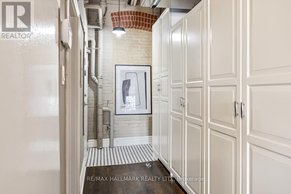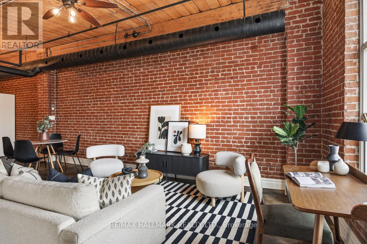 Step into a true Urban Masterpiece that delivers the kind of Character, Volume & Atmosphere rarely found. This is not your ordinary; this a statement Loft! Every inch of this space celebrates Industrial Artistry. Polished concrete floors are like art in themselves, exposed Brick brings texture & history and the open Ductwork & soaring Wood Ceilings amplify the lofts dramatic scale and architectural authenticity. Open area Entertainment space to accommodate furniture pieces & uses of all shapes & sizes. With generous square footage, volume & an open space this loft adapts to your lifestyle- Kitchen with Large Island for the Kitchen parties, not just One but Two Bedrooms or more than two ways to use those rooms, tons of storage and closet space. This loft is located in one of Toronto's most dynamic & walkable pockets. Stroll to: The Financial District, Corktown's Cafes & Restos, over the bridge to Riverside District & Leslieville, Renowned Art & Cultural Hubs, Shopping & Boutiques, Parks, Dog Parks & Rec Centres along with lots of other 'greenspaces'. It is hard to describe the real feeling: not just that the space in square footage is large, but that it gives you air & loft to breathe bigger, think wider & taller and provides that sense that you have arrived! (id:4555)