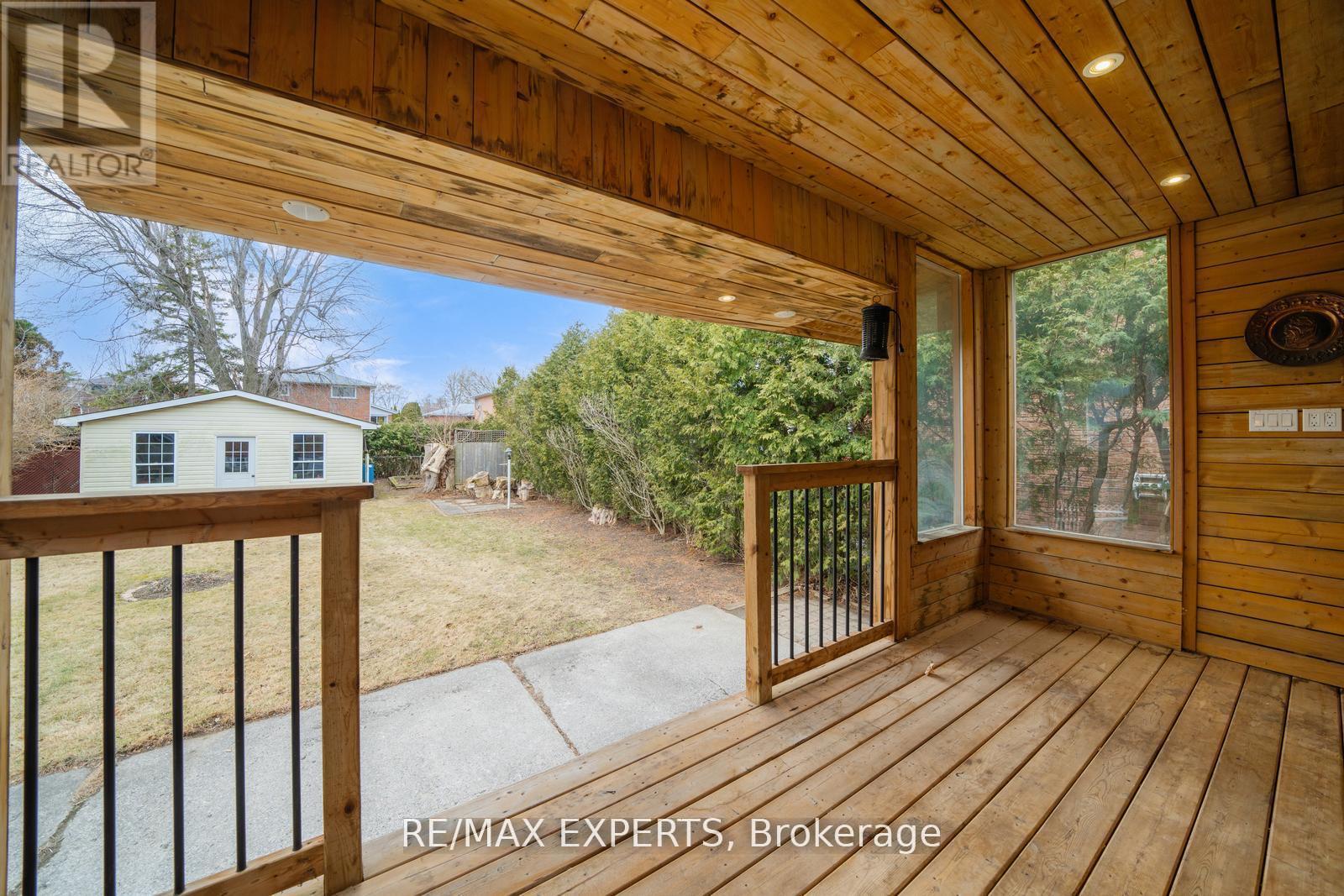 Welcome to this lovely home situated in a highly sought-after Scarborough neighborhood, just minutes from the lake. Offering the perfect blend of comfort and convenience, this home is close to excellent schools, beautiful parks, a variety of restaurants, shopping, major highways, and public transit - making it an ideal choice for families and commuters alike. As you enter, you'll be greeted by a bright and expansive veranda with large windows flooding the space with natural light - a perfect spot to enjoy your morning coffee or unwind in the evening. The main floor features a generously sized living and dining area, ideal for entertaining family and friends. A cozy family room with a wood-burning fireplace adds warmth and charm, while a patio door leads to a covered deck, seamlessly extending your living space outdoors. The large, level backyard offers endless possibilities for gardening, outdoor activities, or future projects. A convenient three-piece bathroom completes the main floor. Upstairs, you'll find three spacious bedrooms, each offering comfort and ample storage. The primary bedroom features direct access to a four-piece bathroom, which is also accessible from the hallway. A highlight of this room is the large patio door leading to a potential balcony - ready to be finished to your taste. The fully finished basement adds incredible value to this home, featuring a separate entrance, a second kitchen, a living room, a bedroom, and a full bathroom - making it an ideal in-law suite or potential rental space. A large cold room provides additional storage. The backyard is a true standout, offering an expansive and level space that can be transformed to suit your vision. A large, well-built shed presents exciting opportunities as a workshop, extra storage, a potential secondary suite, or a stylish he/she shed. It has built-in support for a possible garage door. Additionally, the garage has been modified to allow for extra storage, a feature many will appreciate. (id:4555)
