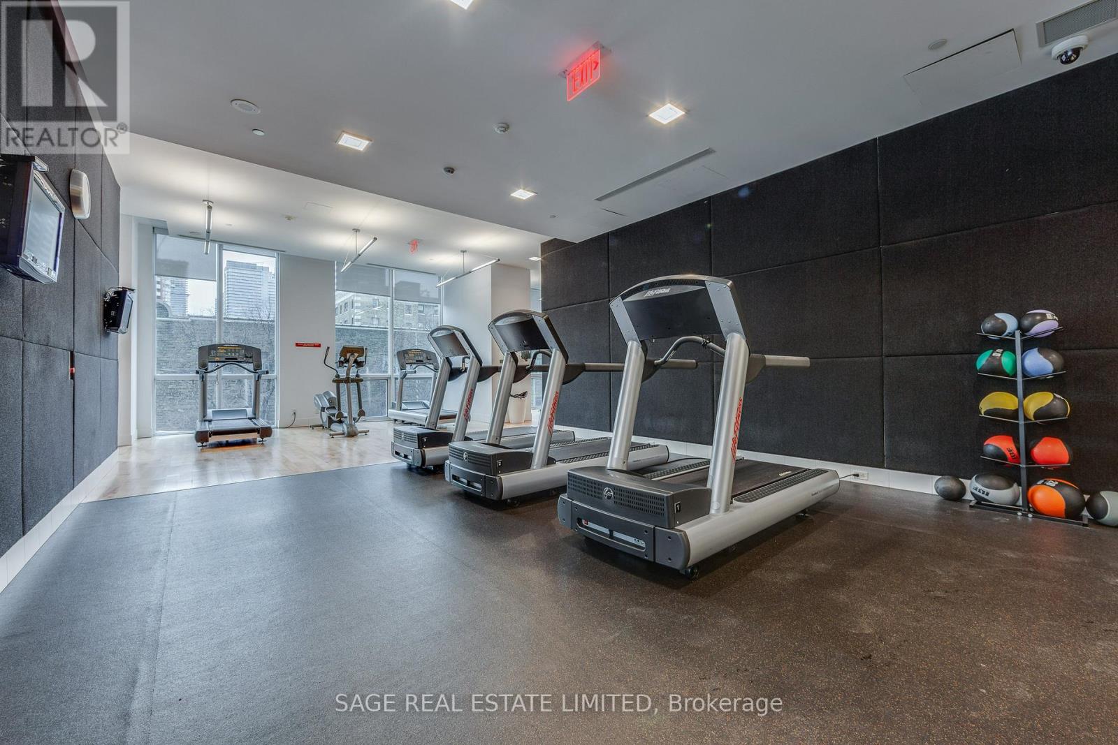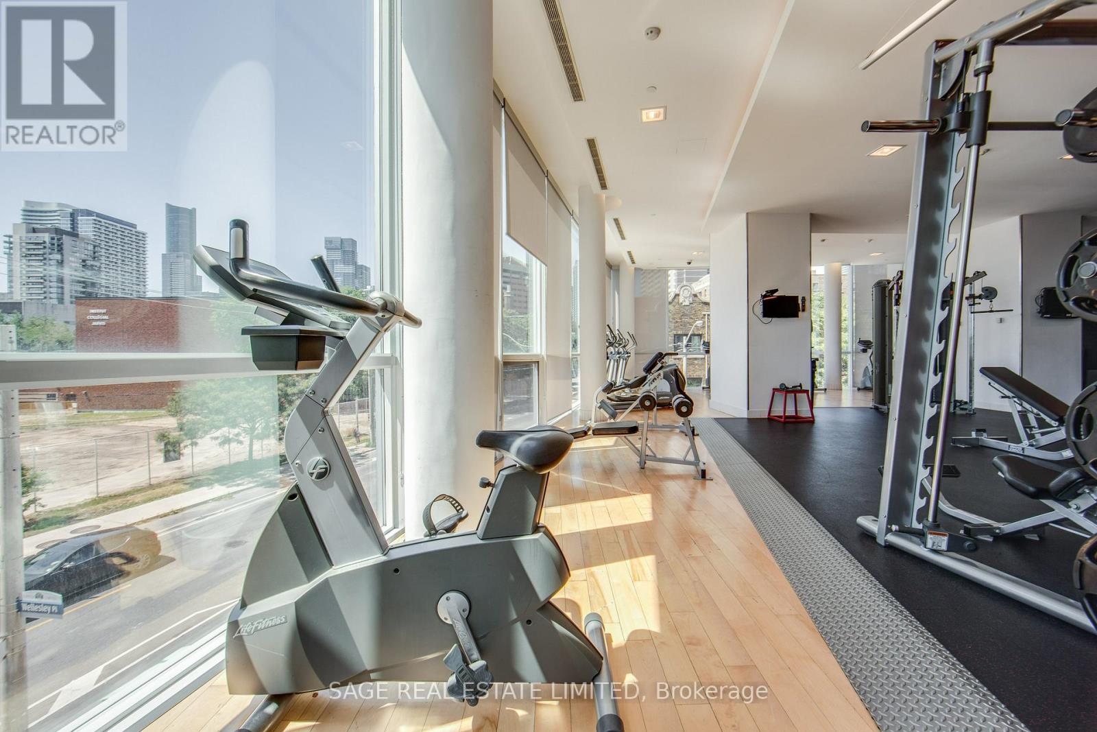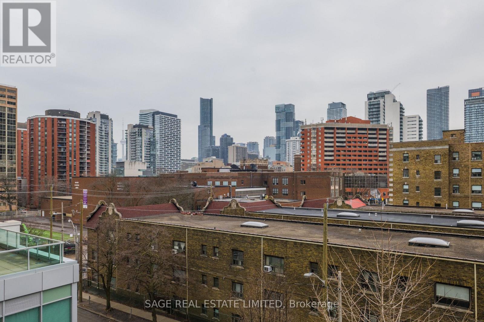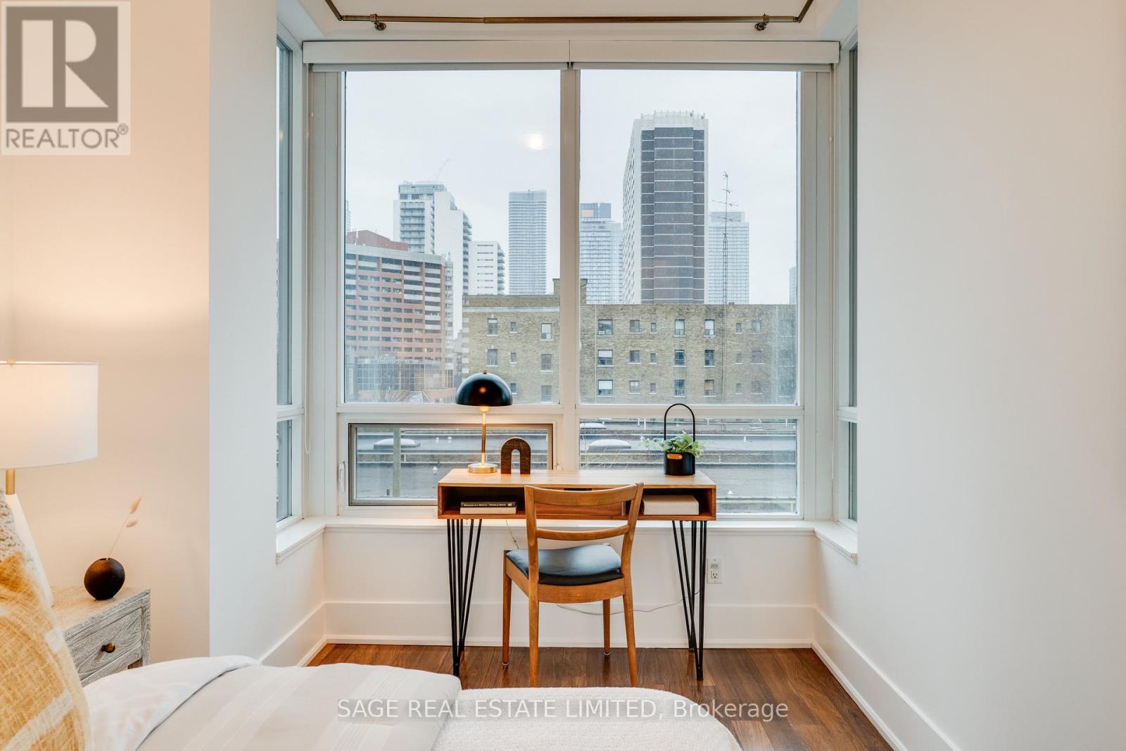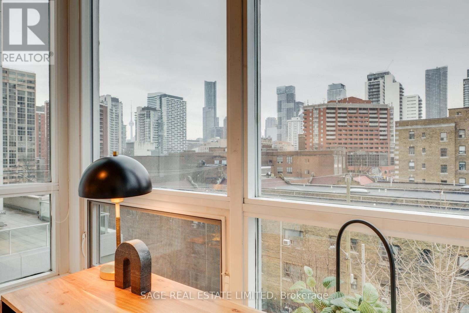 Refined City Living at its best. This well maintained 1 Bed/1 Bath suite offers up 650 square feet of intelligently designed space, elevated by soaring 10 foot smooth ceilings (save the popcorn for movie night) and a layout that bucks Toronto's obsession with narrow, bowling alley floor plans. Instead a rare SW corner unit delivers a true rectangular footprint - creating natural separation between living, dining and entertaining spaces, all wrapped in windows that draw in warm afternoon light. Step out to a substantial west-facing private balcony, finished with wood patio tiles, extending your living space well beyond the interior through the warmer months. Inside, oversized windows with transoms add architectural interest, while the kitchen features its own window - because even the everyday moments deserve to be well-lit. Multiple vantage points capture perfectly framed CN Tower views, adding just the right amount of skyline drama. The bedroom is both spacious and bright, anchored by a west-facing box bay window and that signature CN Tower view, with a double closet and room to comfortably accommodate a queen or king bed. The kitchen balances function and flexibility with ample storage, granite counters, and a movable Island with butcher block top - ideal for both prep and casual dining. Full size appliances, including in-suite laundry, round out the space. Freshly painted with updated lighting throughout, including new kitchen fixtures and a bathroom sconce, plus seamless laminate recently extended into the bedroom - everything feels cohesive, clean, and move-in ready. This impeccably managed Tridel building spoils residents with a full suite of amenities: 24hr concierge, fitness-center with weights, cardio & yoga, outdoor pool deck and hot-tub with sun-bathing cabanas, BBQ area, party, theatre and business rooms and more. Steps to transit, parks, dining, shopping, everything that makes downtown Toronto worth calling home. (id:4555)