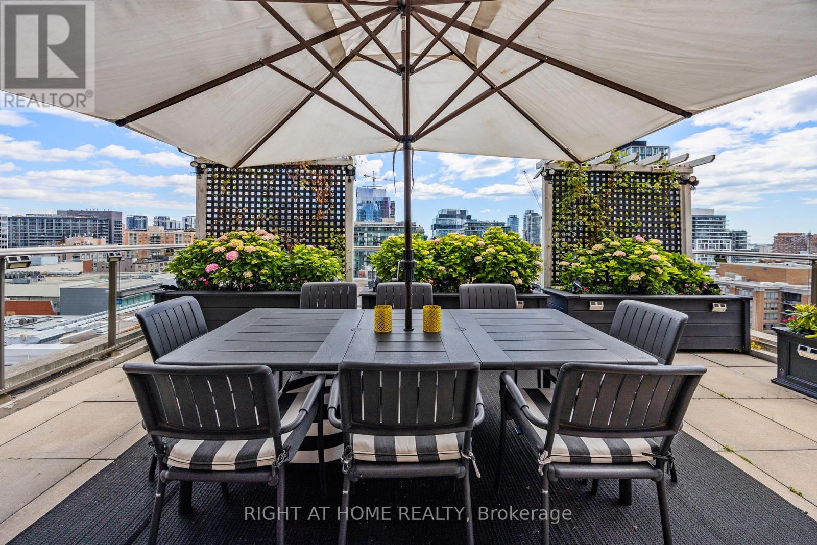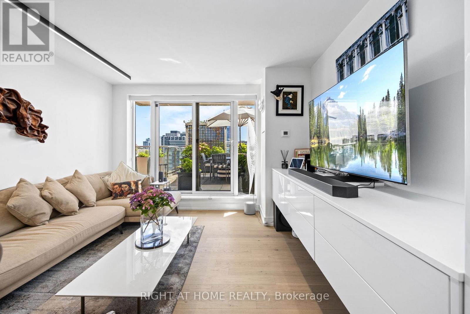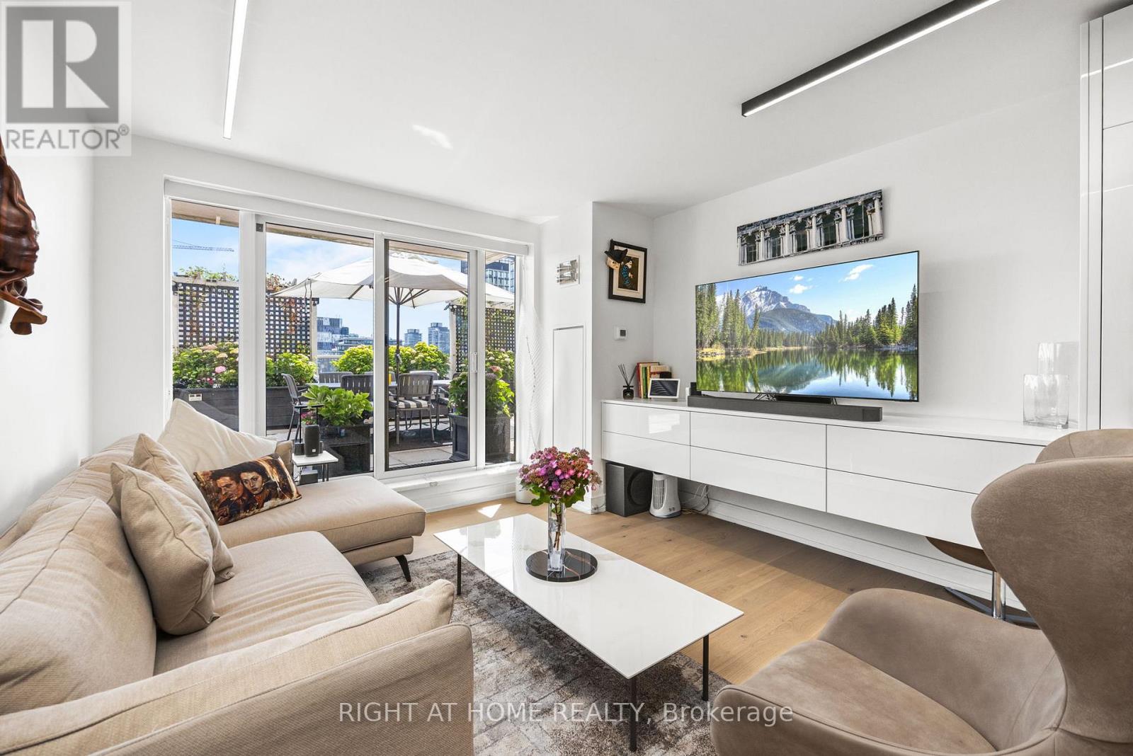 Fantastic Oppourtunity, to own a Unique Urban Garden Space Overlooking the Core. An Extraordinary Offering at King George Square, Impeccably Renovated Corner Residence Redefines Luxury Urban Living with a Remarkable approx. 1,400 sqft Private Terrace-a Truly Rare feature in the Heart of Downtown Toronto. Designed for those who value Sophistication, Scale, and Seamless Indoor-Outdoor Living, this 2-bedroom, 2-bathroom suite delivers an Unparalleled Lifestyle Experience. The Refined interior Showcases a Thoughtfully Curated Open-Concept Layout, Bathed in Natural Light from its Southeast Exposure. The Bespoke Chef's Kitchen is outfitted with Premium Gaggenau Integrated Appliances including a 24" Gaggenau Wine Fridge, Sleek Custom Cabinetry, and Elegant Finishes, flowing effortlessly into the living and dining spaces-perfect for both Intimate Evenings and Elevated Entertaining. Custom built-ins, including a Stylish Bar and Wine Storage, add a layer of understated Luxury and Functionality. All Designer Bathrooms & Kitchens Imported from Italy. The Primary Bedroom Sanctuary features direct access to the Terrace and a beautifully appointed ensuite, offering a serene retreat above the city. The second bedroom, enhanced with a custom CLEI Rotational Bed, Imported from Italy, provides versatility as a Sophisticated Guest Suite or Executive Home Office. This Exceptional Residence is complemented with 1 underground parking space, a storage locker, along with Exclusive Building Amenities including 24-hr Concierge Service, Fitness Centre, Party & Meeting rooms, and a Rooftop Garden. Perfectly positioned just steps from St. Lawrence Market, the Distillery District, Premier Dining, Transit, and The Waterfront, this is a Rare Opportunity to own a Statement Home offering Privacy, Prestige, and Expansive Outdoor Living in the City's Core. (id:4555)