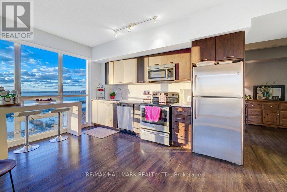 Lake Views, Lake Views, Lake Views!! Living In This Bright And Spacious 2-Bedroom + Den, 2-Bathroom Corner Suite, 09 Layout, 885 Square Feet, In The Highly Sought-After Westlake Condo Community In Mimico!! This Thoughtfully Designed Home Features An Open-Concept Layout Enhanced By Floor-To-Ceiling Windows, Filling The Space With Natural Light While Offering Stunning City And Lake Views. The Modern Kitchen Is Equipped With Sleek Cabinetry, Quartz Countertops, And Stainless Steel Appliances, Seamlessly Connecting To The Living And Dining Areas-Perfect For Both Everyday Living And Entertaining. The Split-Bedroom Layout Ensures Optimal Privacy, While The Versatile Den Provides The Ideal Space For A Home Office Or Additional Workspace. Unit Includes 1 Parking Space, 3 Locker Storage Units, Lots Of Storage!! Furniture Is Negotiable. Residents Enjoy Access To Over 40,000 Sq. Ft. Of Resort-Style Amenities, Including A 24-Hour Concierge, Indoor Pool, Fully Equipped Fitness Centre, Rooftop Terrace, Party Room, And More. Ideally Located Just Steps From Lake Ontario, Scenic Waterfront Trails, Parks, TTC Transit, And The Vibrant Shops And Restaurants Of The Westlake Retail Complex, Including Metro, Shoppers, LCBO, Sunset Grill, TD Bank, BMO Bank, Etc. This Is Urban Convenience At Its Finest!! (id:4555)