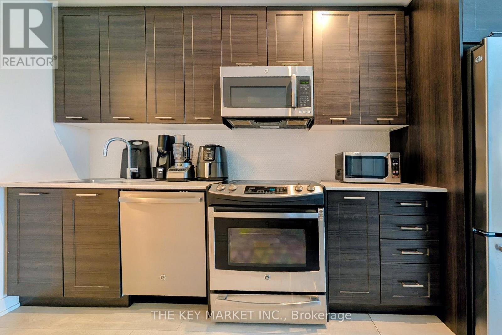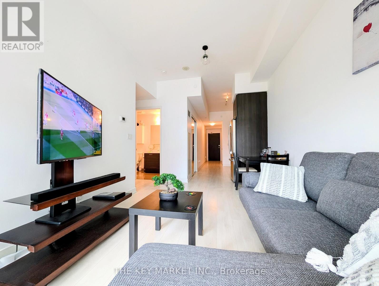 1 Parking Included! Experience elevated urban living in this rarely offered 1+Den suite in the vibrant Fort York, offering 573 sq. ft. of intelligently designed interior space+balcony. Thoughtfully laid out with 9-foot ceilings and floor-to-ceiling windows, this bright and airy home is filled with natural light and showcases open west-facing city views. The open-concept living and dining area seamlessly extends to the modern kitchen features stone countertops, stainless steel appliances, and sleek cabinetry that blend style with everyday functionality. The versatile den/study provides a dedicated space for working from home, reading, or additional seating, catering perfectly to today's flexible lifestyle. The extra-large primary bedroom comfortably fits a king-size bed and is complemented by a spacious walk-in closet, offering exceptional storage. Additional highlights include laminate flooring throughout, ensuite laundry, custom blinds, and one included parking space, making this home as practical as it is stylish. Residents enjoy access to an impressive suite of amenities, including a 24-hour concierge, fully equipped fitness centre, party room, games room, theatre lounge, guest suites, and a spectacular rooftop terrace with BBQs and panoramic skyline views-perfect for entertaining or unwinding. Ideally located just steps from the best of downtown Toronto, you are within walking distance to the waterfront, parks, trails, grocery stores, cafés, restaurants, and everyday essentials, as well as iconic destinations like the CN Tower, Rogers Centre, Scotiabank Arena, and the Financial District. With convenient access to TTC and streetcar routes, major highways, and nearby hotspots including Liberty Village, King West, and The Bentway, this home offers the perfect blend of comfort, connectivity, and vibrant city living-an exceptional opportunity to live in one of Toronto's most dynamic and sought-after communities. (id:4555)