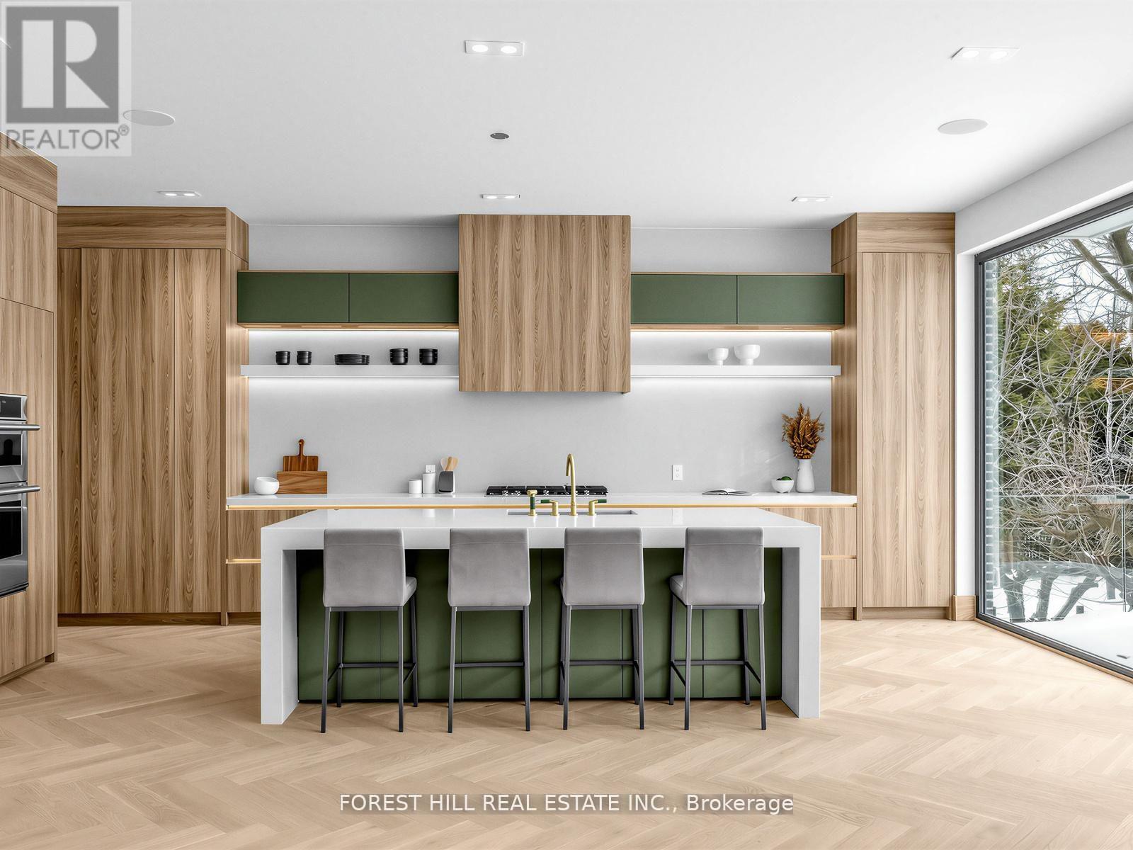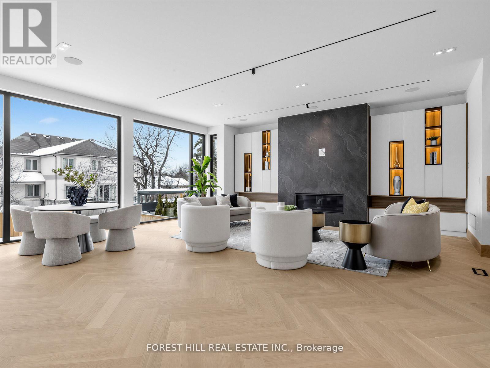 ***Architectual Significant--luxurious and modern custom-built home, offering over 6,200 sq.ft of refined living space (4,450 sq.ft the main and second floors) + 1,748 sq.ft fully finished walk-out lower level), situated on a premium lot. This architecturally striking residence blends modern sophistication with timeless elegance, open concept design. Dramatic ceiling heights (approximately 14ft in foyer & office & more), and a floating staircase illuminated by a skylight, and floor-to-ceiling picture windows creating natural bright, airy atmosphere interiors infused with natural light. The chef-inspired kitchen is a true showpiece, featuring a built-in appliance, and an oversized island with breakfast bar, a fully equipped butlers pantry with a kitchenette. Upstairs, the luxurious primary suite is a serene retreat with a spa-inspired ensuite and a custom dressing room, and a mini bar and a balcony for fresh-air and private relaxation. Three additional bedrooms, each with its own ensuite, provide comfort and privacy and functionality for the entire family. The finished walk-up lower level is crafted for both entertaining and relaxation, showcasing a spacious recreation room with a rough-in wet bar, a private nanny/in-law suite, all enhanced by radiant heated floors throughout. Additional features include private elevator serving all levels, wide-plank and herringbone hardwood flooring, LED strip & pot lighting throughout. Note : A New Property Tax Is Not Assessed Yet. (id:4555)