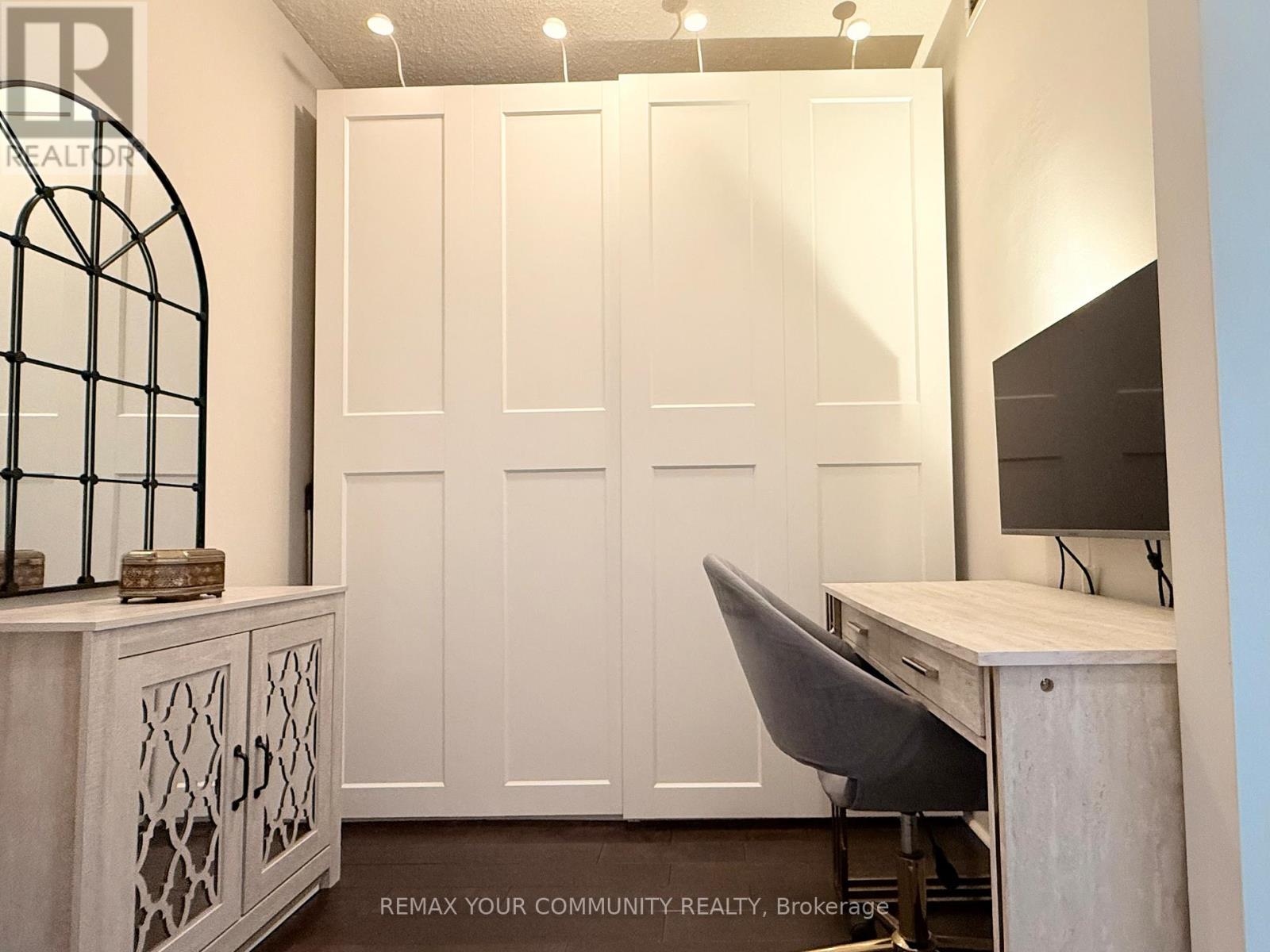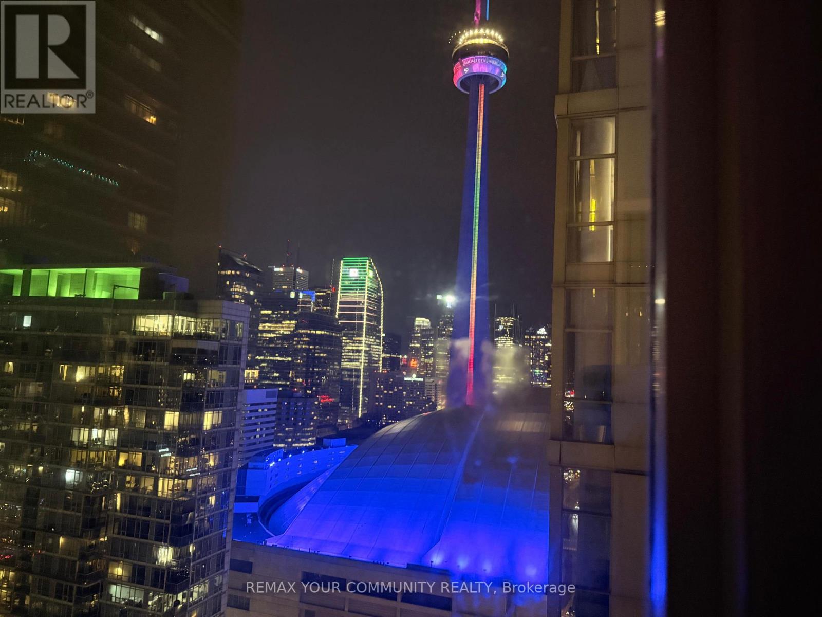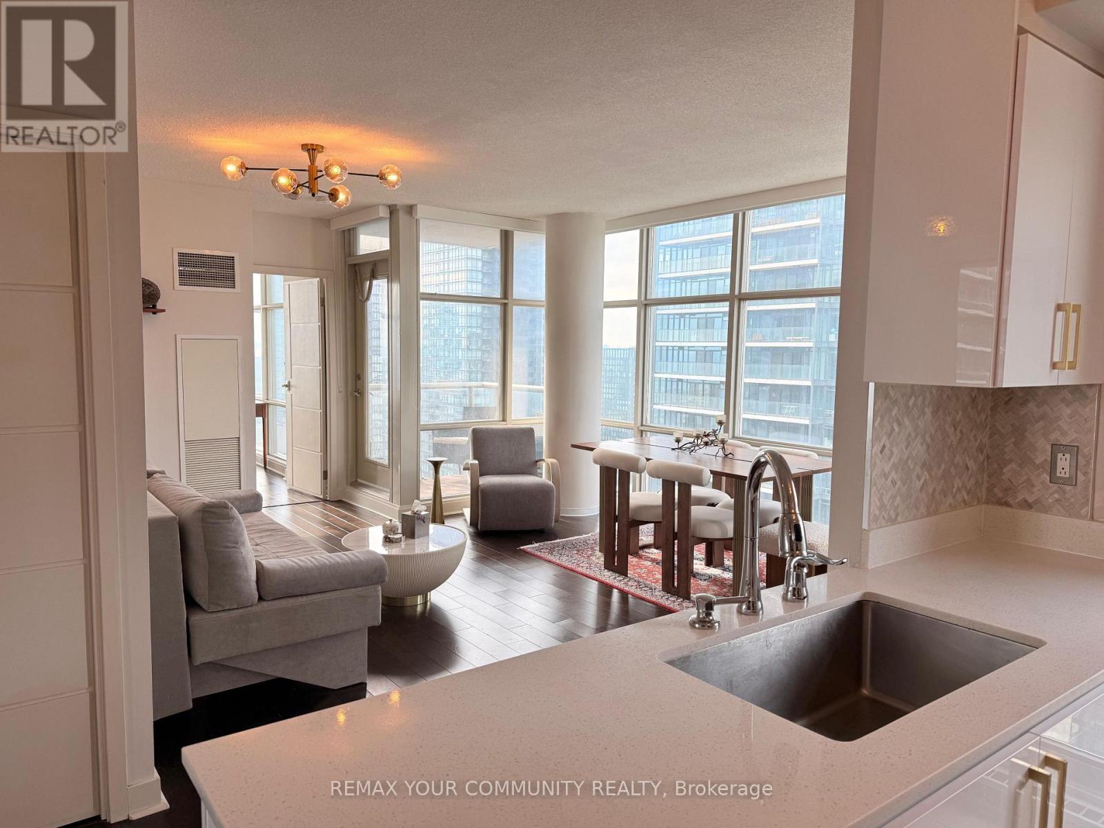 Experience elevated downtown living in this rarely offered high-floor corner unit with breathtaking panoramic city views and floor-to-ceiling windows. Larger-than-average layout offering enhanced living space compared to typical units. A chef-inspired kitchen with a sought-after gas stove, and upgraded appliances. The spacious bedroom features smart motorized blinds for added comfort and convenience. The den has been enhanced with a custom closet-ideal for a home office. All utilities and parking (P1) is included. Unmatched amenities: Exclusive access to the 30,000 sq ft SuperClub with fully equipped fitness centre, indoor pool, sports courts, bowling, and more. Prime downtown location: Steps to the CN Tower and Rogers Centre, transit, waterfront, restaurants, and entertainment. (id:4555)