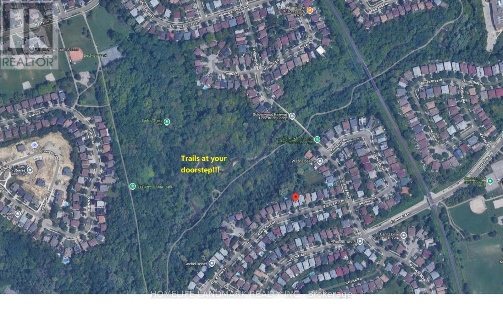 Concept Floorplan with Large south-facing living room, combined with a bright dining room with an enlarged window. Entire main level wascompletely rennovated in 2022, $200,000+ spent on all new kitchen, bathrooms, frames, dry walls, floor, ceiling, electric wiring and plumbingsystem. Rennovation contract/picturs are availalbe upon request. Two bedrooms overlook the ravine. Spacious hallway accesses to a doublegarage directly. Entry-Lux style kitchen with breakfast area, artificial stone countertop, natural gas rough in. The lower level includes a hugefamily room with fireplace location, bright with big windows/sliding door, combined with kitchen/dinning areas, three good sized bedrooms, anda storage room leading to a big cold room. More than 3,300 sq. ft. in total including the basement. Located steps from multiple trails and greatschools (Zion Heights, A.Y. Jackson), close to 401/404/DVP, minutes drive to plaza where banks, coffee shop, restaurants, medical centers andgrocery stores located. PLEASE NOTE: The land between this lot and the public green field belongs to 48 Bruce Farm Dr. and has a nonresidentialzoning code which means no any permanent structure is alowed in that area. (id:4555)
