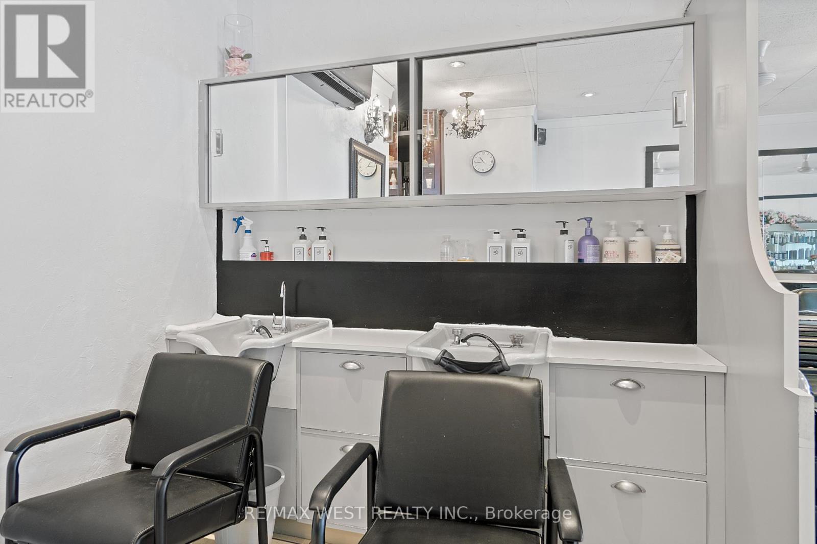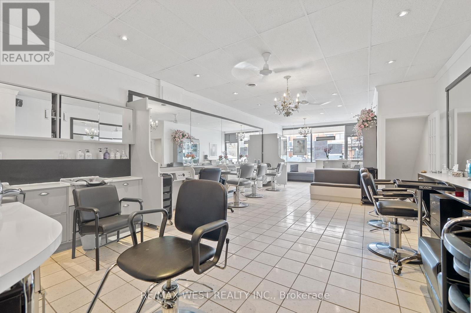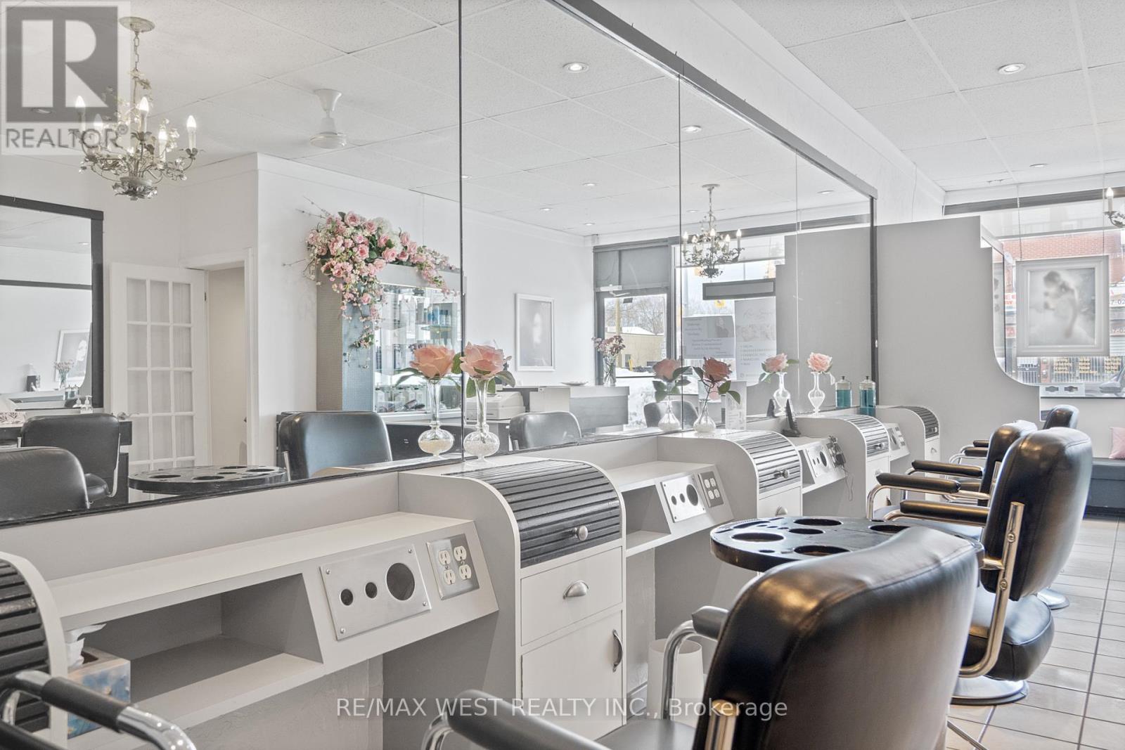 A fantastic opportunity to take over an existing Hair Salon with over 20 years in business, a large loyal client base, and a fully furnished and equipped facility including a fully renovated basement with additional rooms that generate monthly cashflow. The main floor of the salon includes: 8 Hairdressing stations, 3 hair washing sinks, 1 bathroom, 1 private room with a sink, ample storage space and cabinetry as well as a large reception and waiting area. The basement level includes: 2 Hairdressing stations, 1 Hair washing sink, 1 private room, laundry room and a kitchen. The salon generates cashflow by renting out all the rooms , and some chairs, and the owner is willing to remain after the sale on a chair rental basis. All inventory, products, furniture and supplies are included in the sale. The rent is only $3,200 + HST and hydro. Floor plan is attached in the listing. (id:4555)