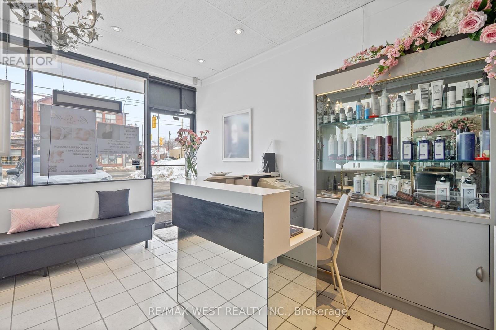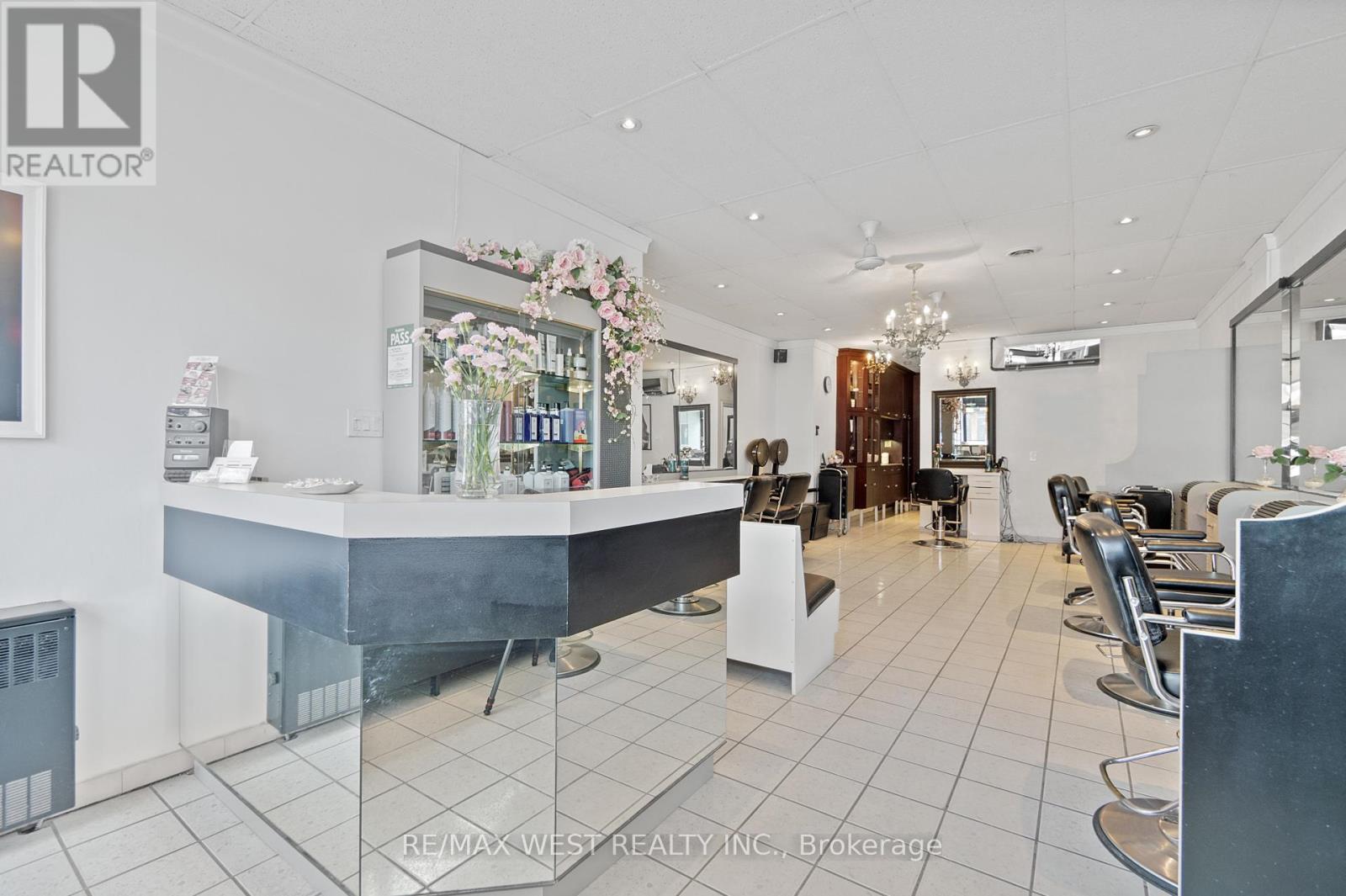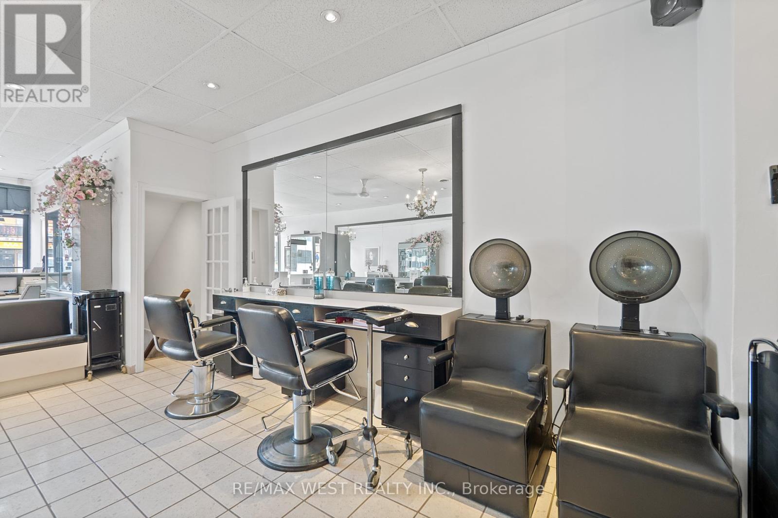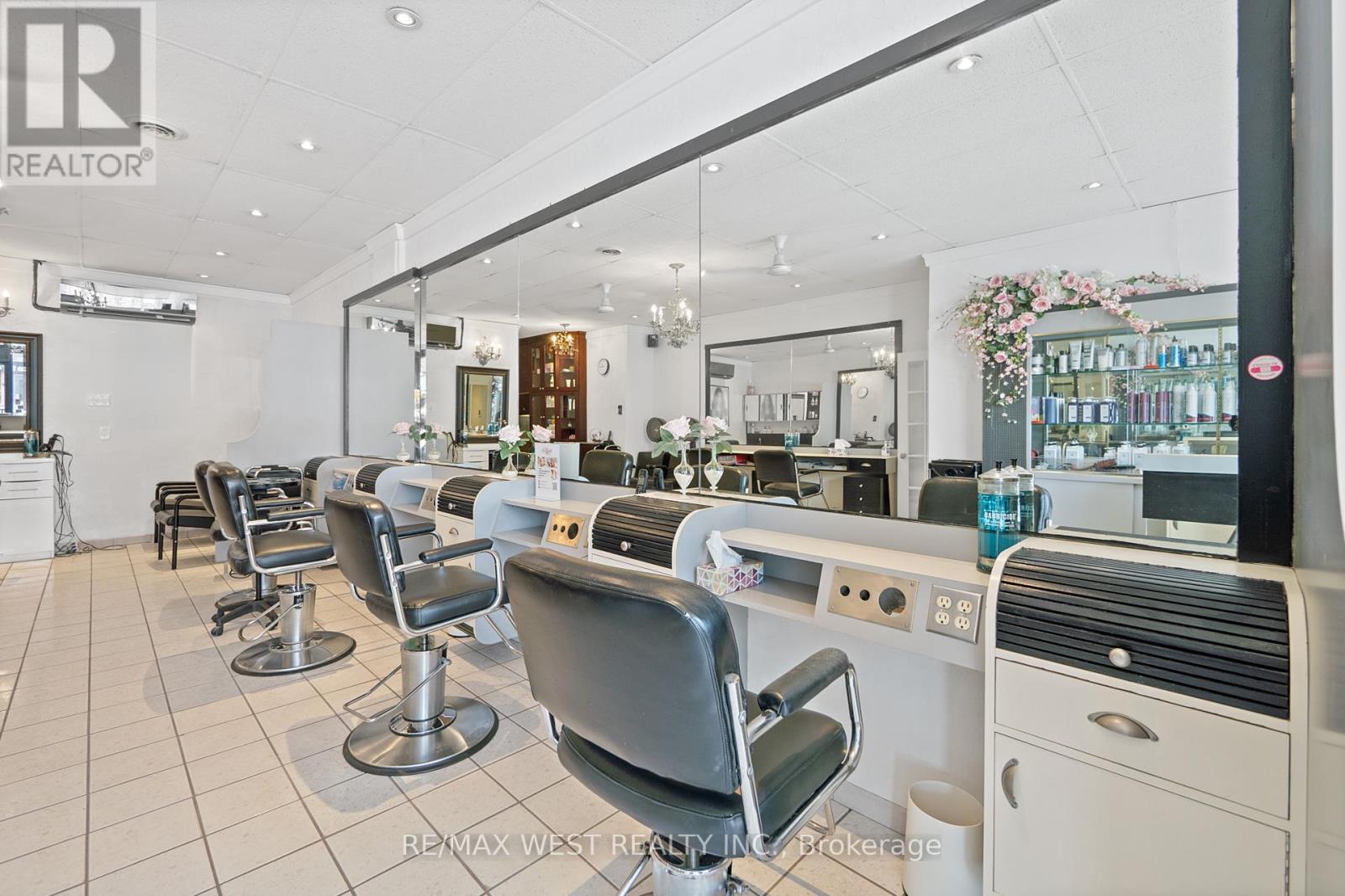 A fantastic opportunity to take over an existing Hair Salon with over 20 years in business, a large loyal client base, and a fully furnished and equipped facility including a fully renovated basement with additional rooms that generate monthly cashflow. The main floor of the salon includes: 8 Hairdressing stations, 3 hair washing sinks, 1 bathroom, 1 private room with a sink, ample storage space and cabinetry as well as a large reception and waiting area. The basement level includes: 2 Hairdressing stations, 1 Hair washing sink, 1 private room, laundry room and a kitchen. The salon generates cashflow by renting out all the rooms , and some chairs, and the owner is willing to remain after the sale on a chair rental basis. All inventory, products, furniture and supplies are included in the sale. The rent is only $3,200 + HST and hydro. Floor plan is attached in the listing. (id:4555)