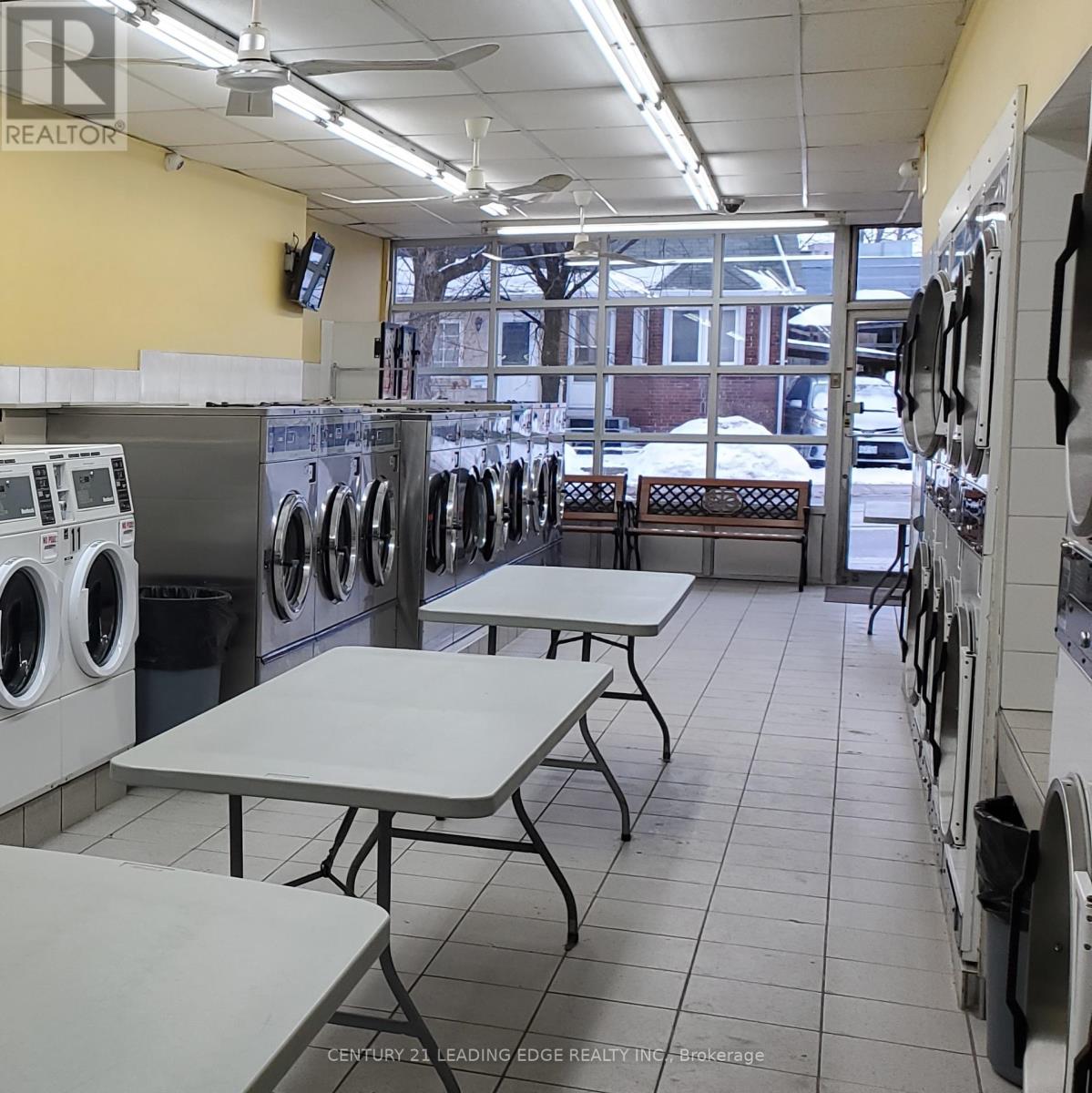 Fantastic investment available for the first time in 40+ years. Main level boasts a turnkey coin laundry business with an established customer base and steady income. Includes: 17 washers, 16 dryers, 2 change machines, and 2 soap dispensers. Basement office/storage space and 3 piece bath. All coin laundry mechanicals owned. Upper level contains 2 one bedroom apartments, currently tenanted. Apartments are separately metered, tenant pays own utilities. 2 private parking spaces accessible through rear laneway. Steps to transit and shopping. Owner to install 2 brand new boilers (25K value), brand new roof installed in 2021, current site manager handles daily business operations and is willing to stay. Great opportunity for anyone seeking an investment to provide passive income. Offers Anytime! (id:4555)